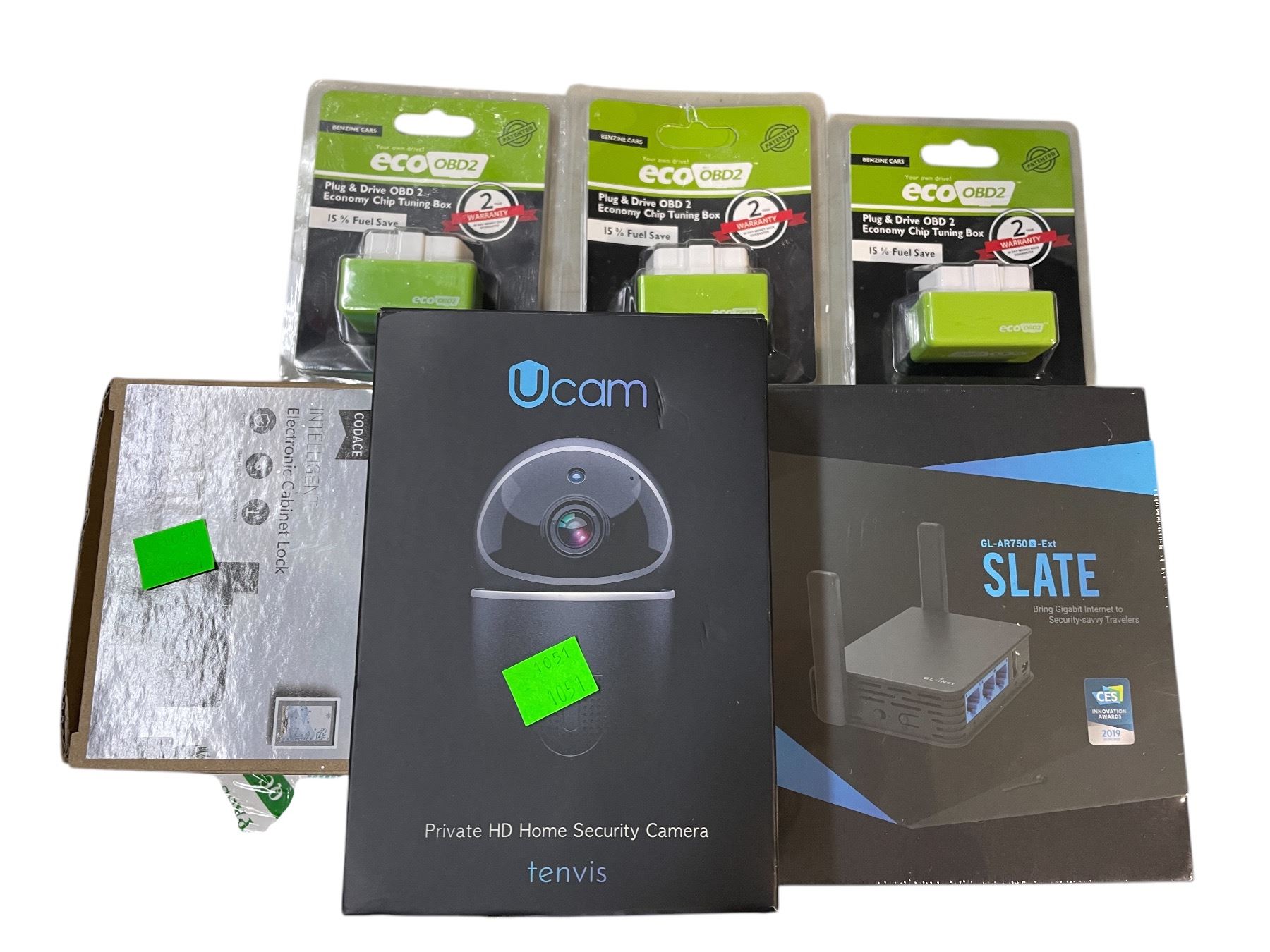 3 Pce Eco OBD2 Tuning Boxes, Ucam Private HD Home Security Camera, Sealed Slate Wireless Router & Intelligent Electronic Lock