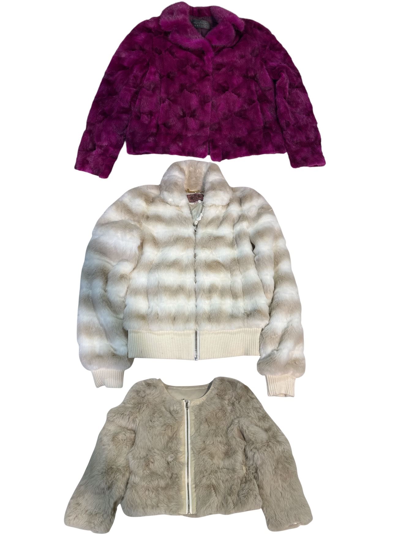 3-Pcs Fuzzy Plush Faux Fur Coats Includes Juicy Couture (szie S)