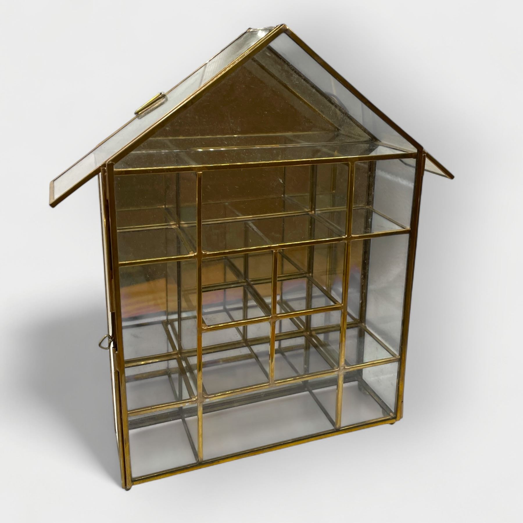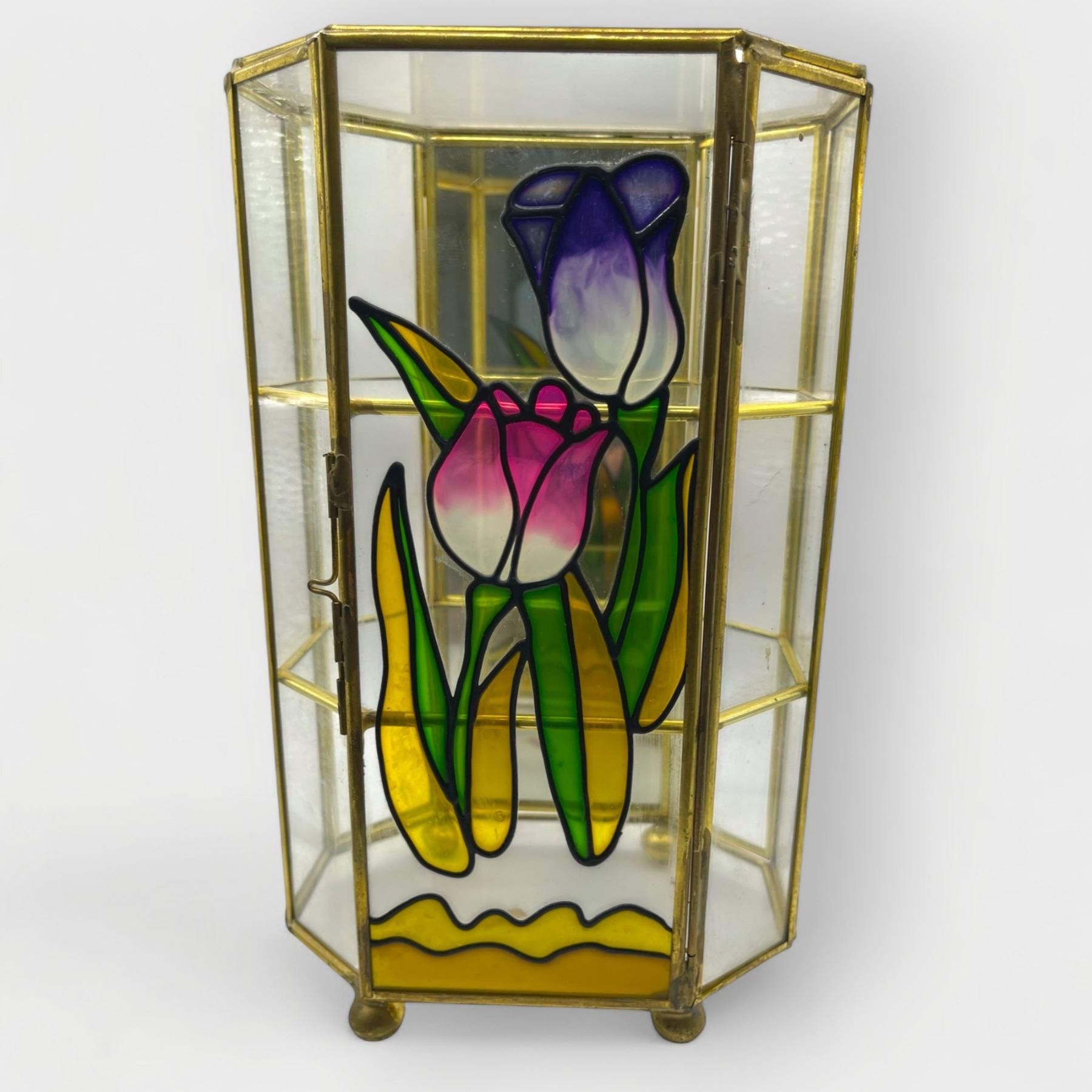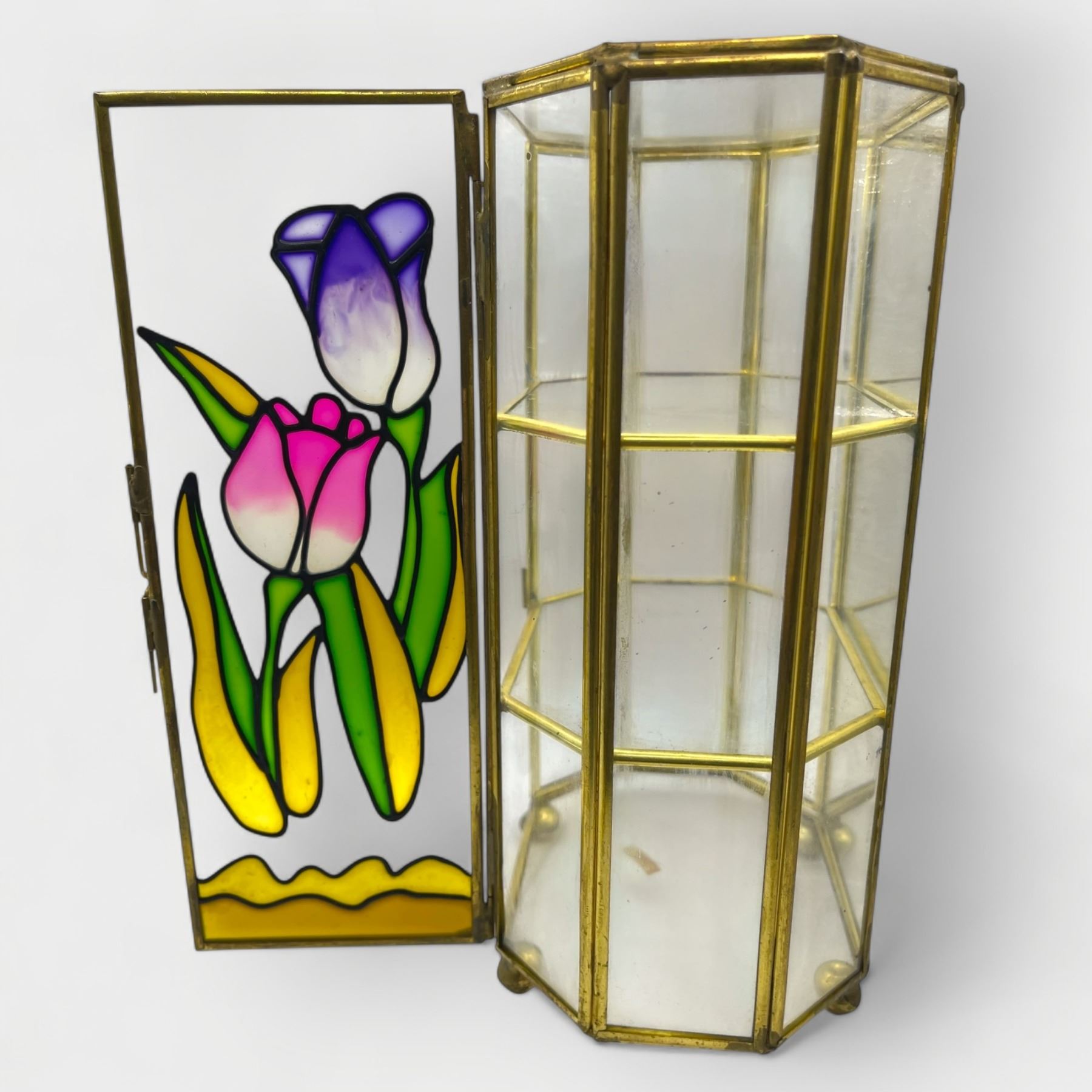 3 Pcs - Wallace Nutting Print "The Turf Path", Wall Grid Display, Hexagonal Stained-Glass Tabletop Cabinet