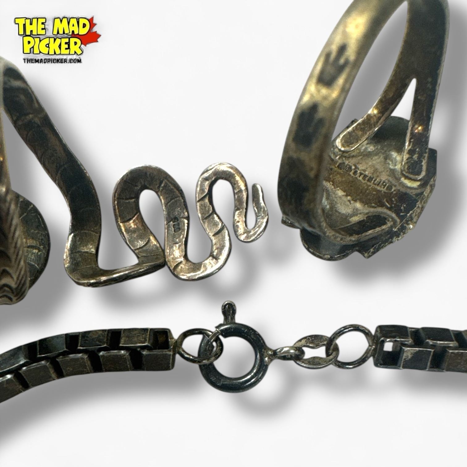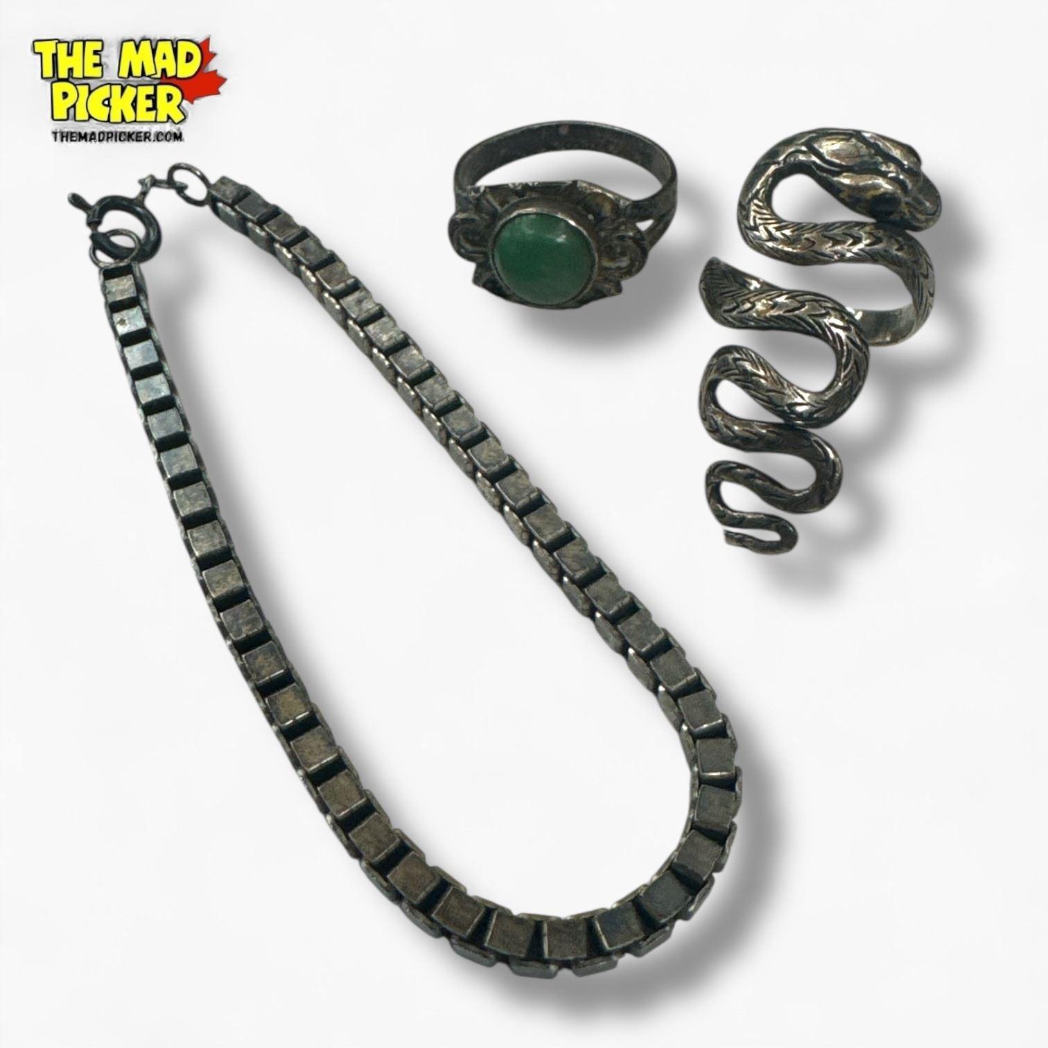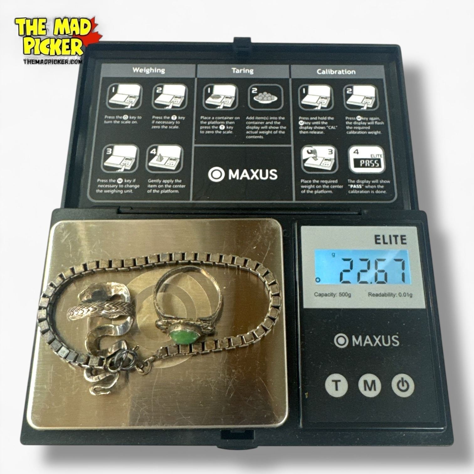 3 Pcs. of Sterling Silver Jewelry - Bracelet and 2 rings - Total weight including gemstone: 22.5 grams