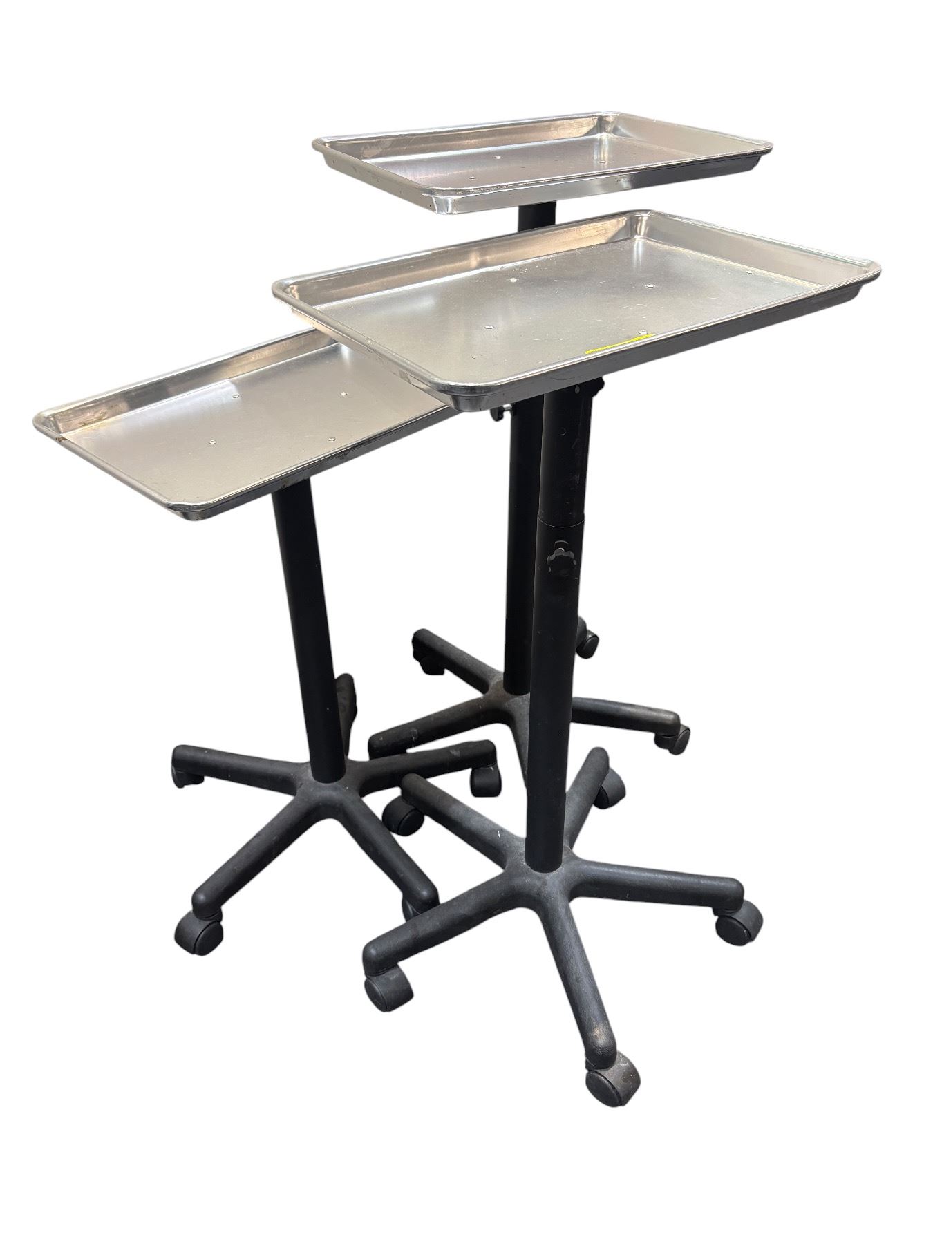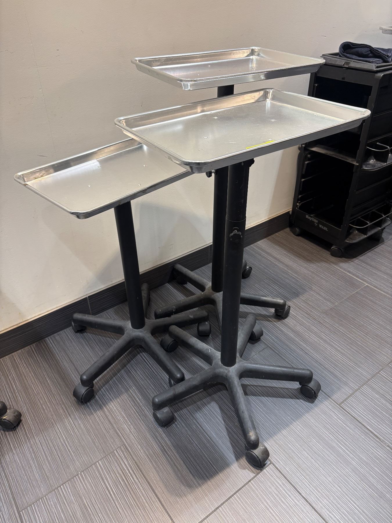 3 Professional Aluminum Salon Service Trays - Adjustable Rolling Color Stations