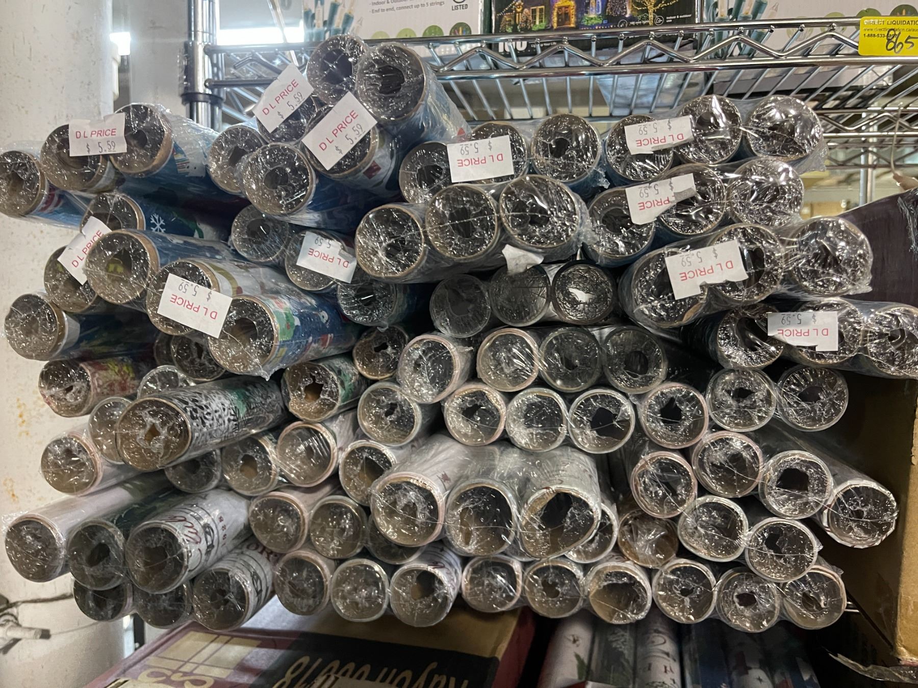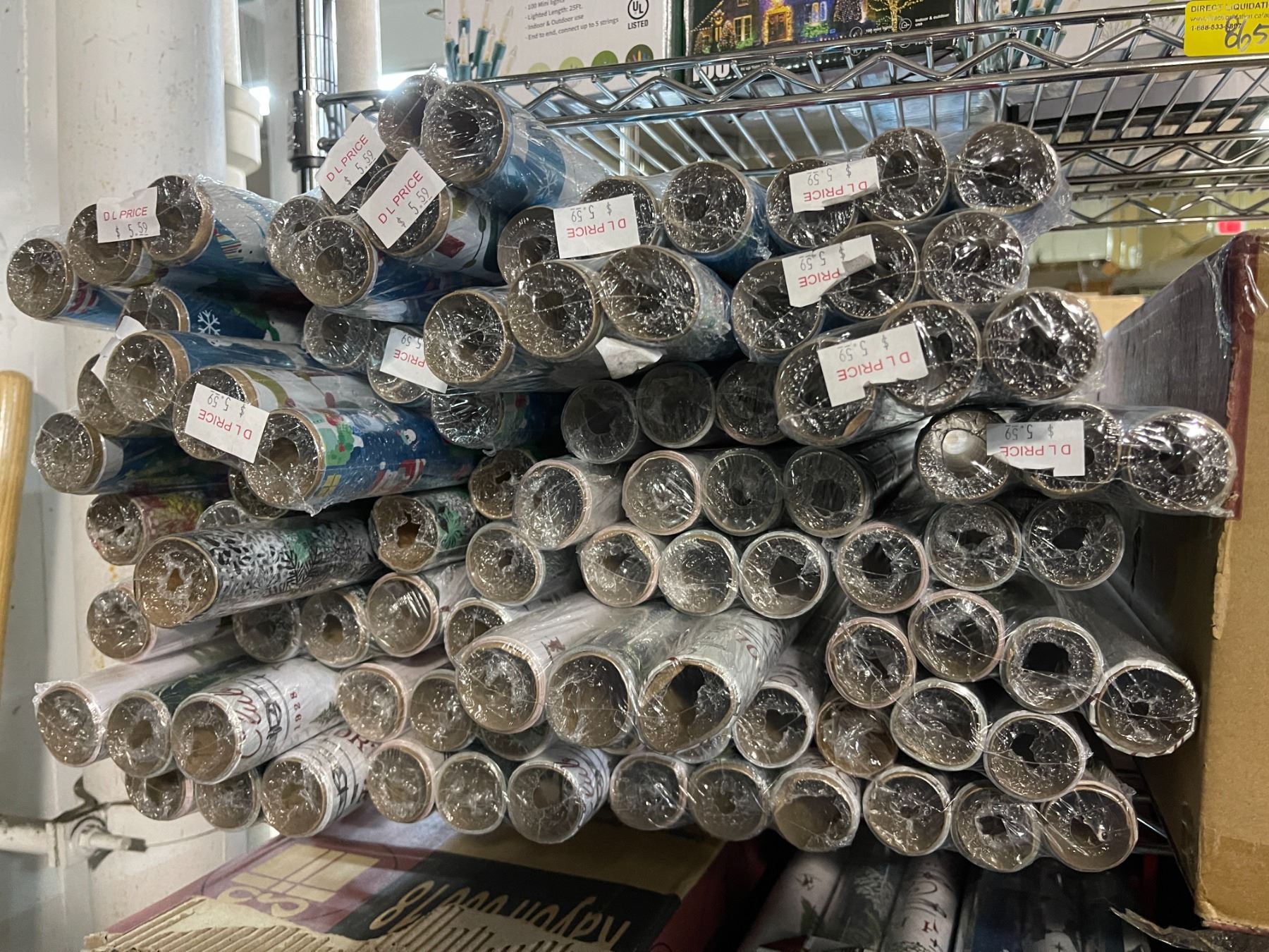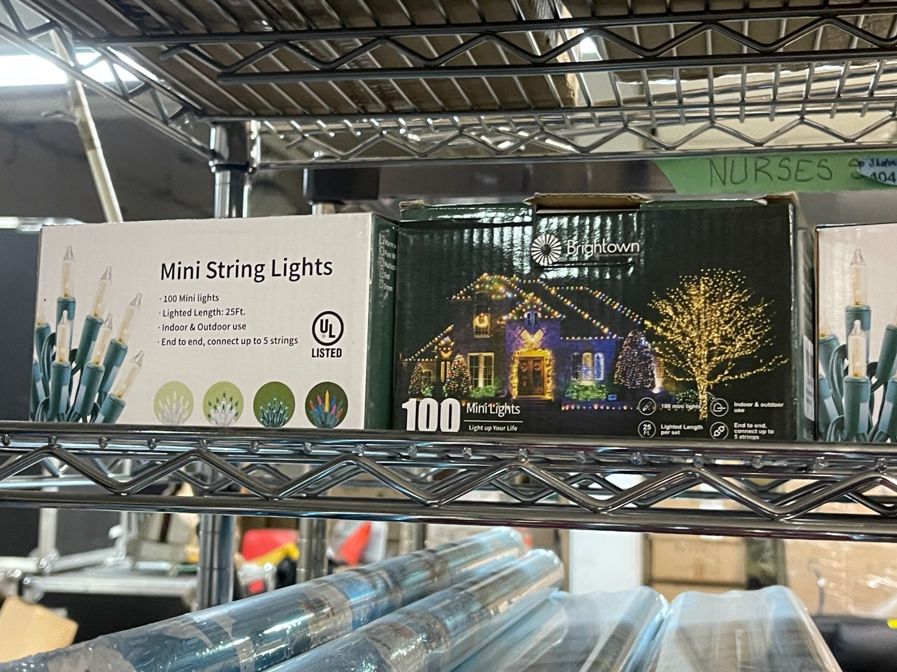 3-Shelf Festival Items: New Hallmark Gift-wraps and Mini String Lights