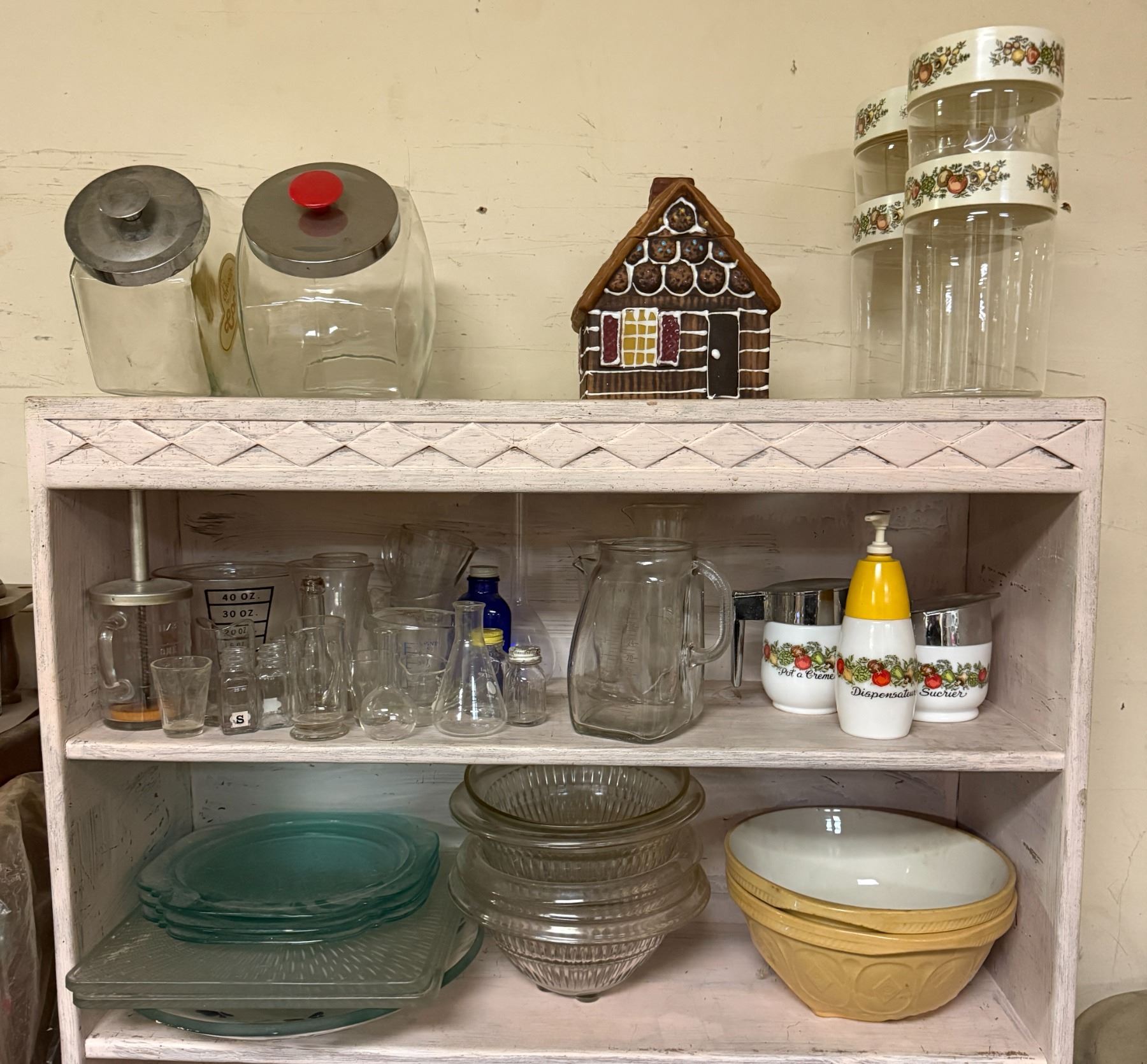 3 Shelf - Includes Vintage Gingerbread House, Cookie Jars, Glassware & Mixing Bowls