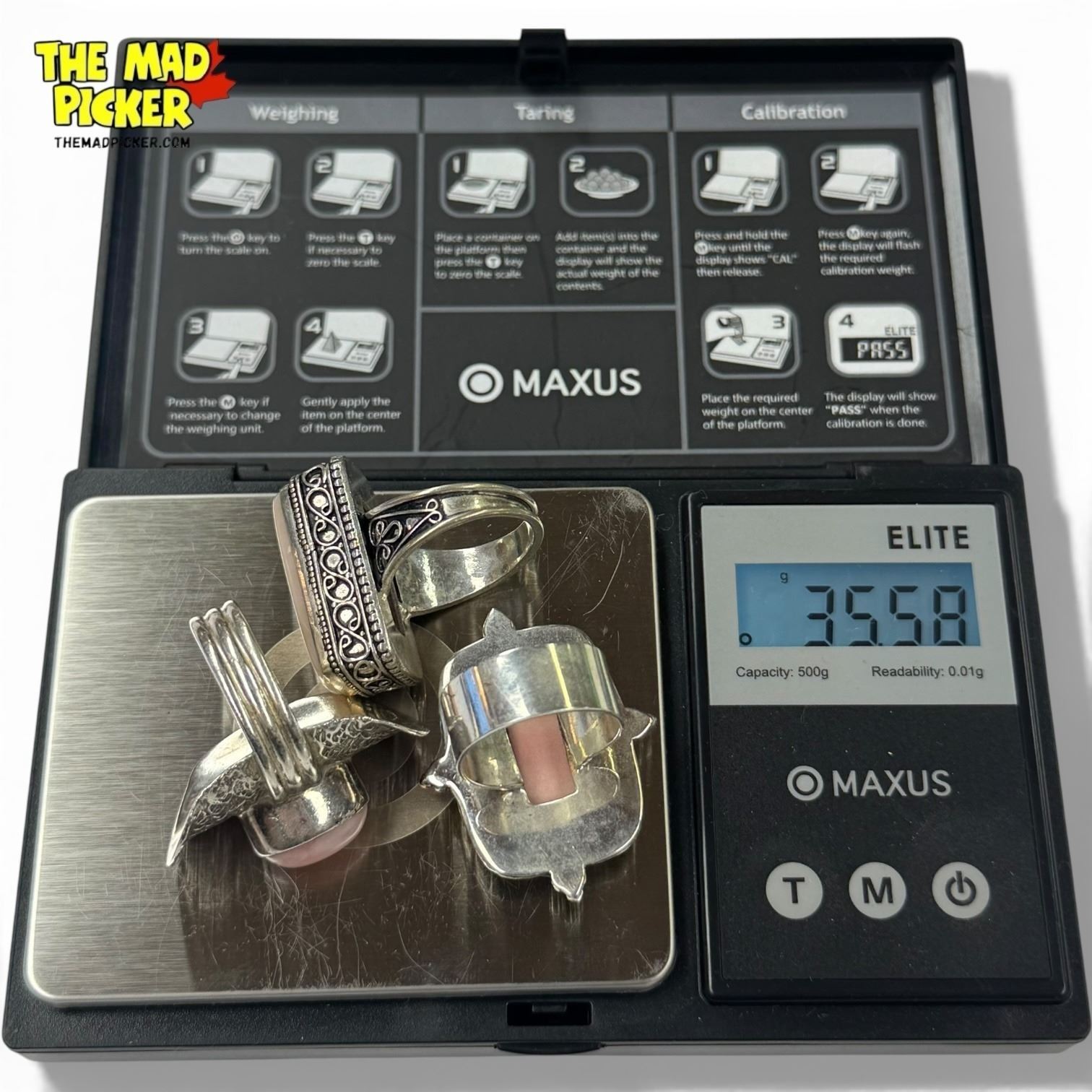 3 Silver Pink Andean Opal Rings - Sizes 8, 10 and 11- Total weight: 35.5grams