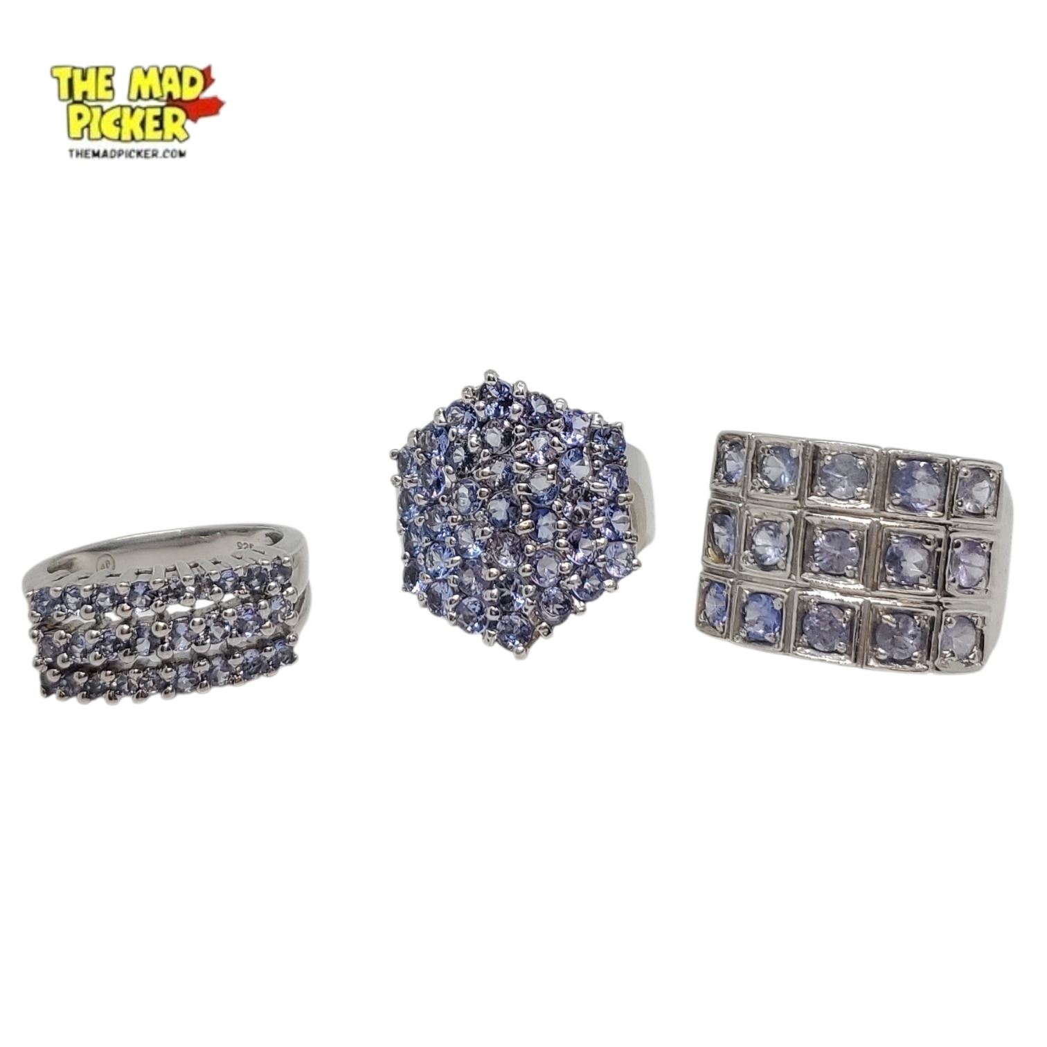 3 Sterling Silver Amethyst Crystal Pave Rings Stamped .925 - Total weight: 28.8 grams