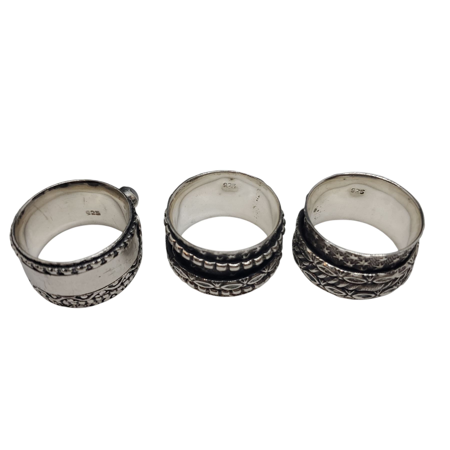 3 Sterling Silver Size 10 Spinner Rings - Total weight: 28 grams