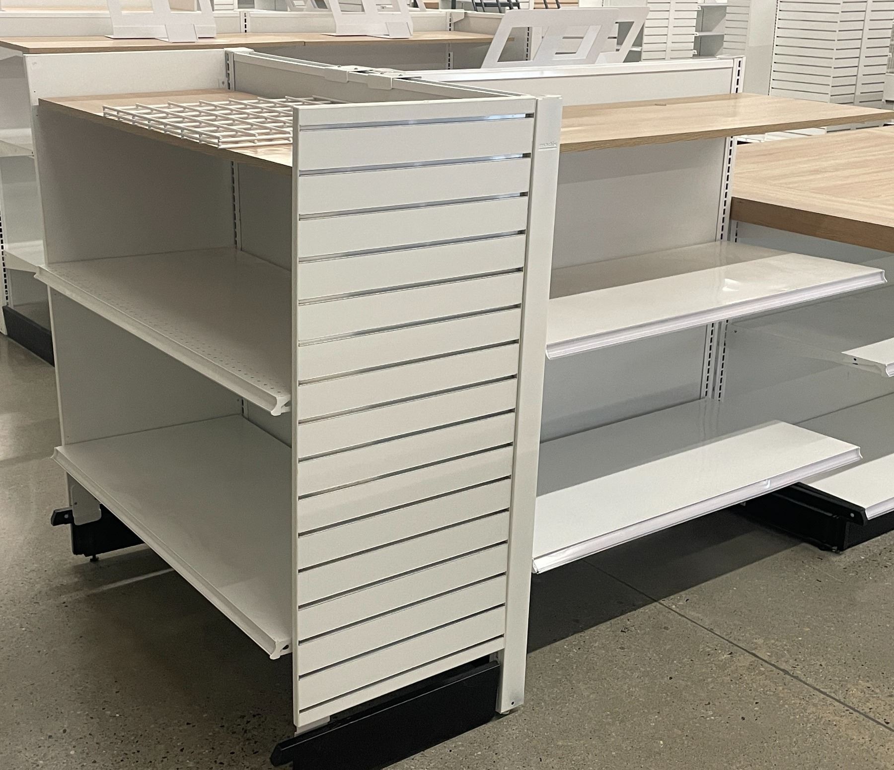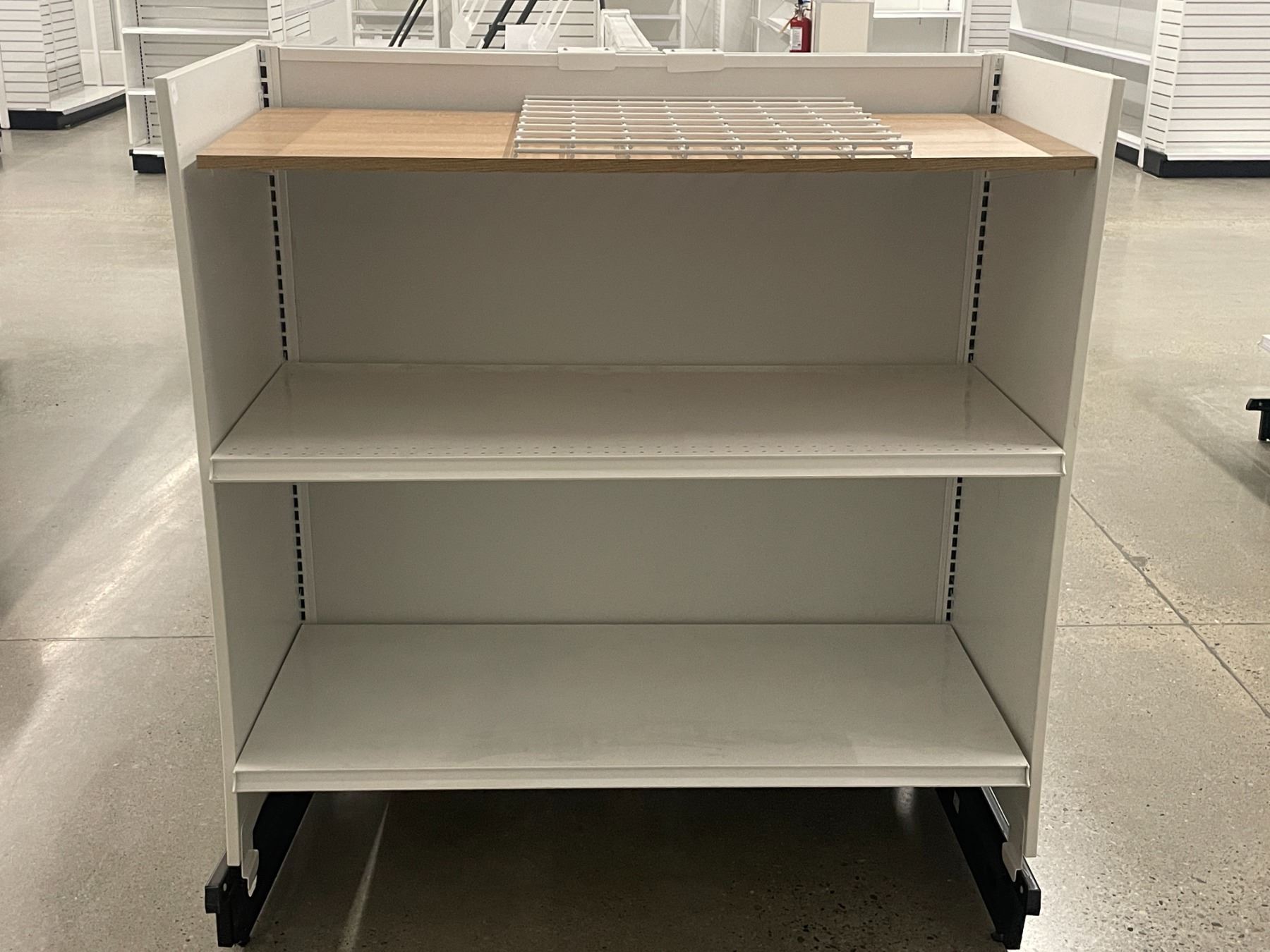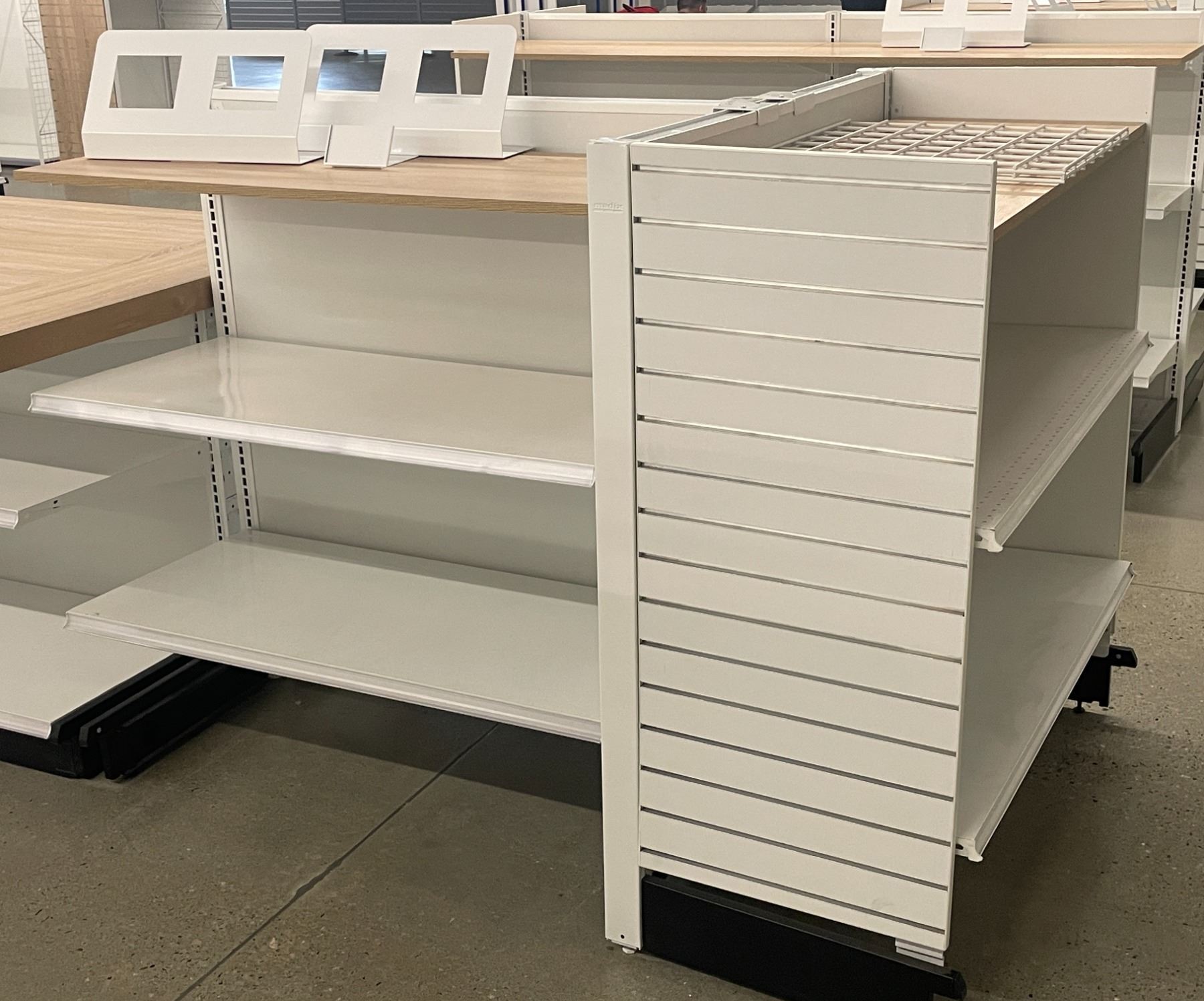 3 Tier retail double-sided gondola with single end cap w/2 display stands (approx. 73in W 55in H 50in D - excellent condition, Madix brand) BIDDERS ARE RESPONSIBLE FOR ALL COSTS ASSOCIATED WITH PICKUP OF THEIR LOTS INCLUDING BUT NOT LIMITED TO RENTAL OF EQUIPMENT, FORKLIFTS, LABOUR, TRUCKING, TOOLS ETC.