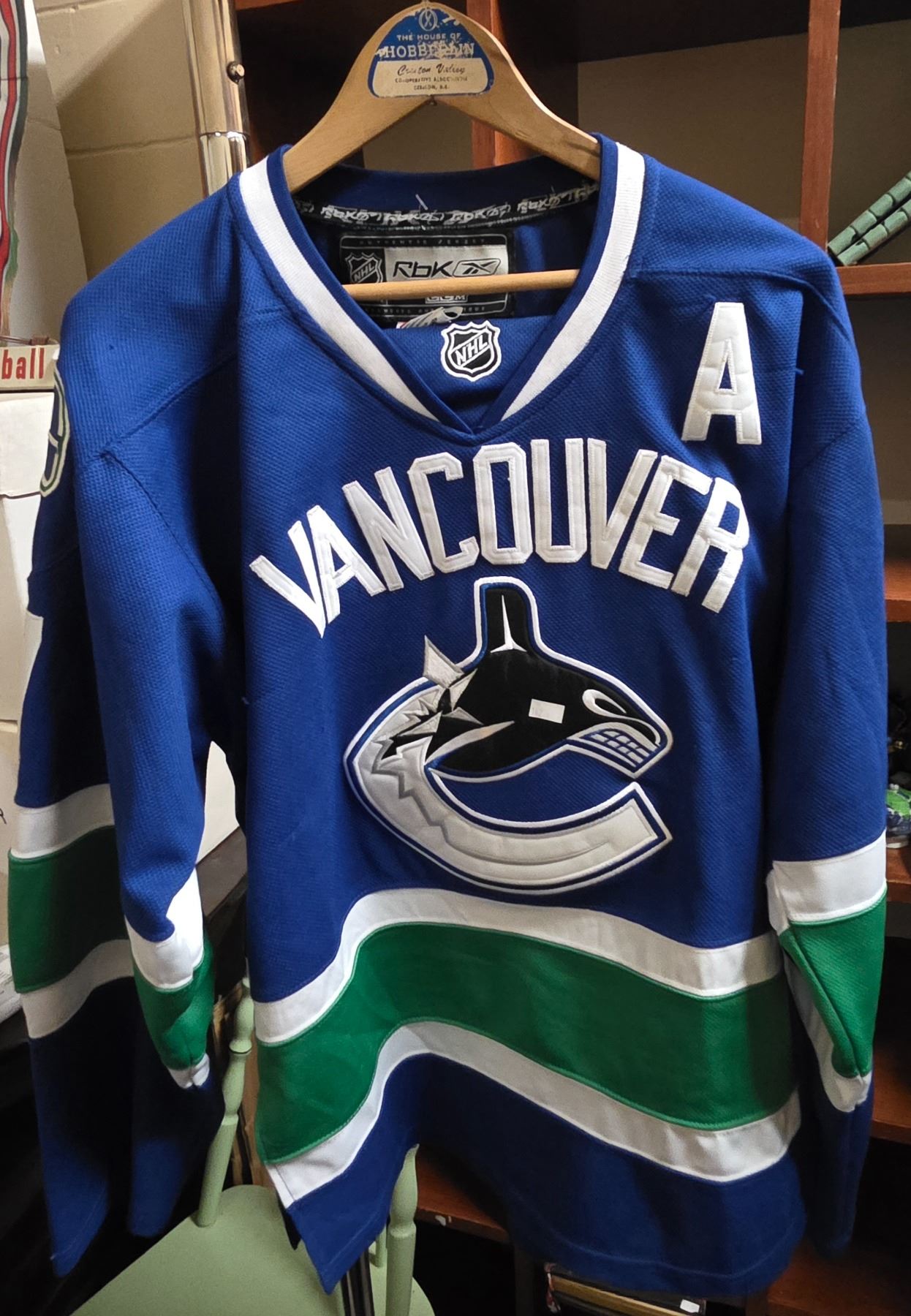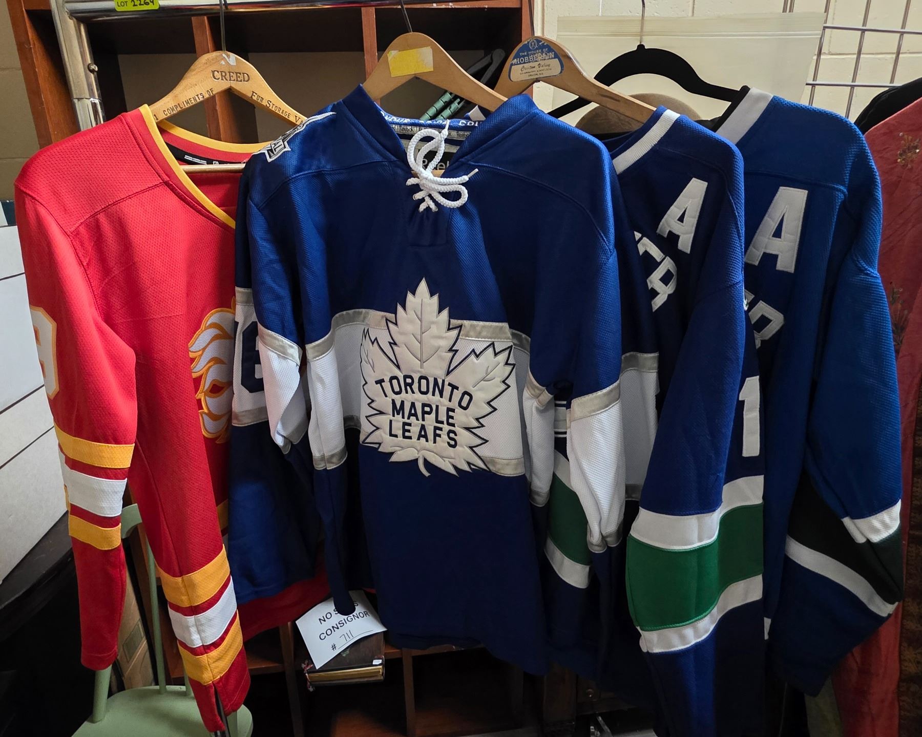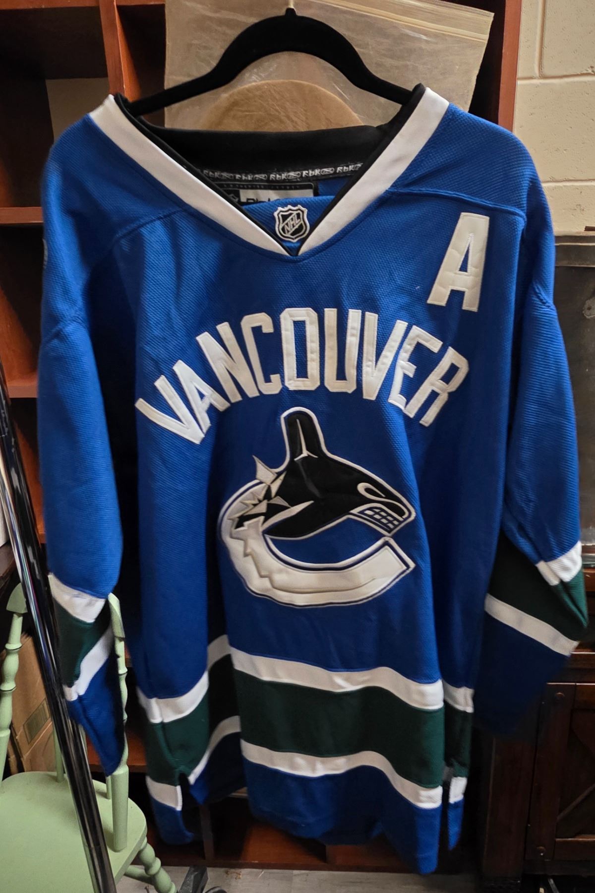 3 Vancouver Canucks Jerseys (2 with an A) and 1 Calgary Flames Jersey