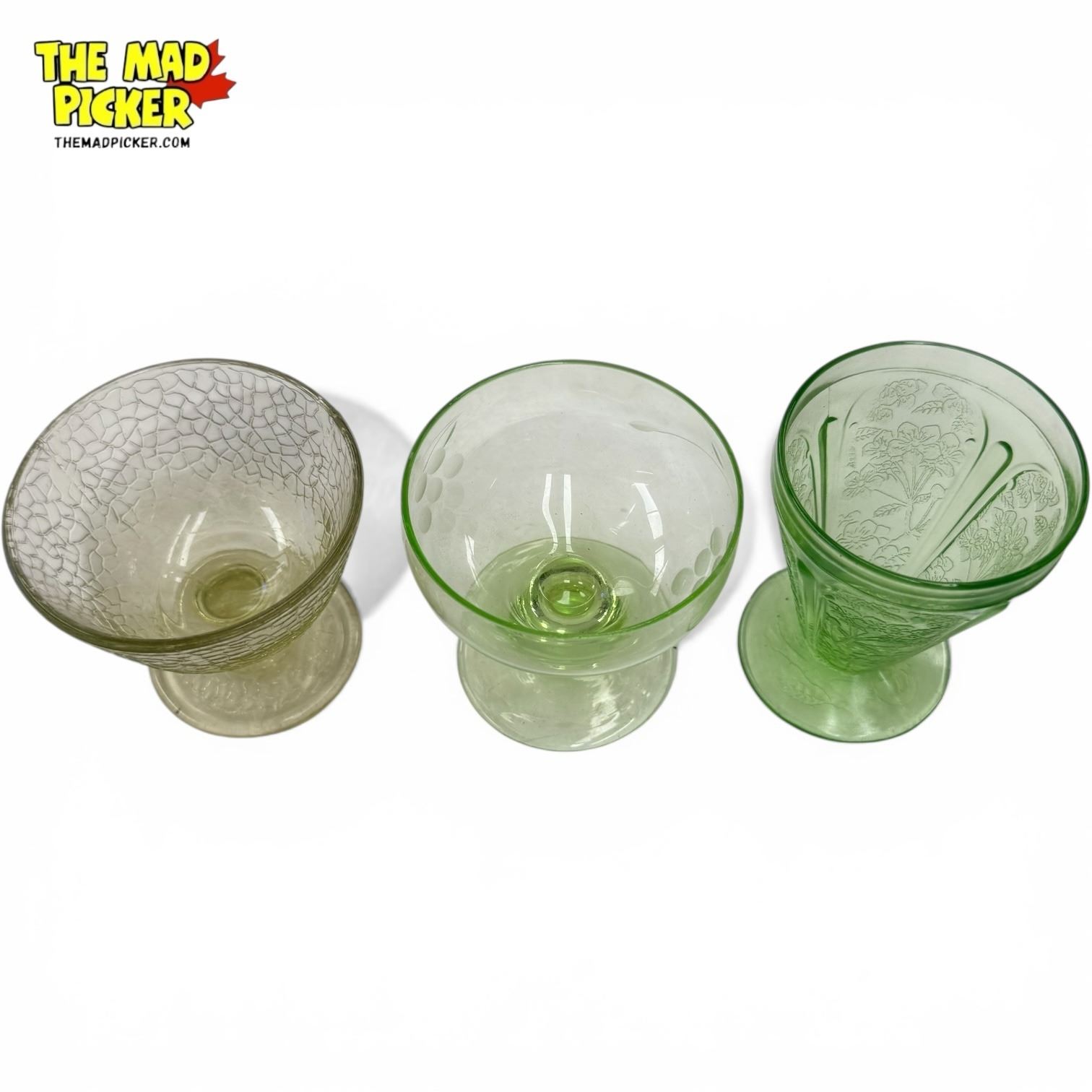 3 Vintage Dessert Glasses - 2 are Uranium Glass