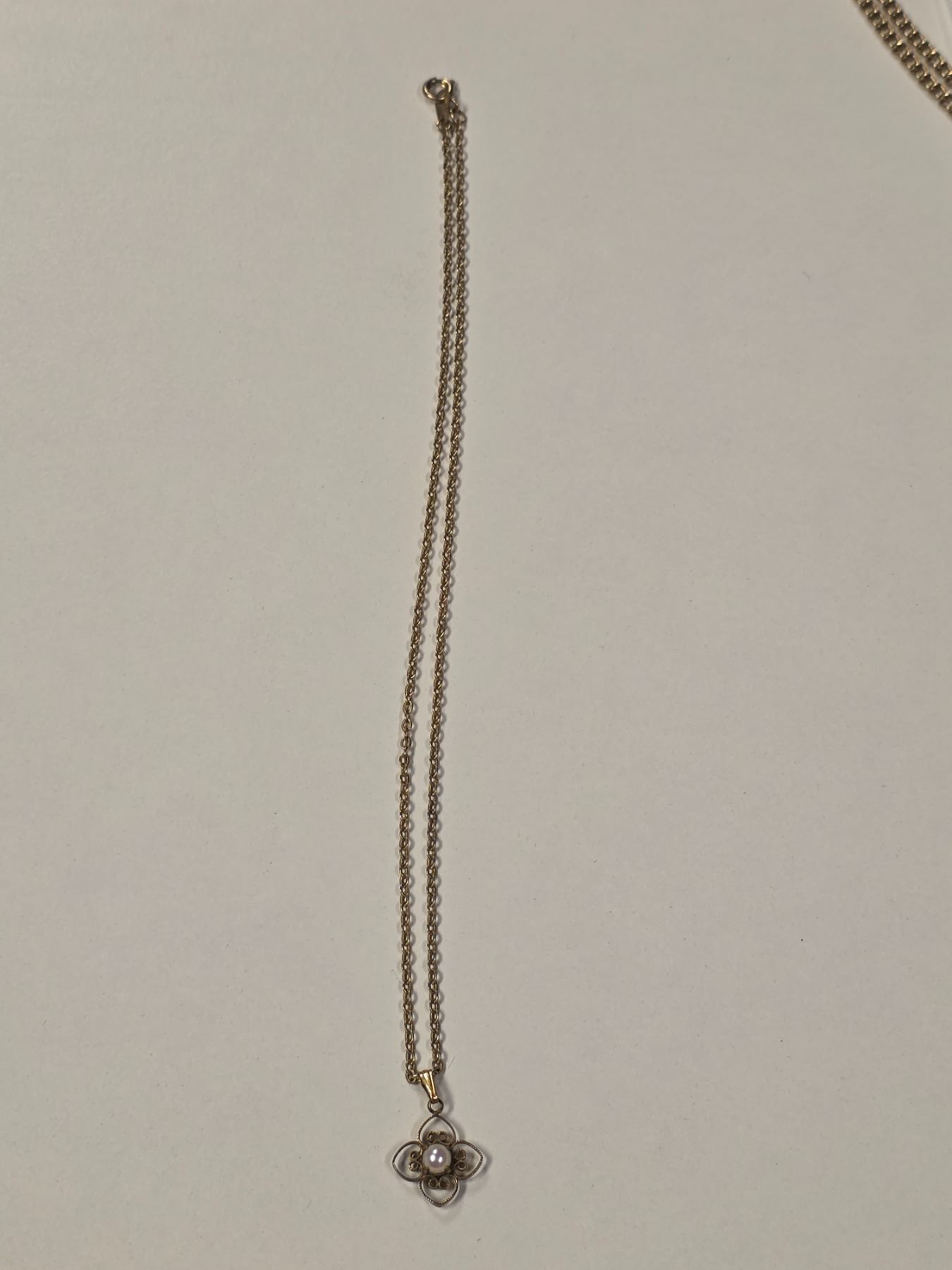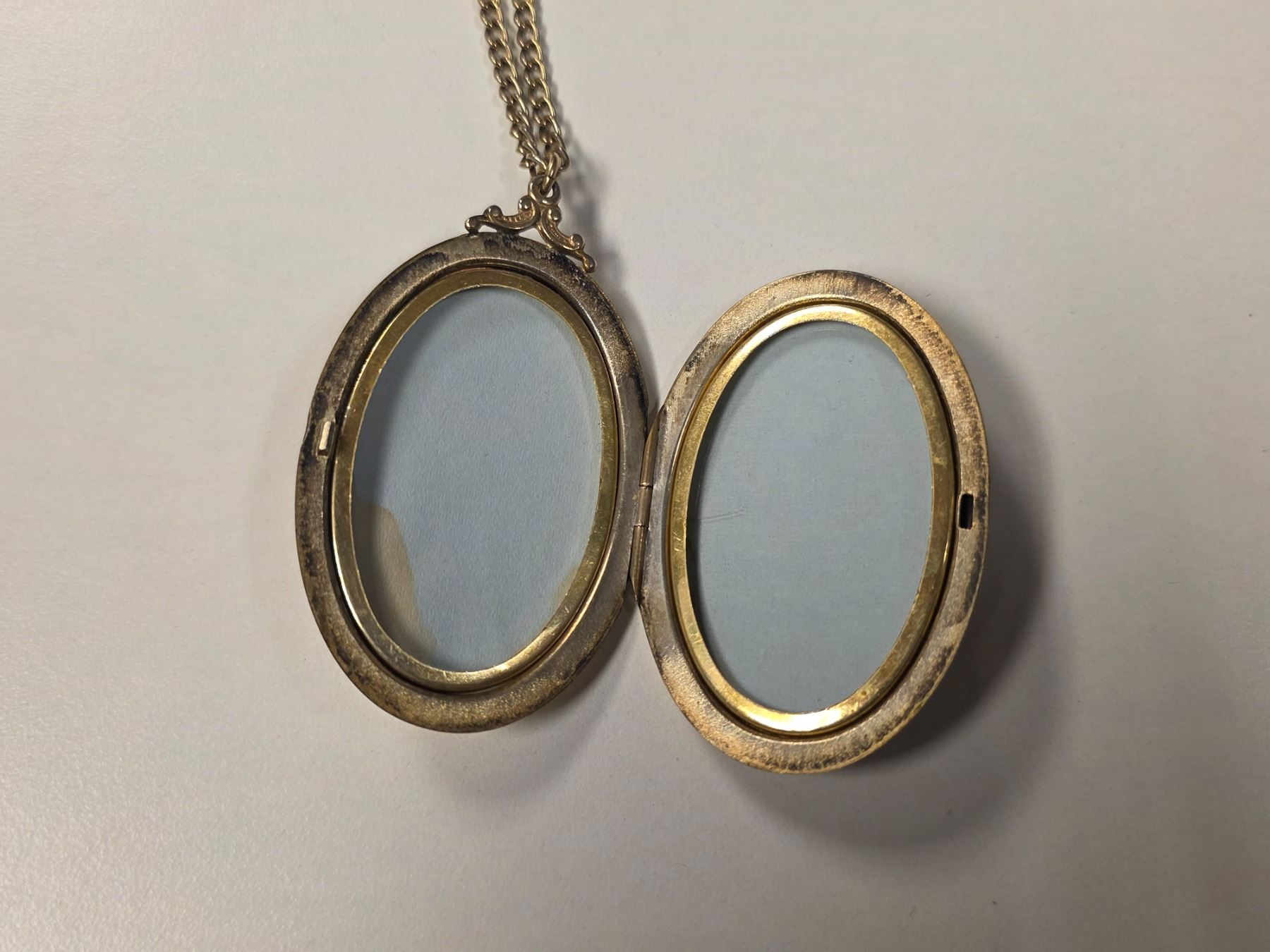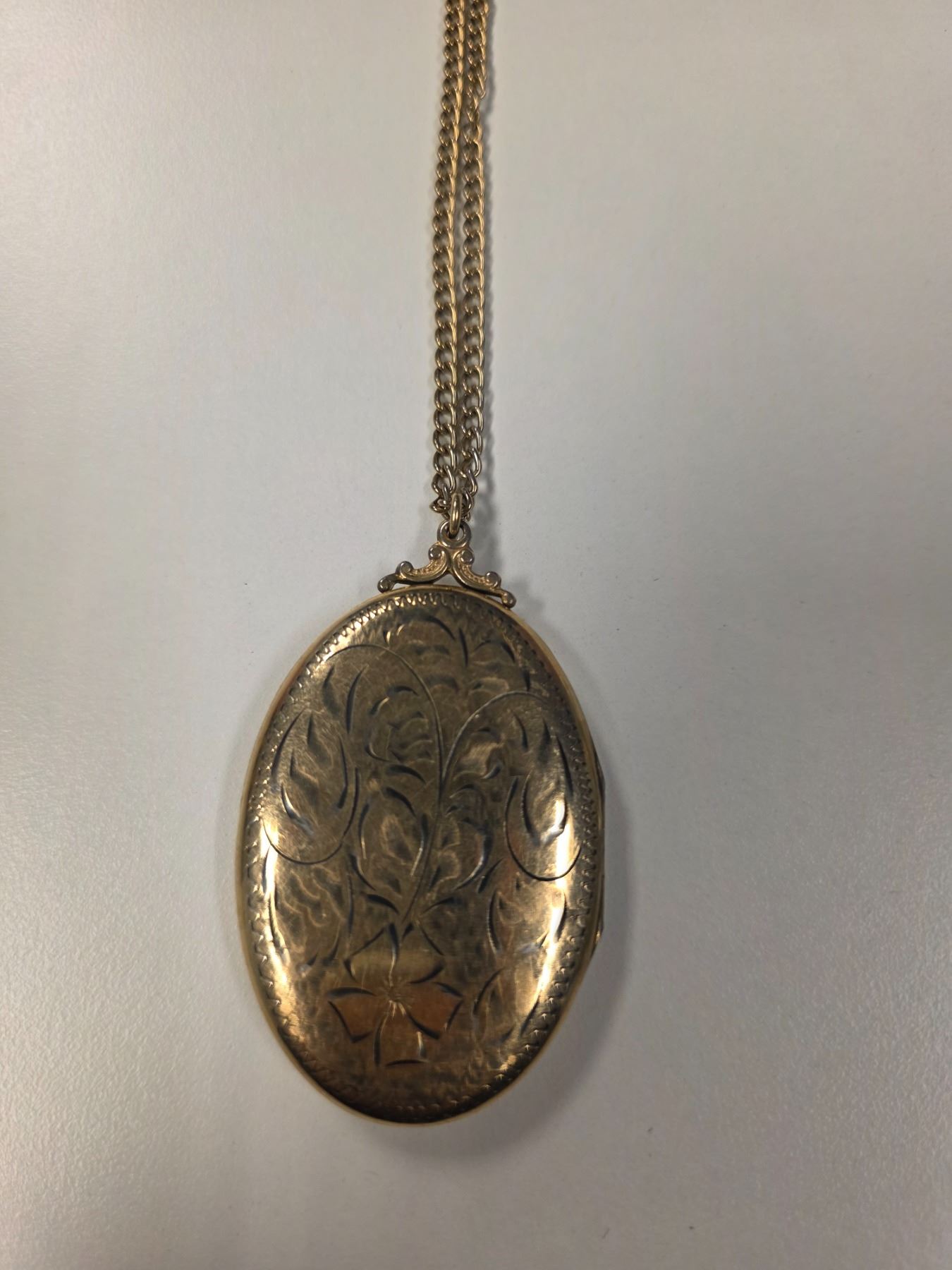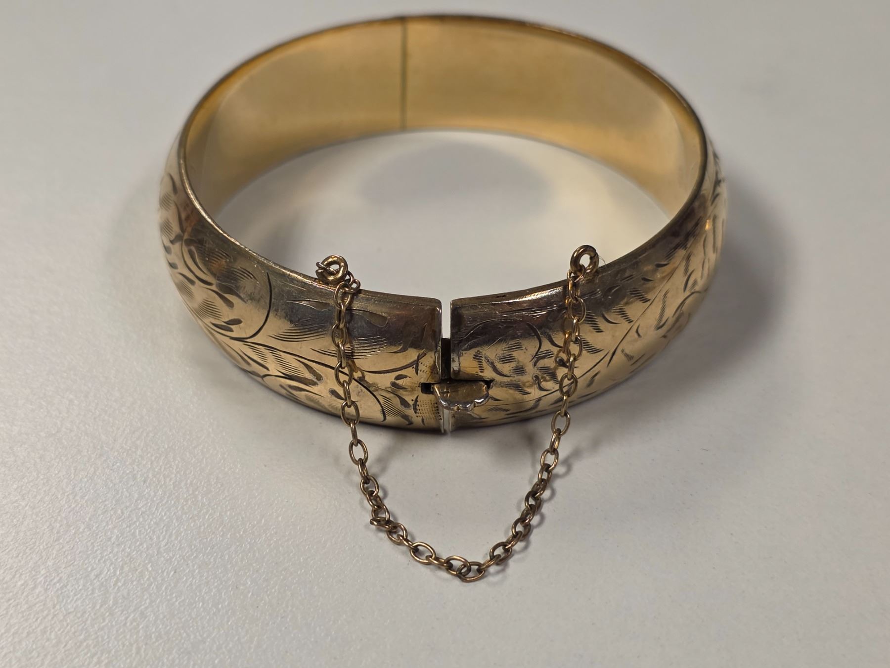 3 Vintage Gold Filled Jewelry Pieces - Hinged Cuff Bracelet, 39 x 60mm Oval Locket, & 13mm Pearl Pendant