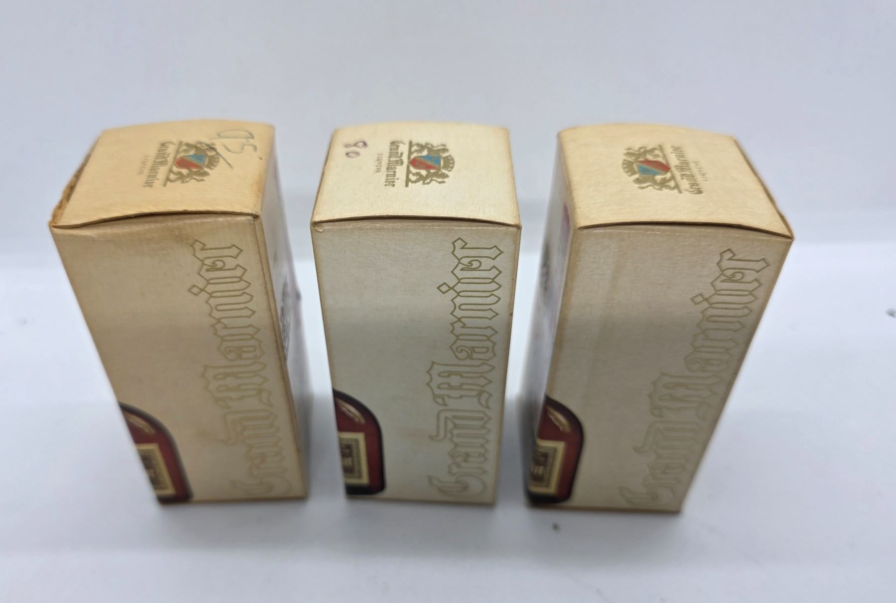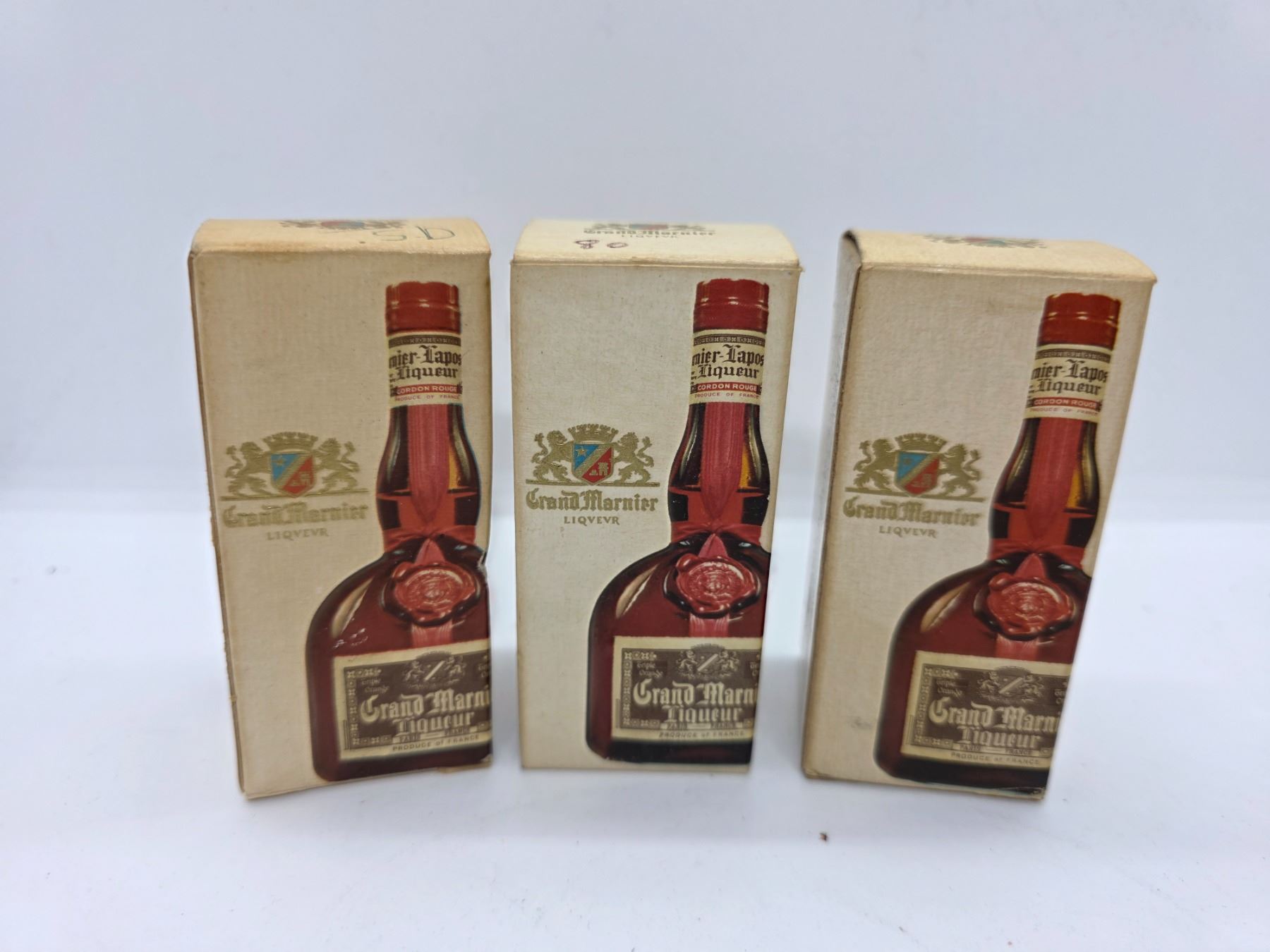 3 Vintage Grand Marnier Glass Mini Liquor Bottles in Original Boxes - 1 is full