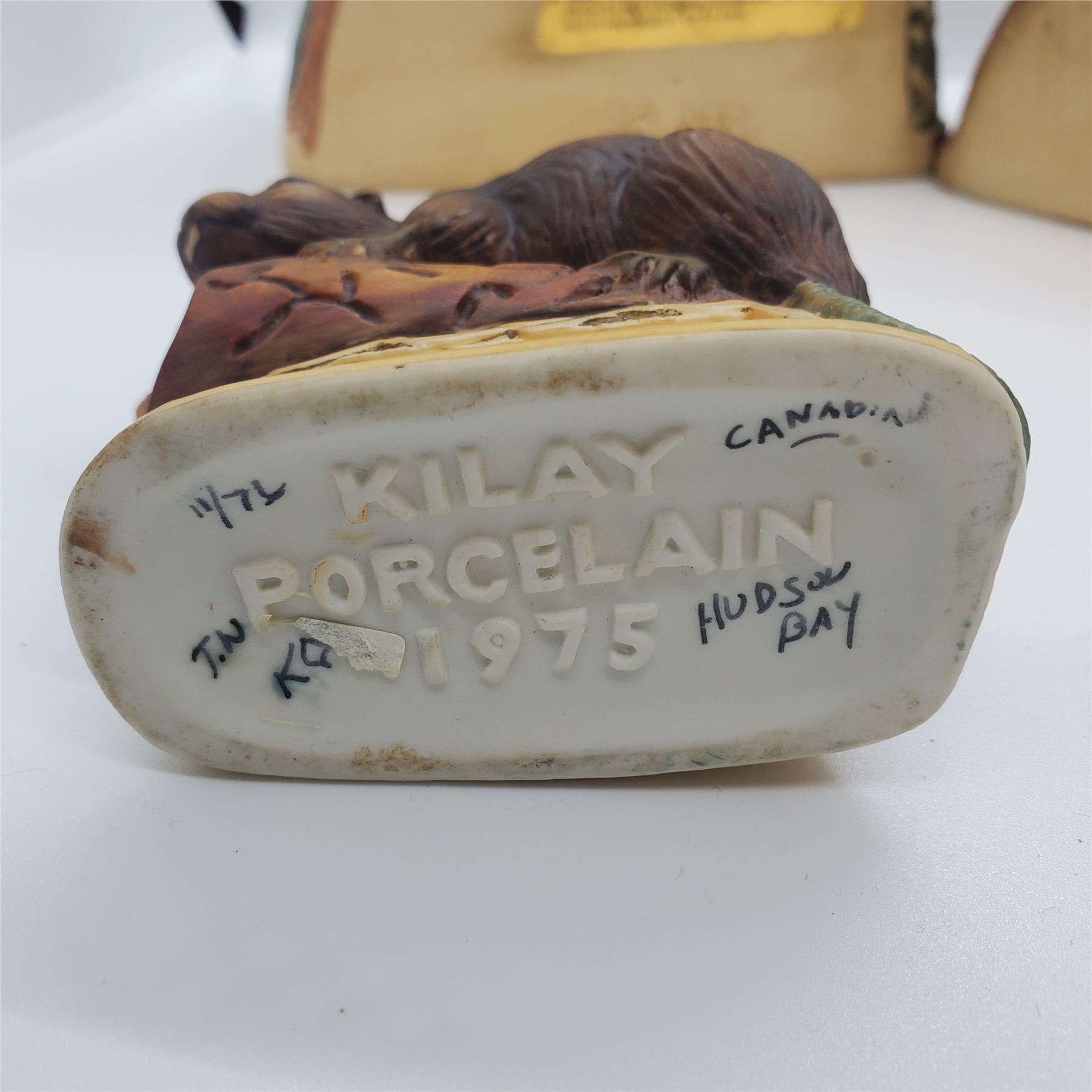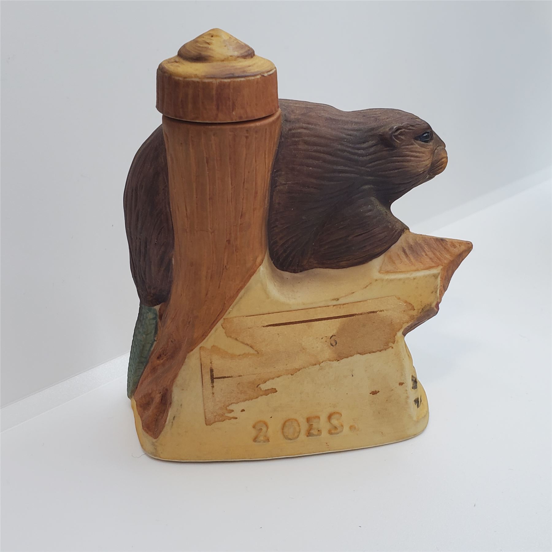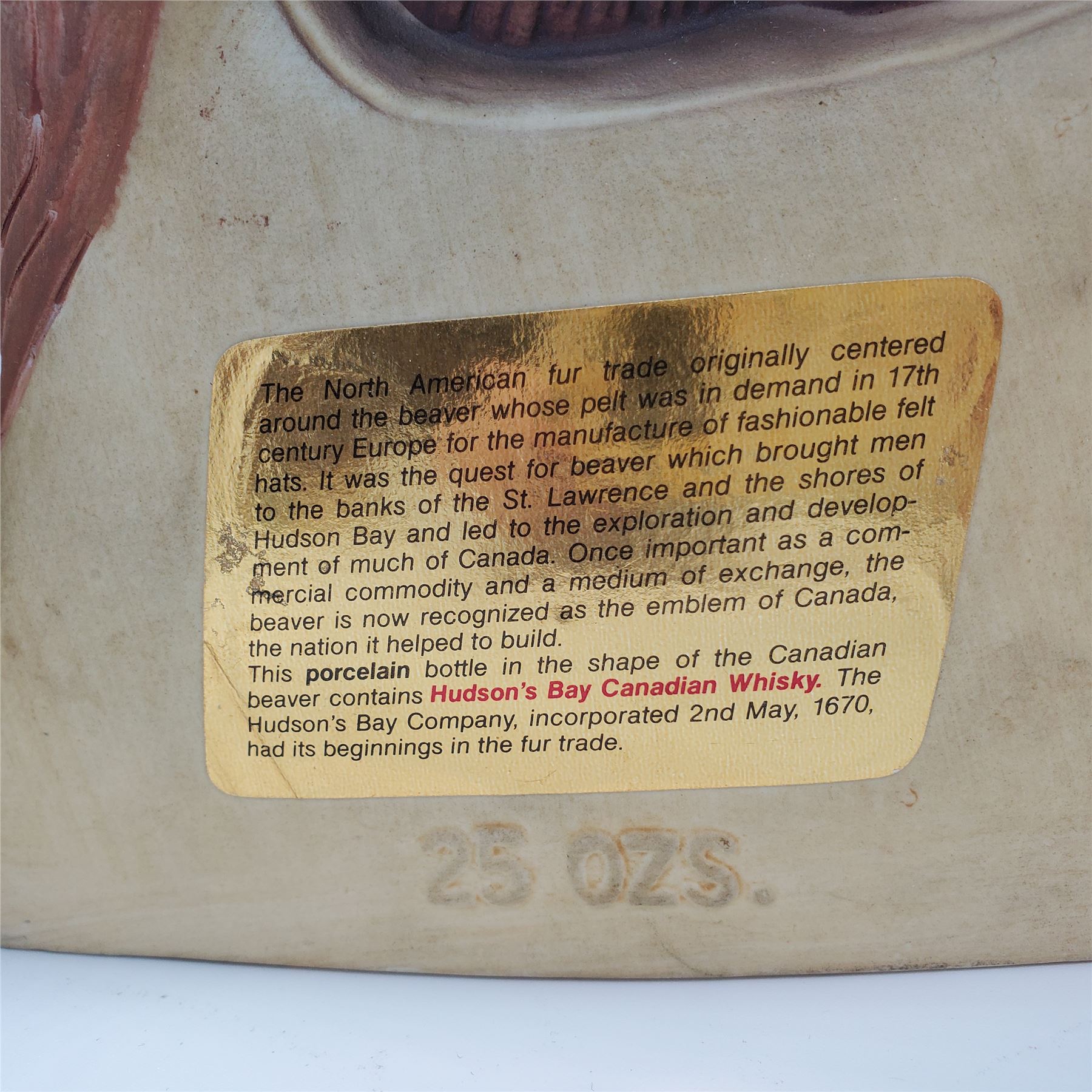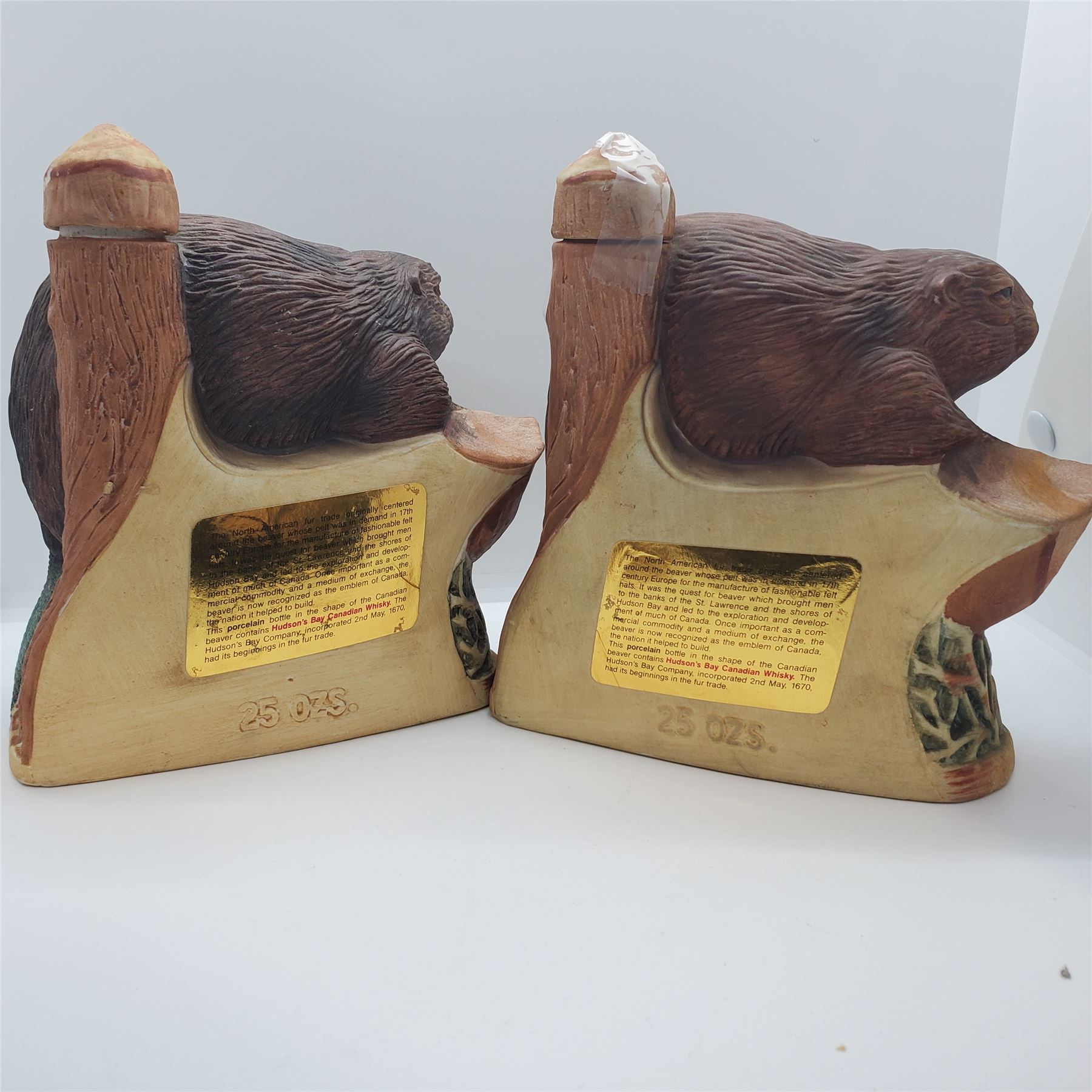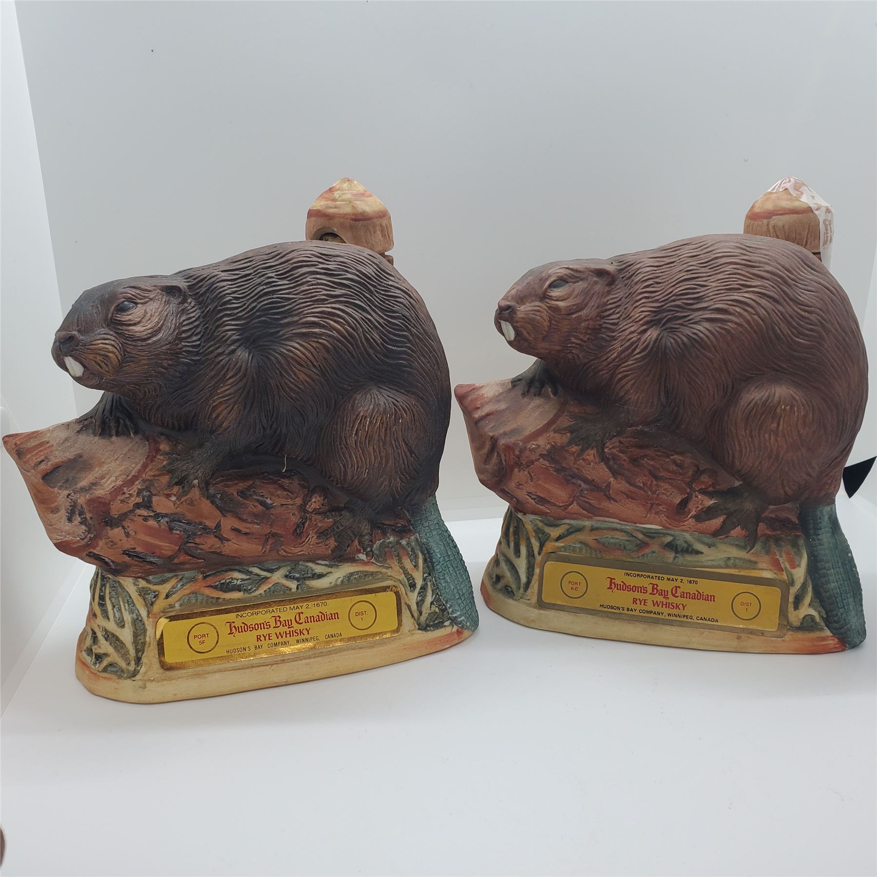 3 Vintage Hudson's Bay Canadian Rye Empty Whisky Decanters "Beaver", Includes 2 Full-Size (1972) and 1 Mini (1975) - Kilay Porcelain