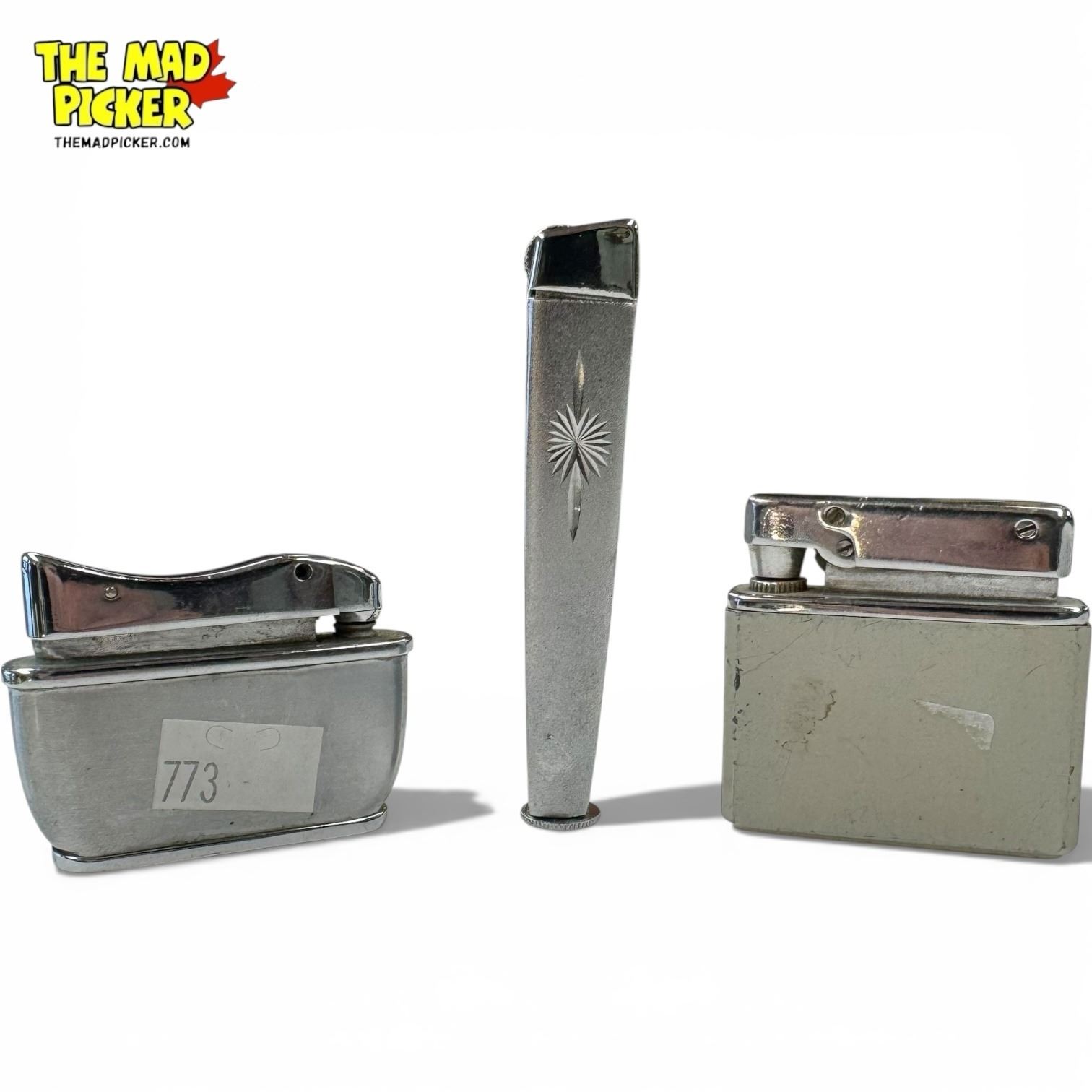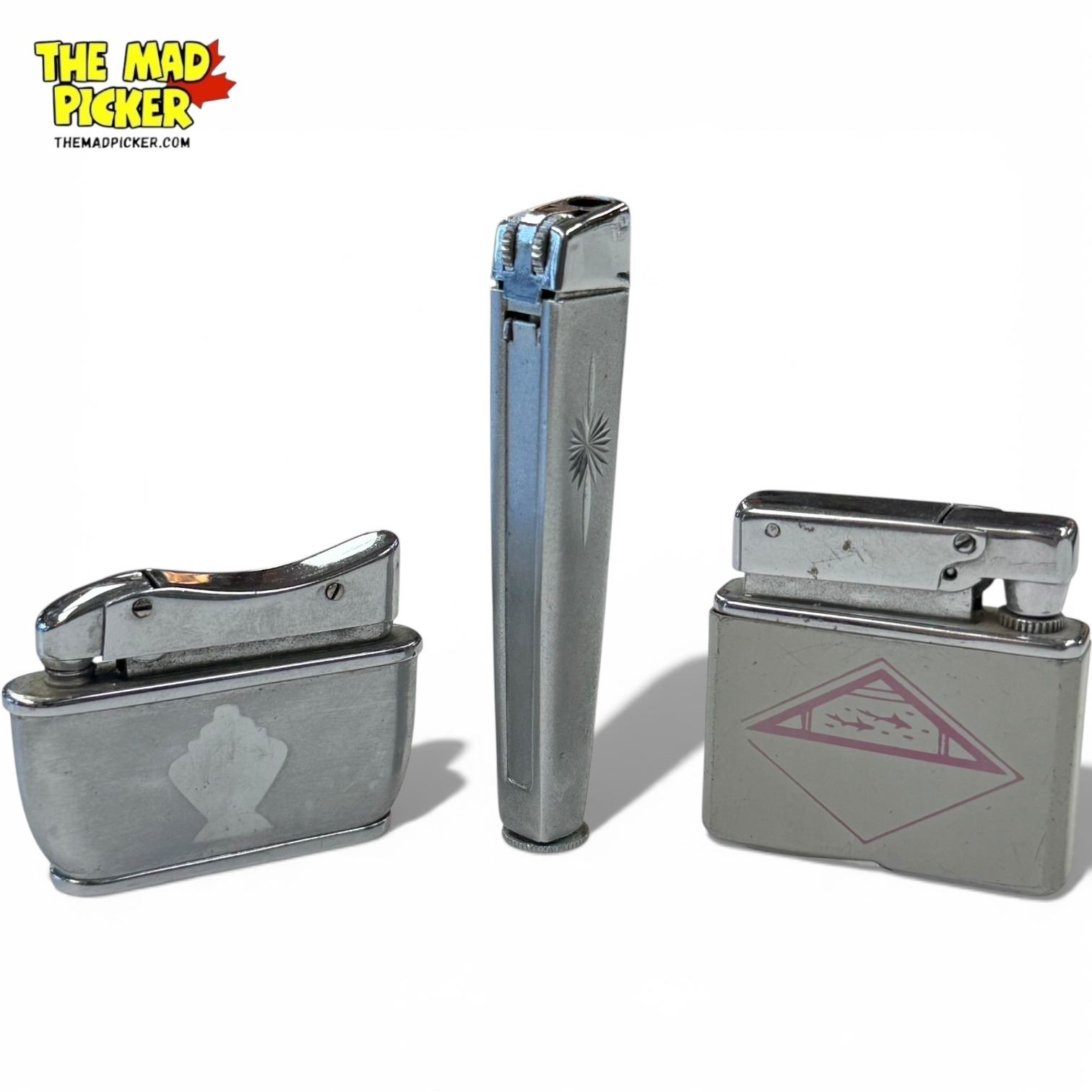 3 Vintage Pocket Lighters - Featuring the Maypole Sun Pearl 3" Slim Lighter