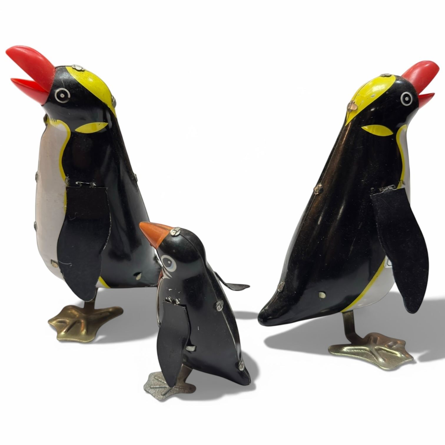 3 Vintage Tin Toy Penguins (tallest is 6")