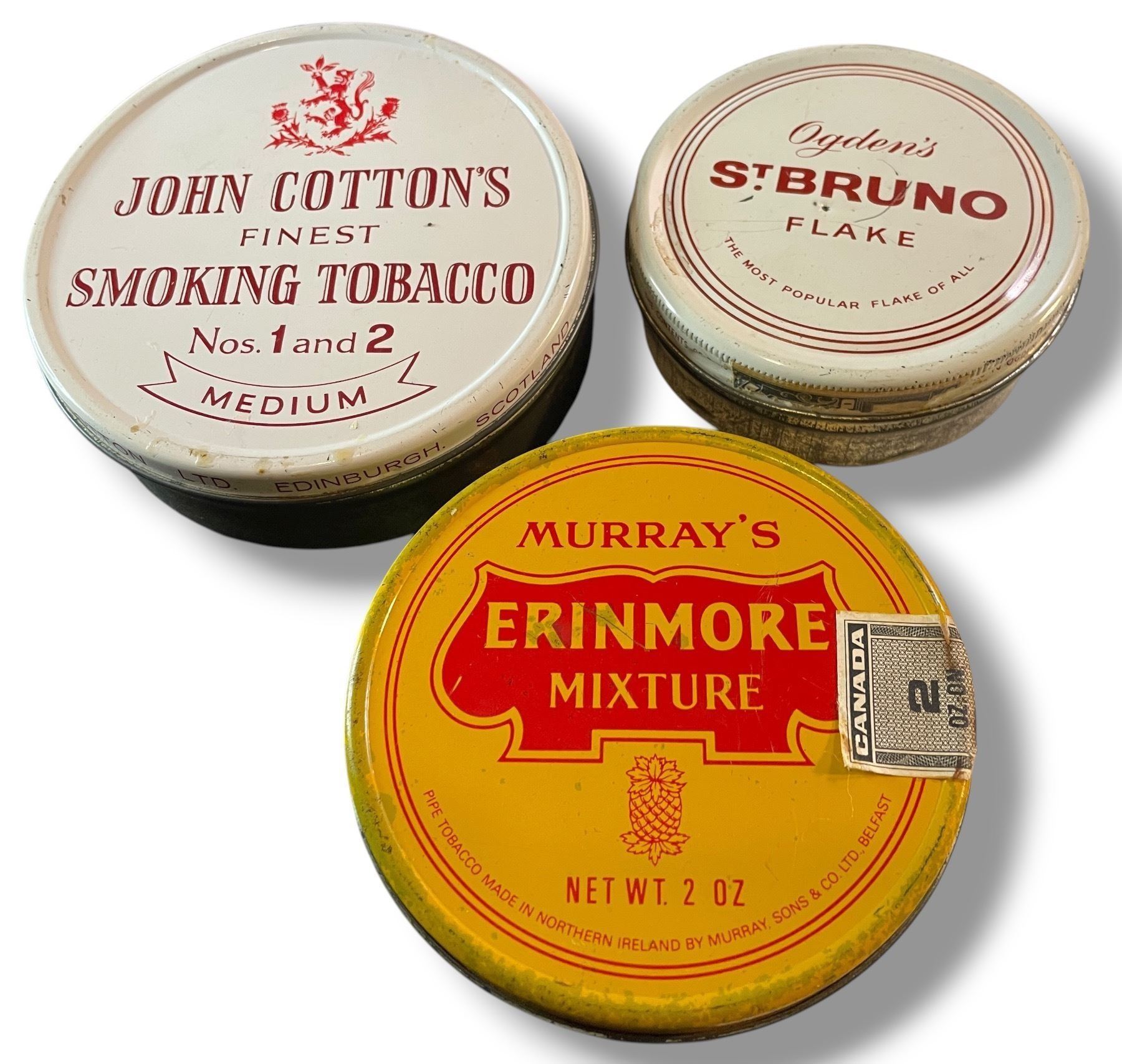 3 Vintage Tobacco Tins - John Cotton's (50 gram tin) Murray's Erinmore (2 oz,) and Ogden's St. Bruno Flake (2 oz.)