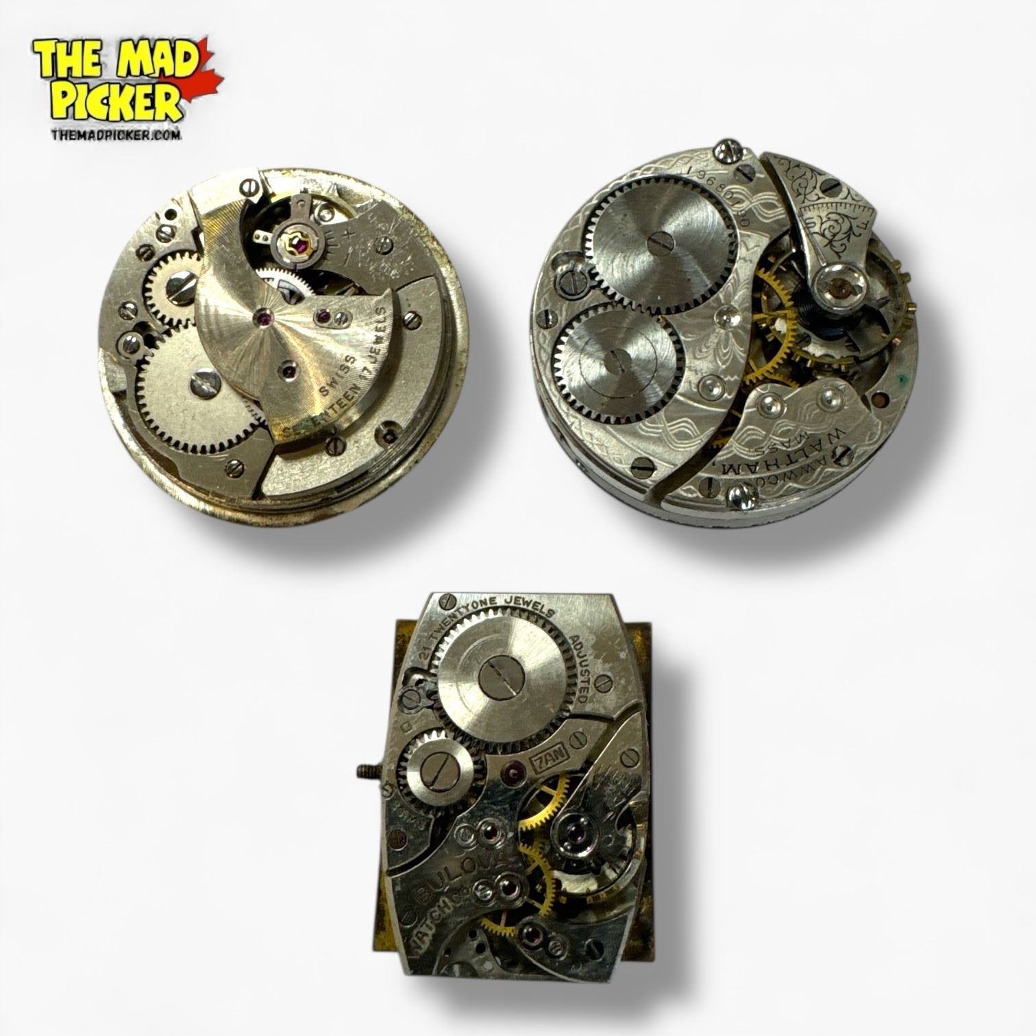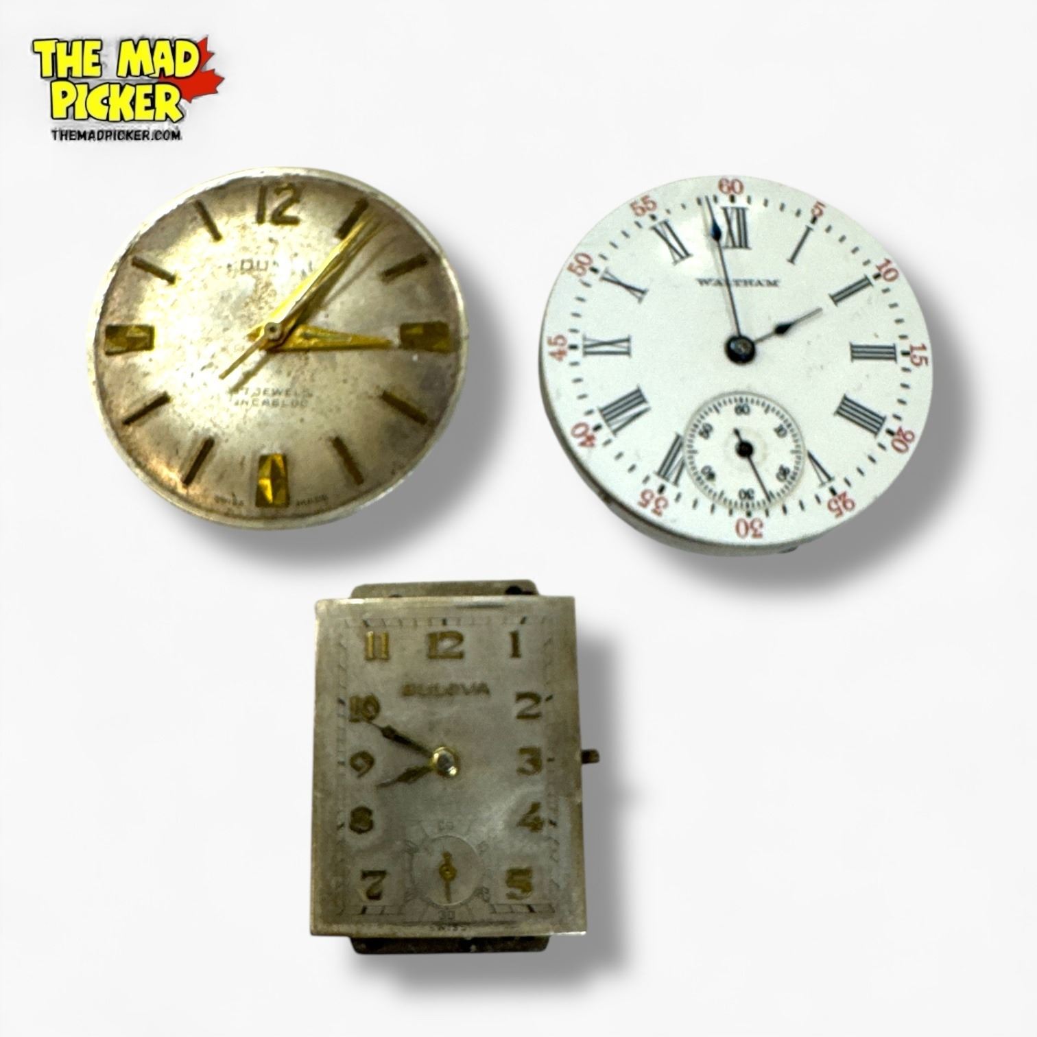 3 Vintage Watch Movements - Waltham, Bulova, & Dumai