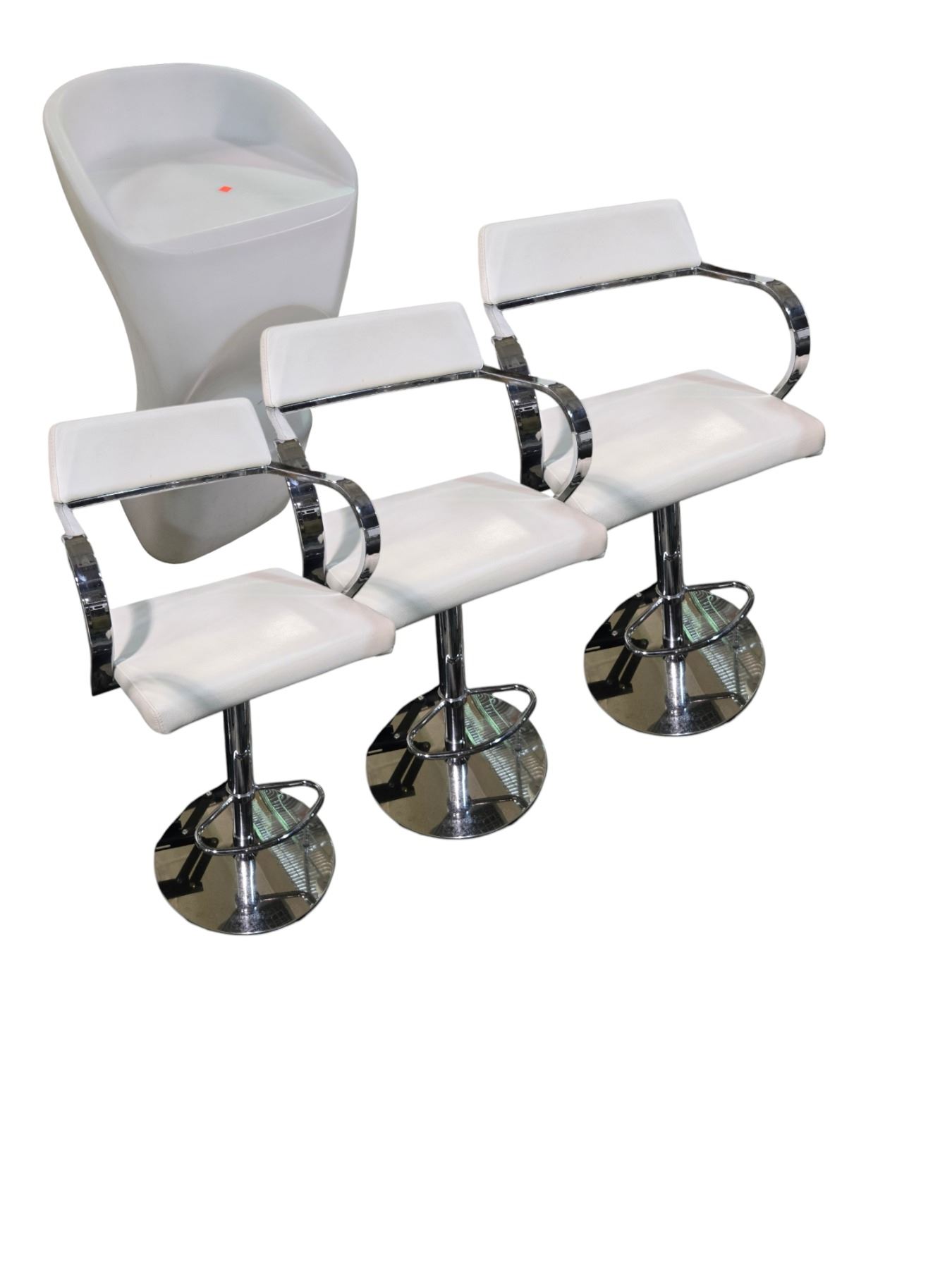 3 White Adjustable Bar Stools w/Chrome Armrest & Light Up High Chair
