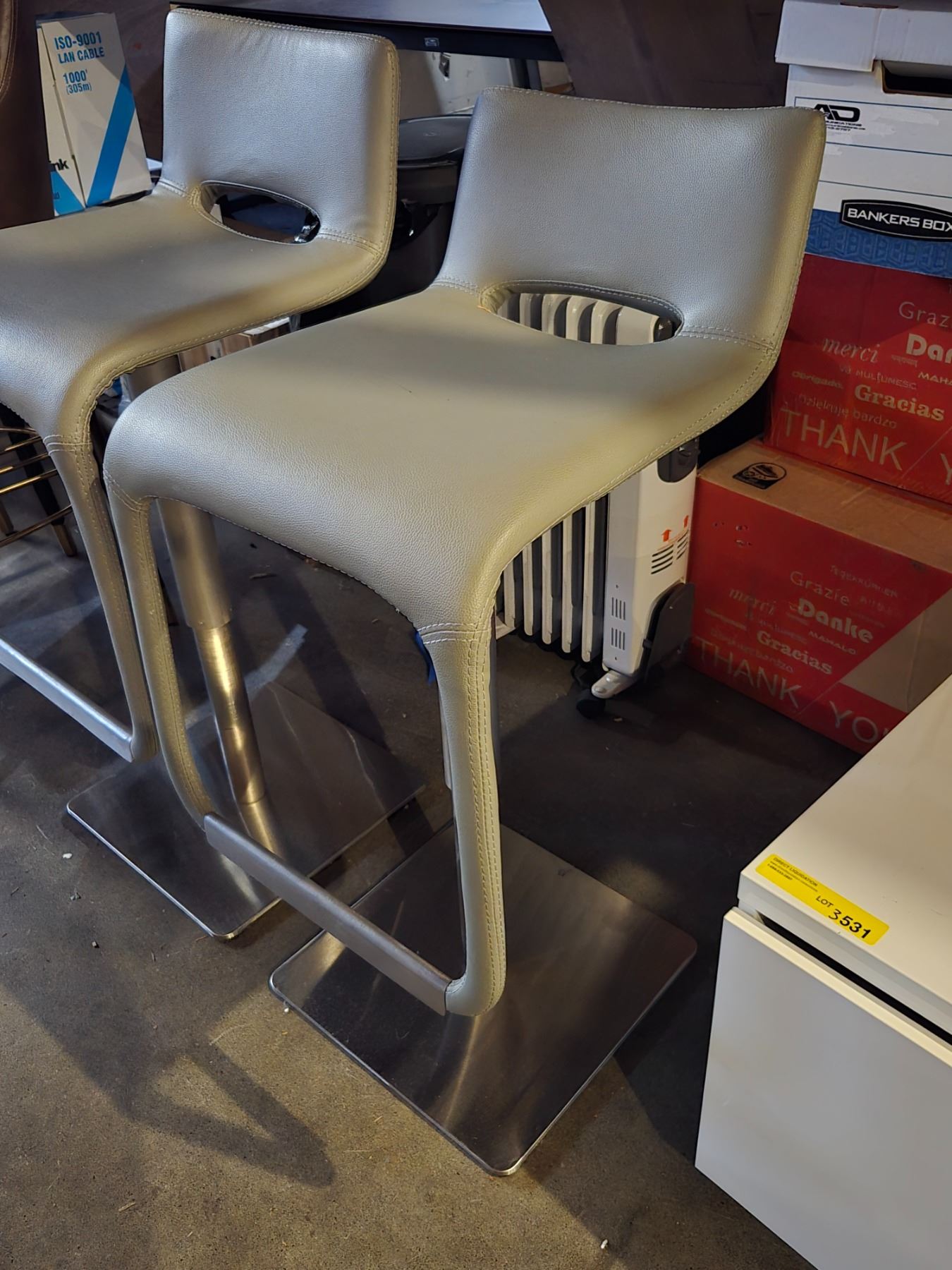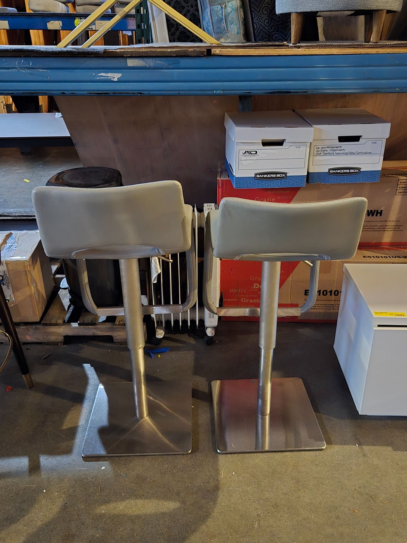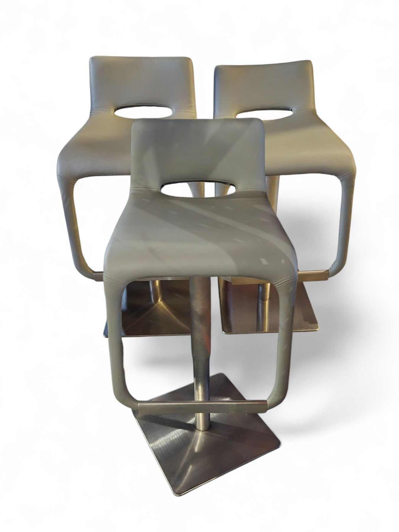 3 pc - Grey Leather Adjustable Height Swivel Bar Stools