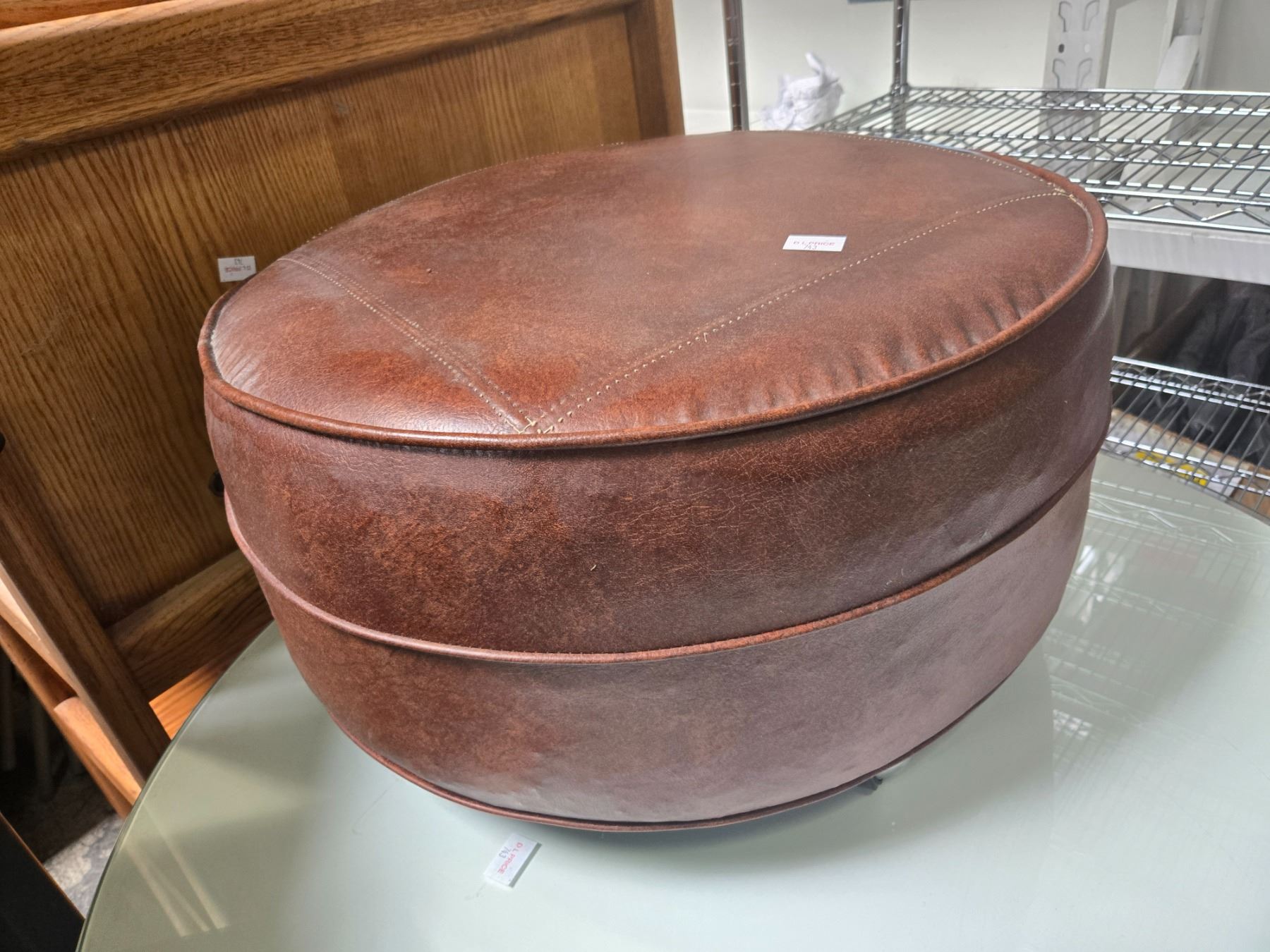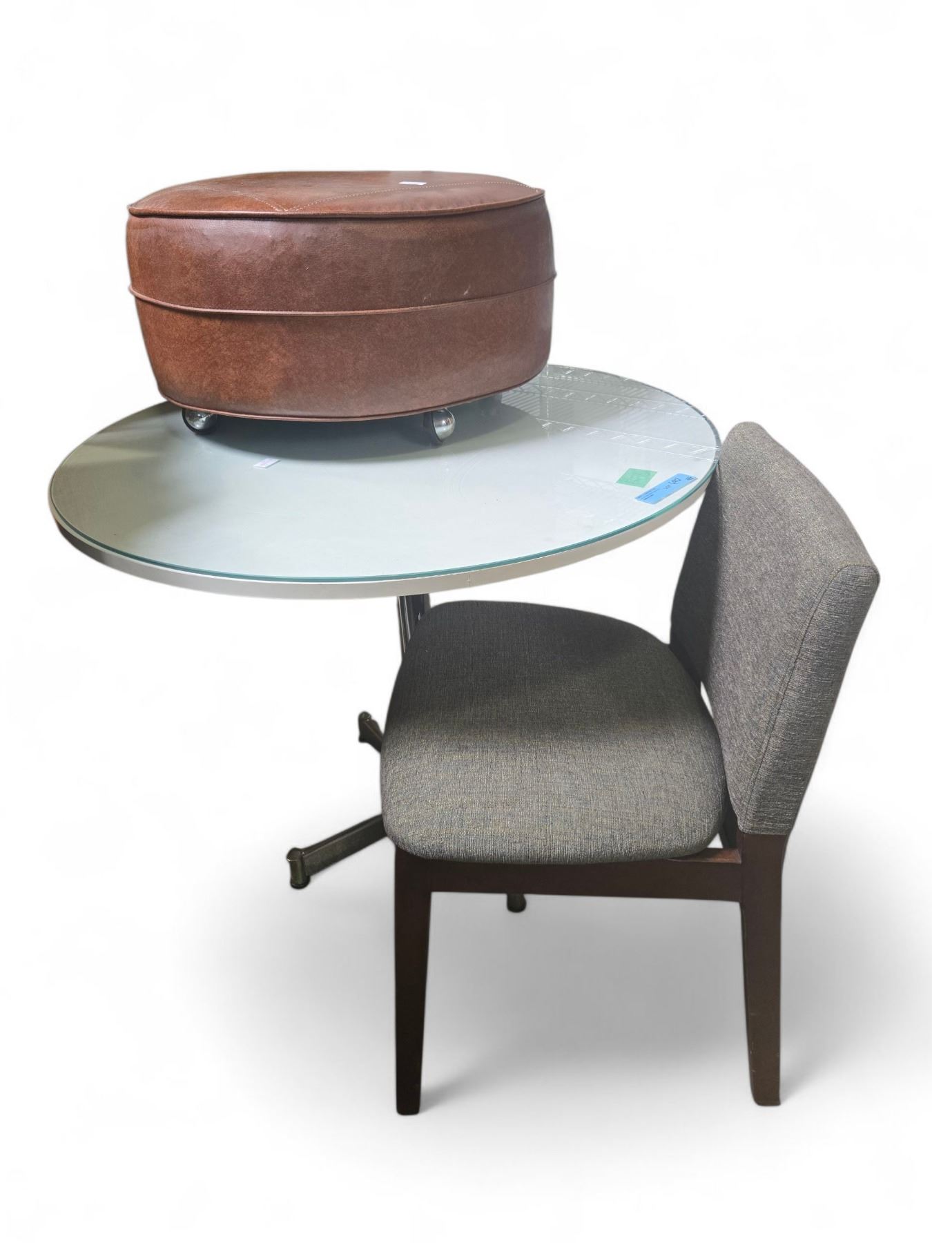 3-pcs Furniture Lot - includes a Moe's Grey Dining Chair/Round Leather Ottoman & Round Glass Modern Table