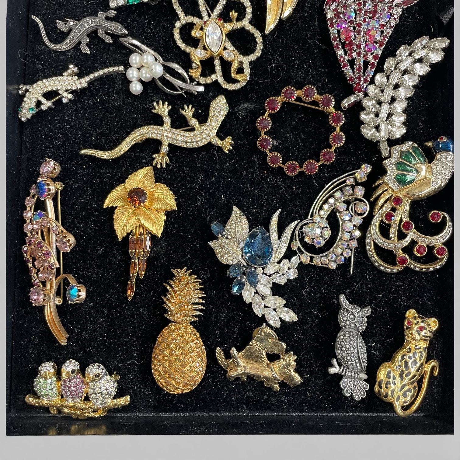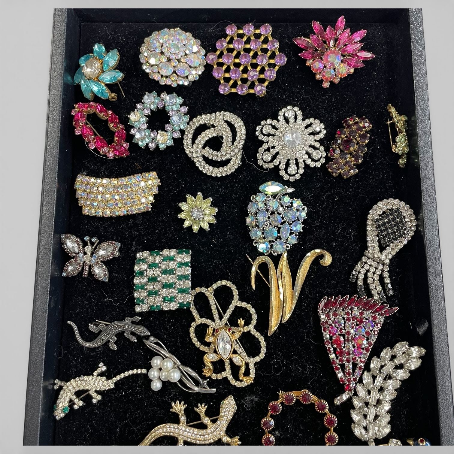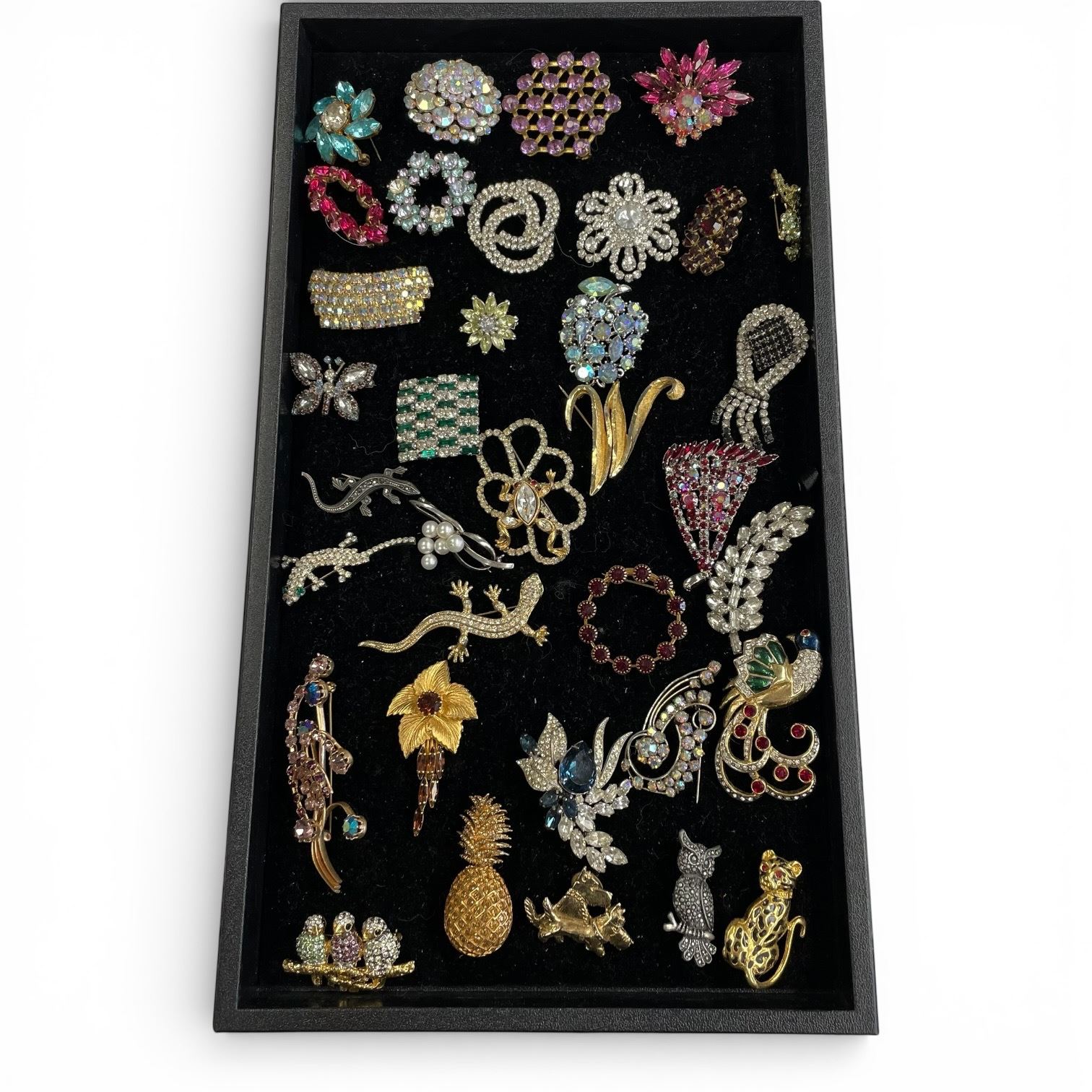 30 Vintage Brooches * Wide Variety of Materials * Display tray not included