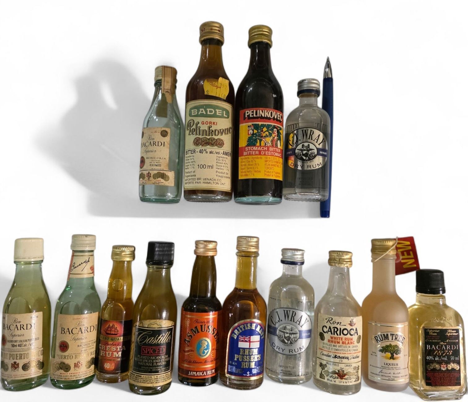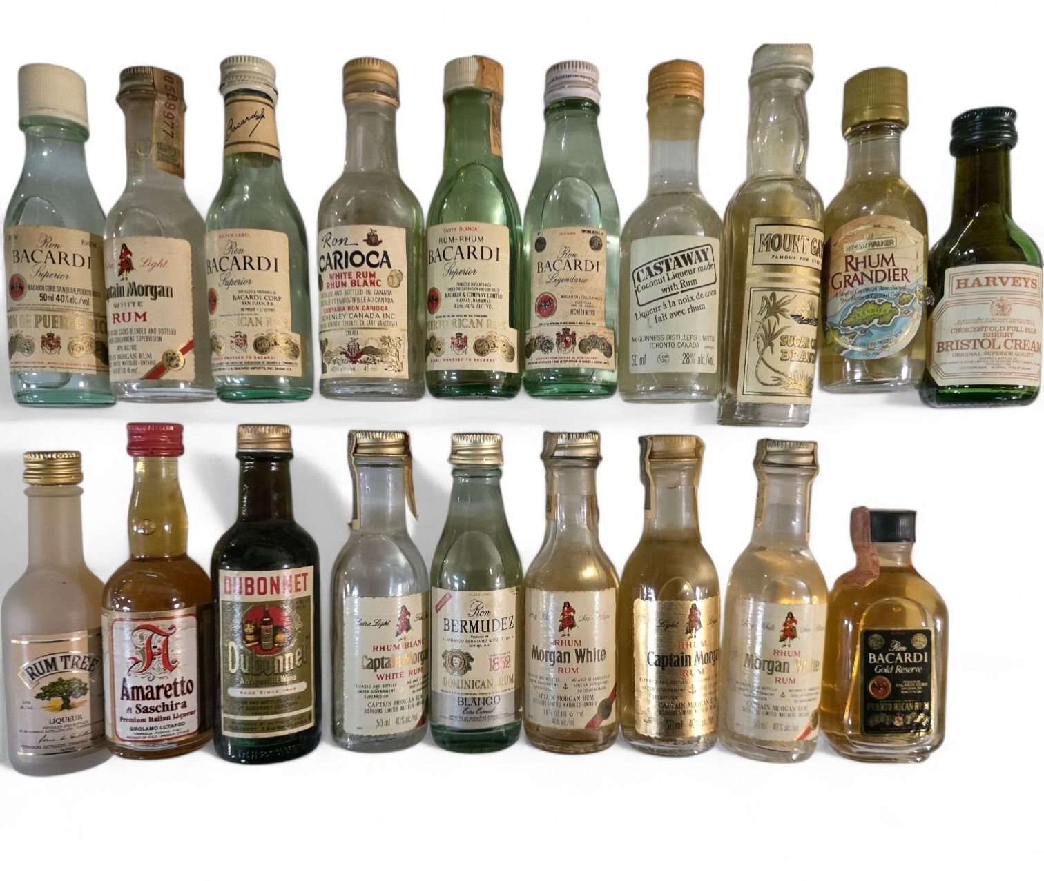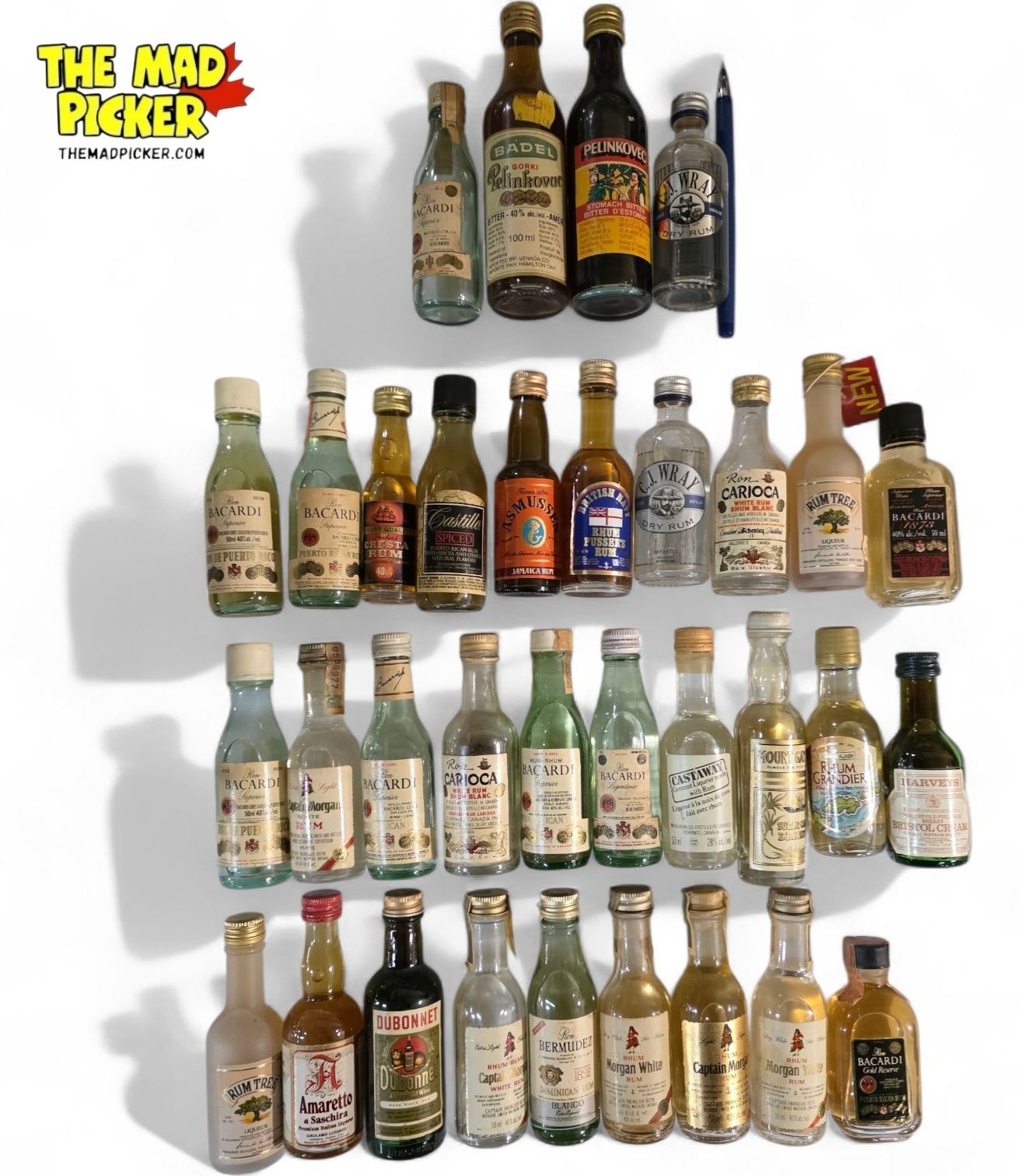 32 Miniature Empty Liquor Bottles - Featuring Brands Such as Bacardi, Captain Morgan, and Amaretto