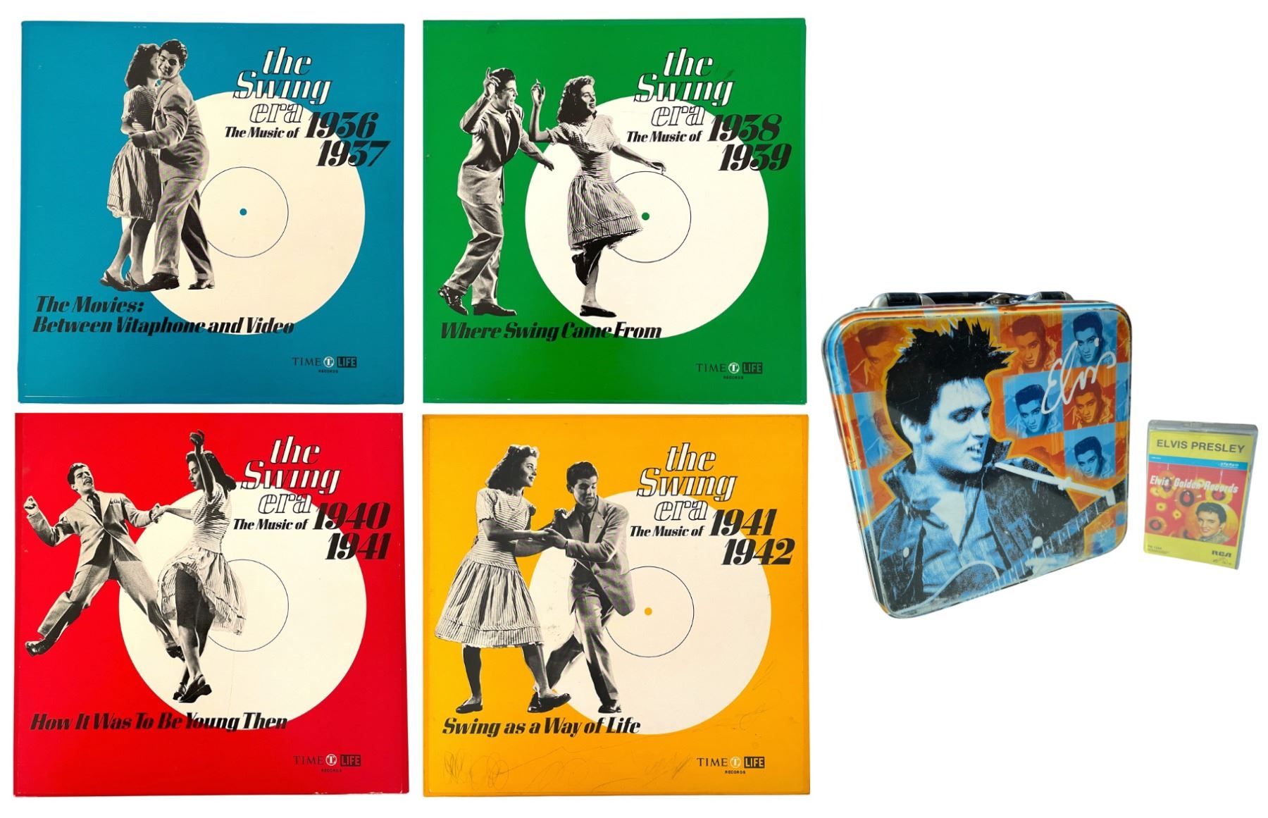 4-Album Set: The Swing Era - The Music of 1936-37, 1938-39, 1940-41, 1941-42 and Elvis Presley Tin Lunchbox & Records Tape