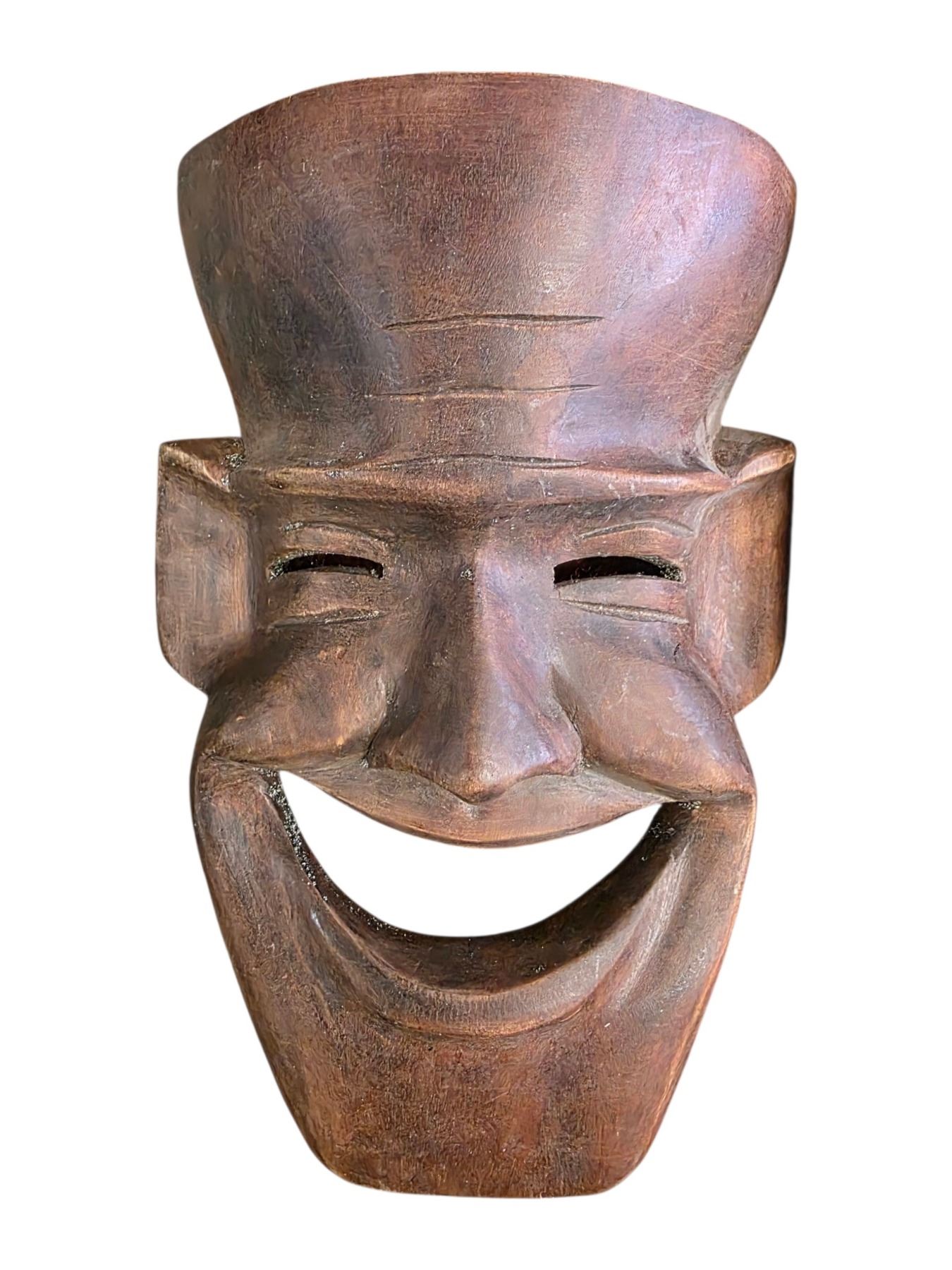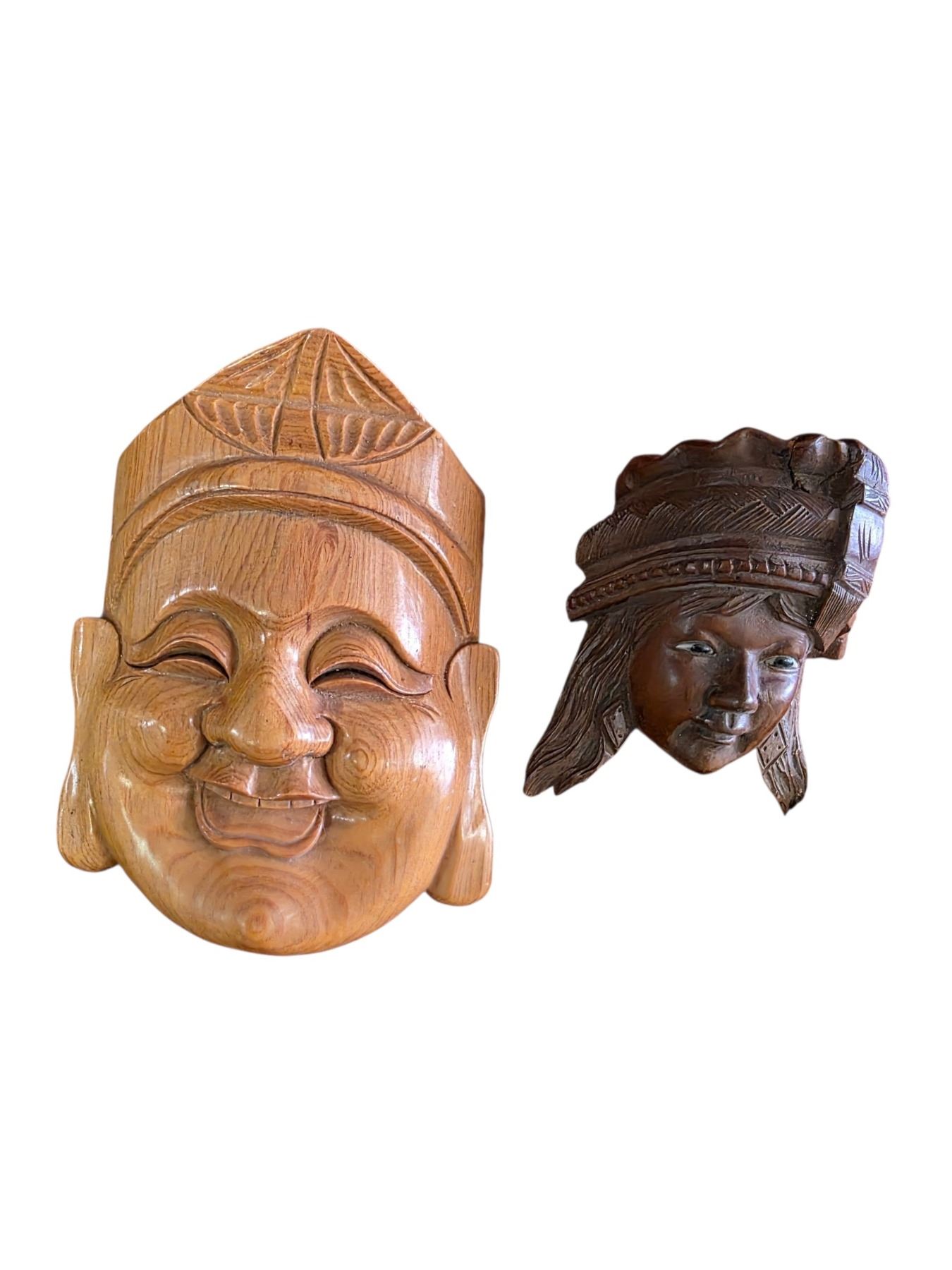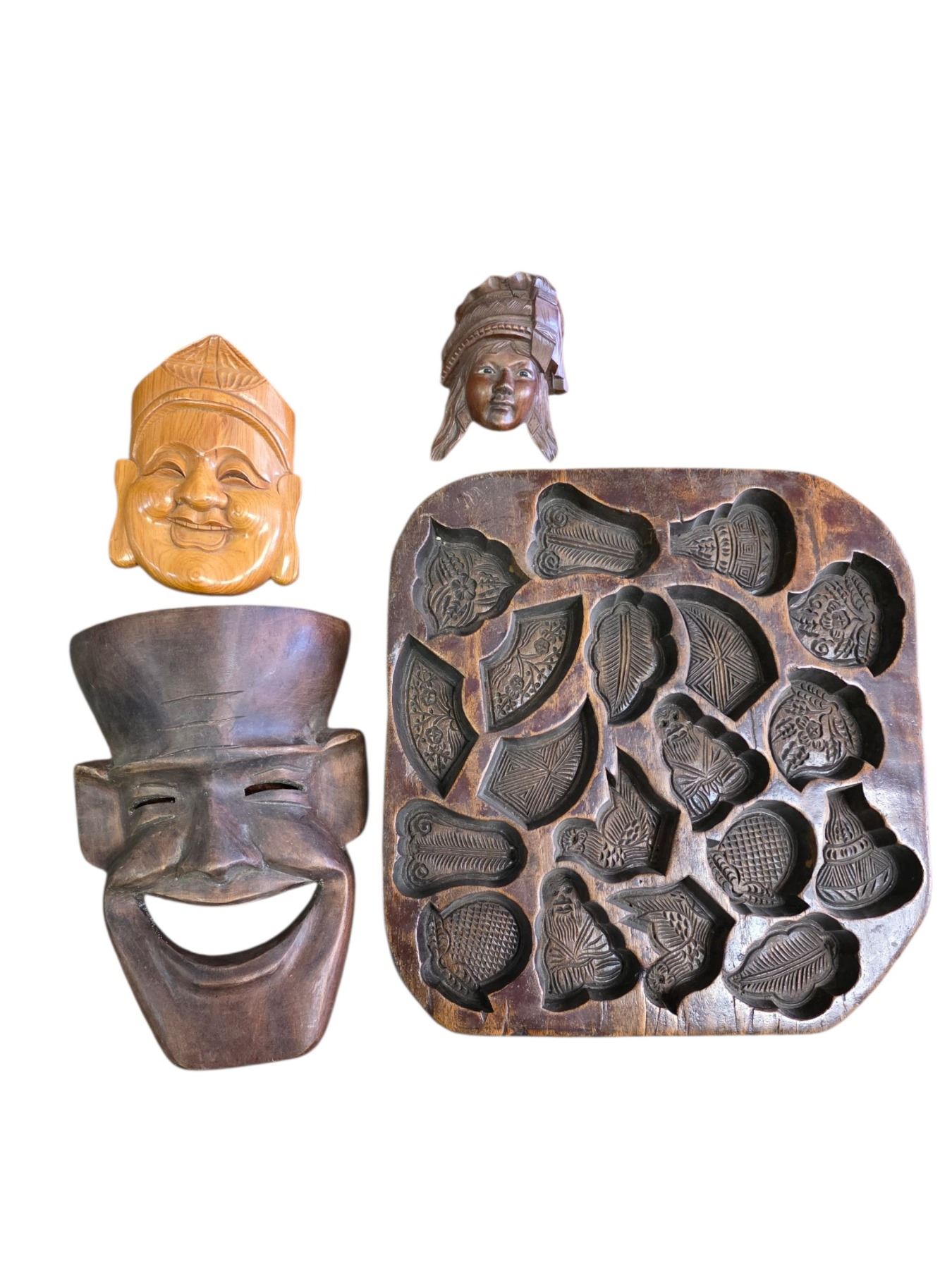 4 Carved Wooden Masks, Tallest H10.5" & Mold 12.5" x 13"