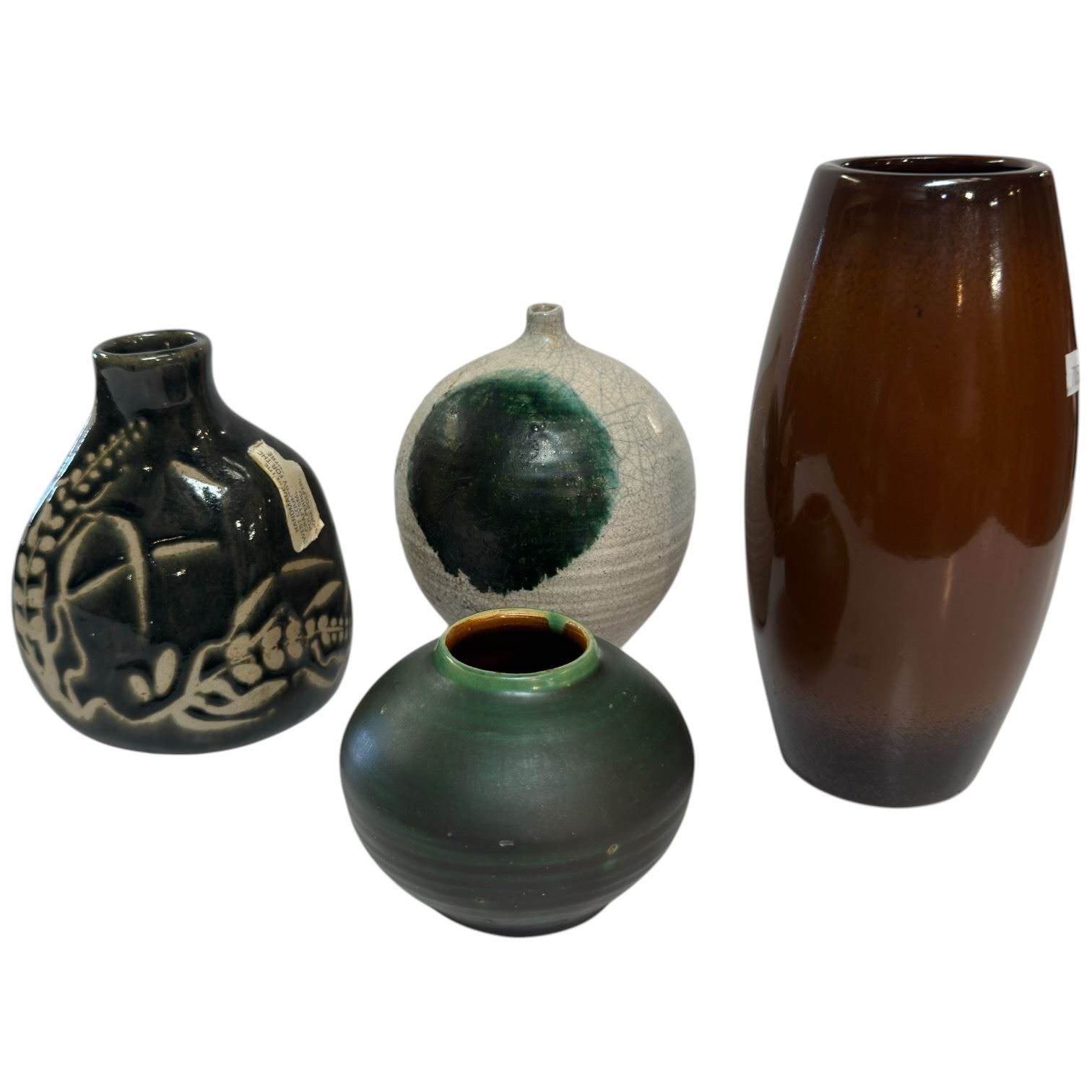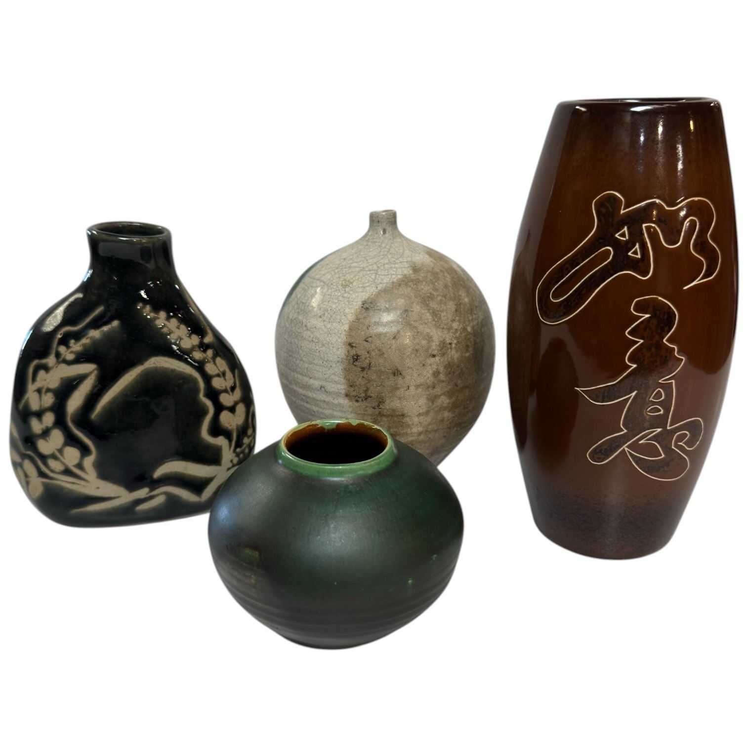 4 Glazed Ceramic & Art Pottery Vases (Largest is 8" tall x 4" diameter)