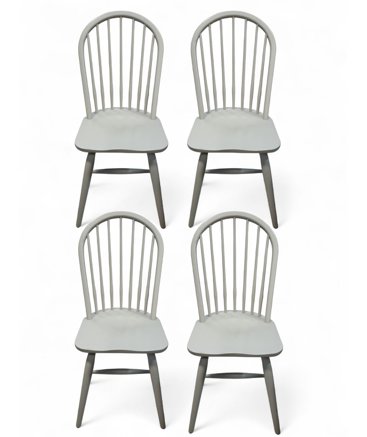 4 Grey Windsor-Style Spindle Back Dining Chairs