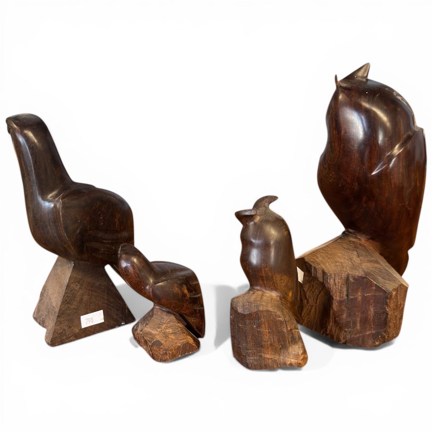 4 Ironwood Owl & Eagle Carvings * Largest is 4" x 6" x 9" tall
