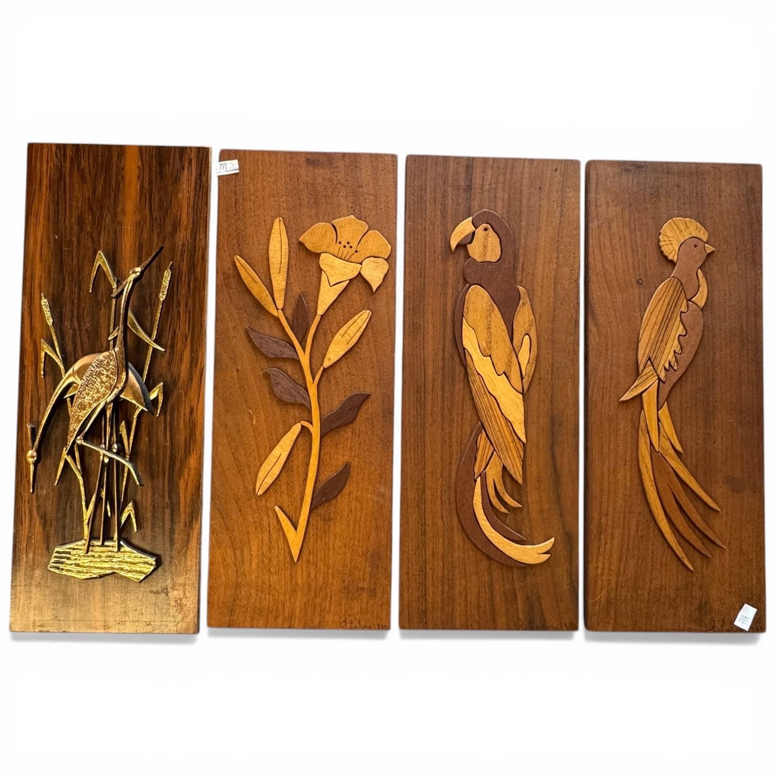 4 Mid-Century Wall Plaques * One will applied metal cranes *(Each wall plaque is: 6" x 16")