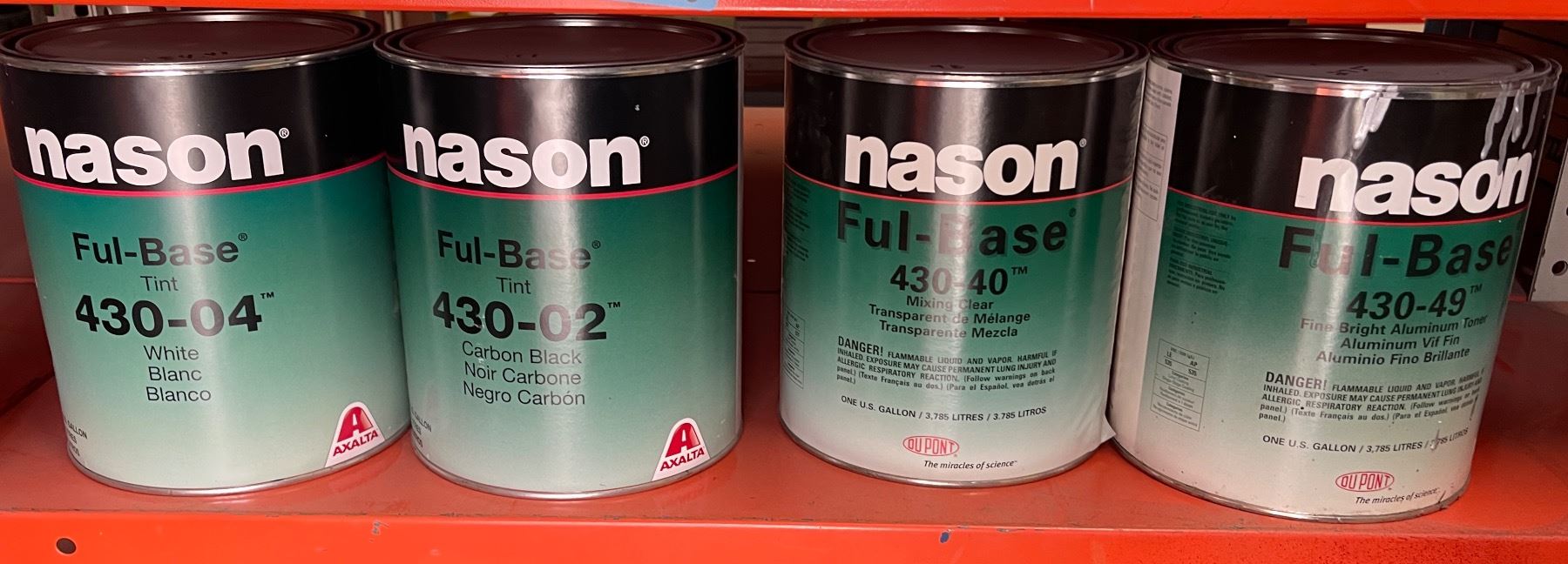 4 Nason 1 Gallon 2 x Ful_base Tint, 1 x Mixing Clear, ! x Fine Bright Aluminum Toner