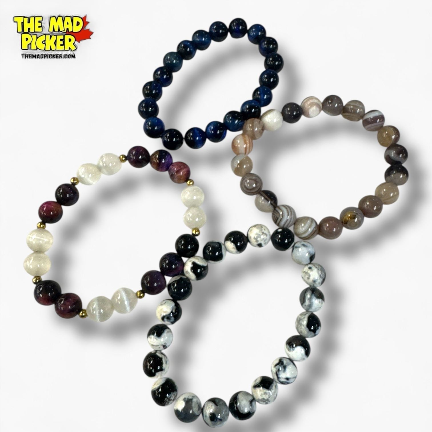 4 Natural Polished Gemstone & Glass Bead Bracelets (10 mm beads)