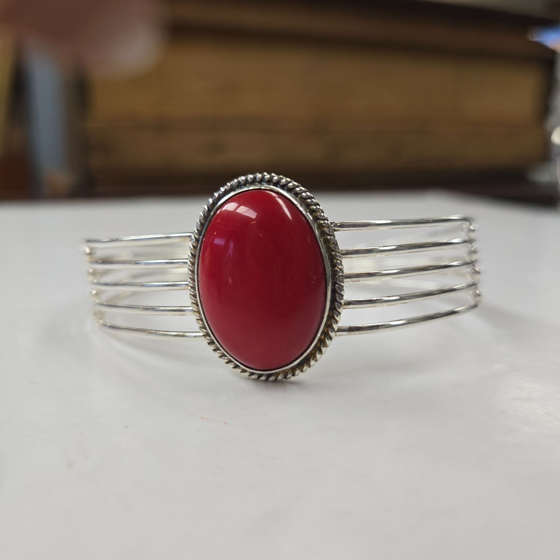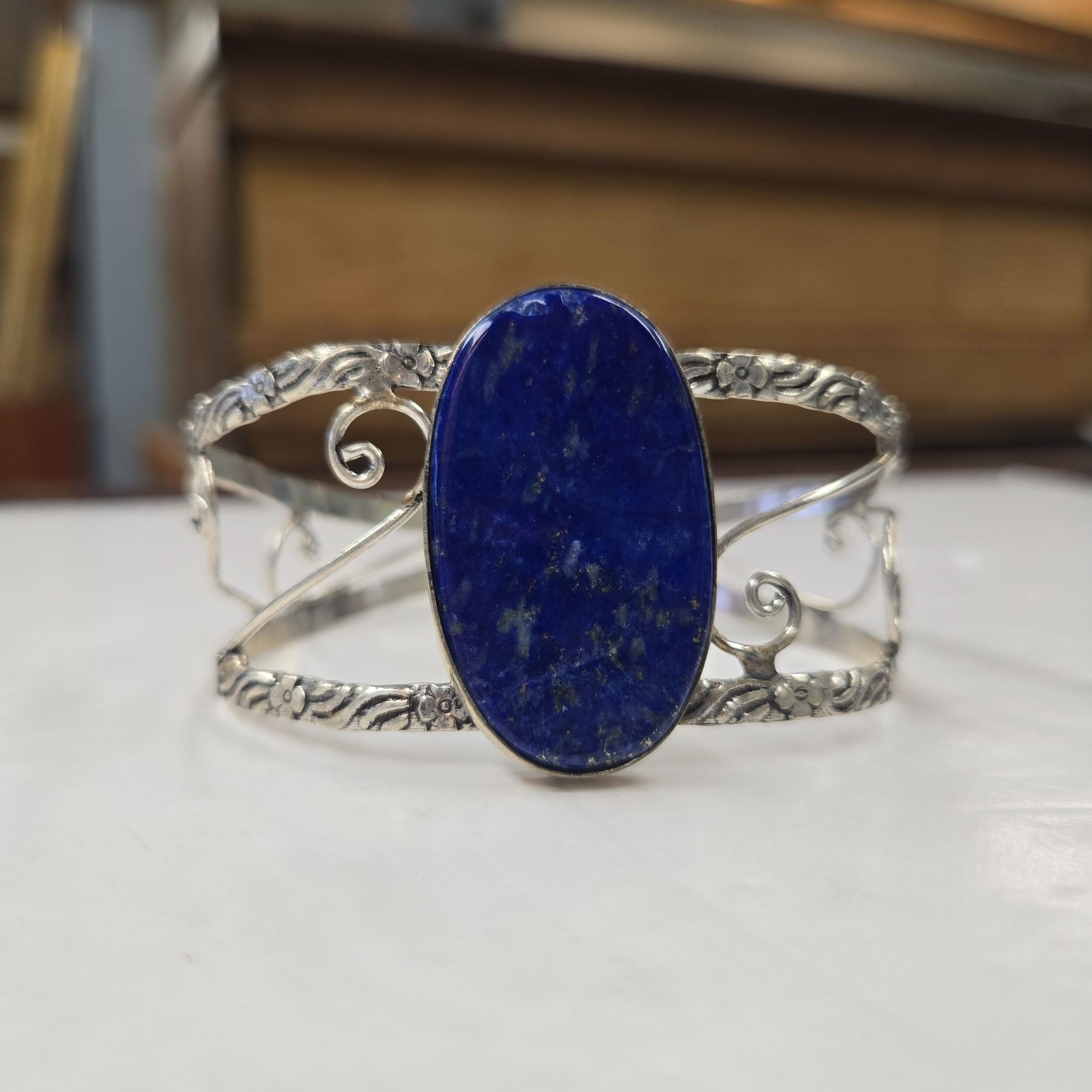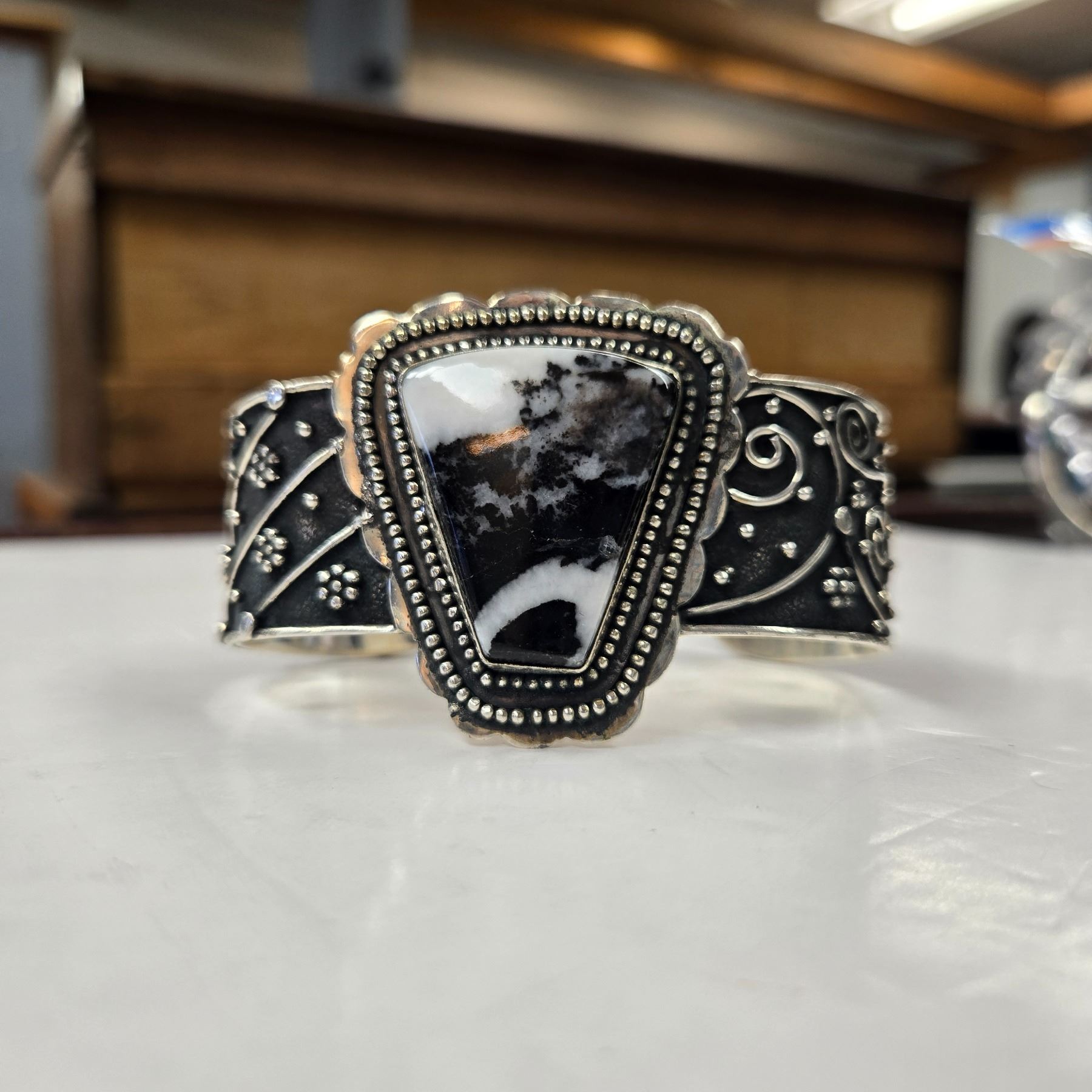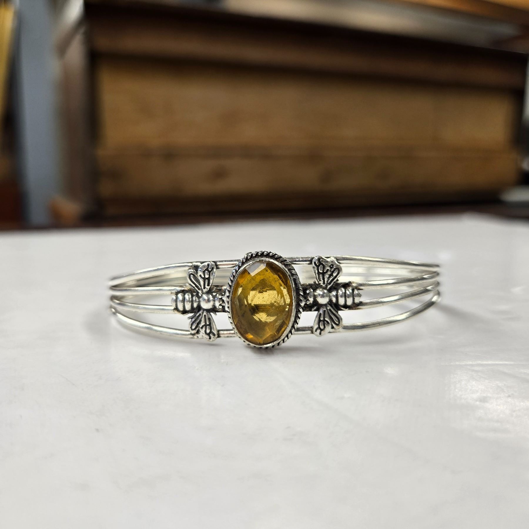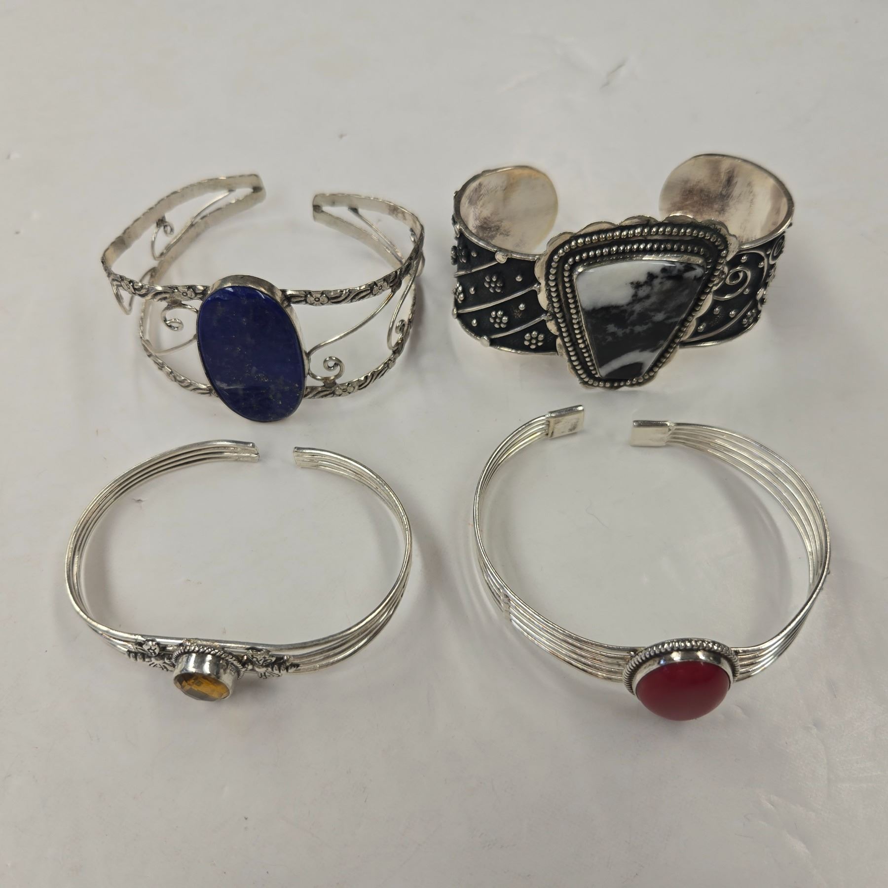 4 New Silver-Tone Cuff Bracelets with Natural Stones (White Buffalo Turquoise, Red Jasper, Citrine and Lapis)