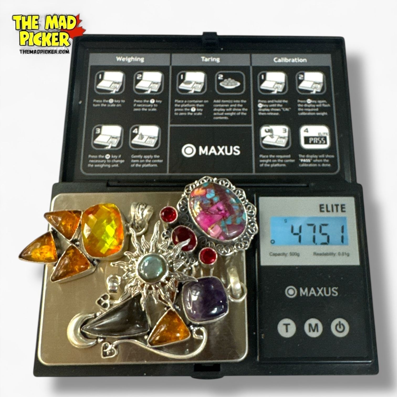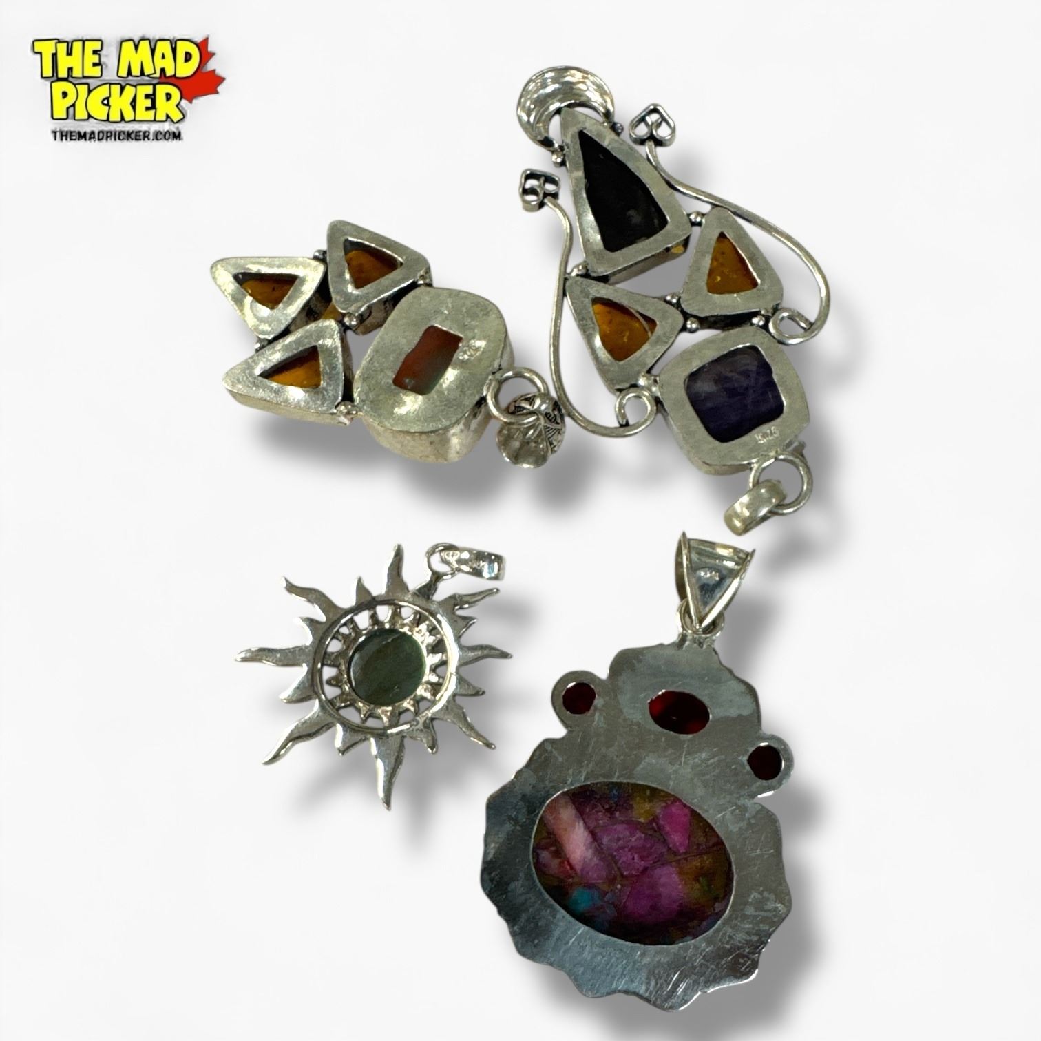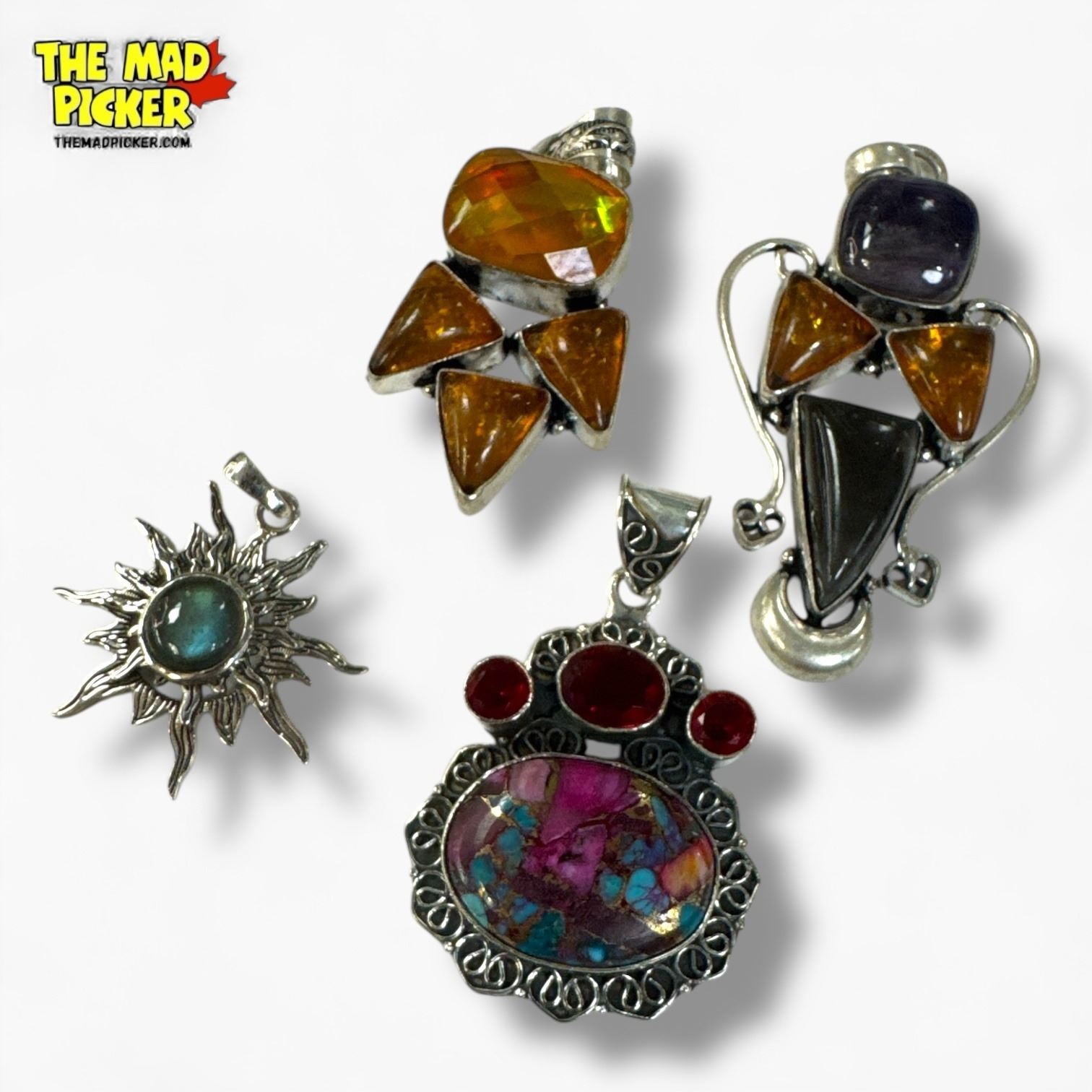 4 New Sterling Silver & Gemstone Pendants - Total Weight: 44.8 grams