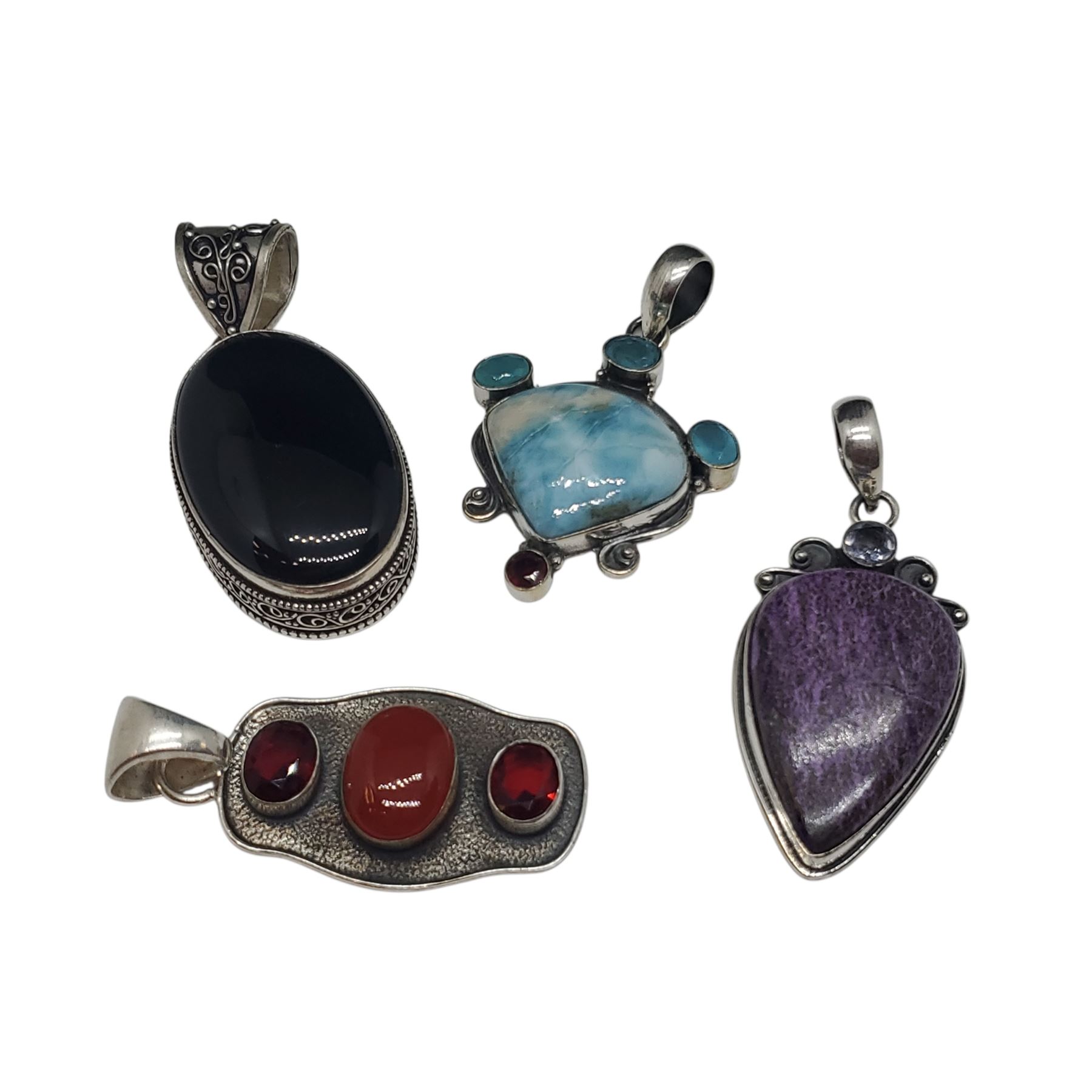 4 New Sterling Silver & Gemstone Pendants - Total Weight: 64.3 grams