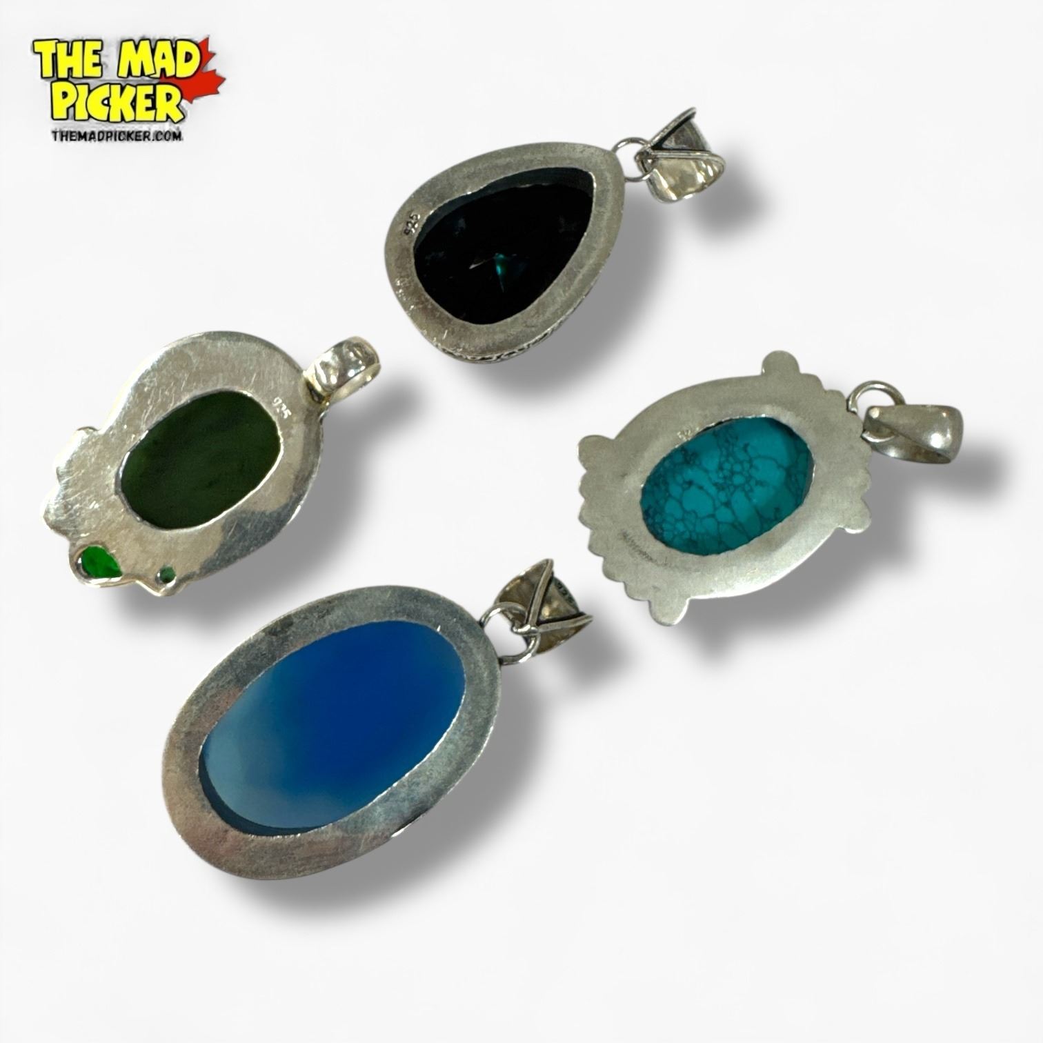 4 New Sterling Silver & Gemstone Pendants - Total Weight: 65.7 grams
