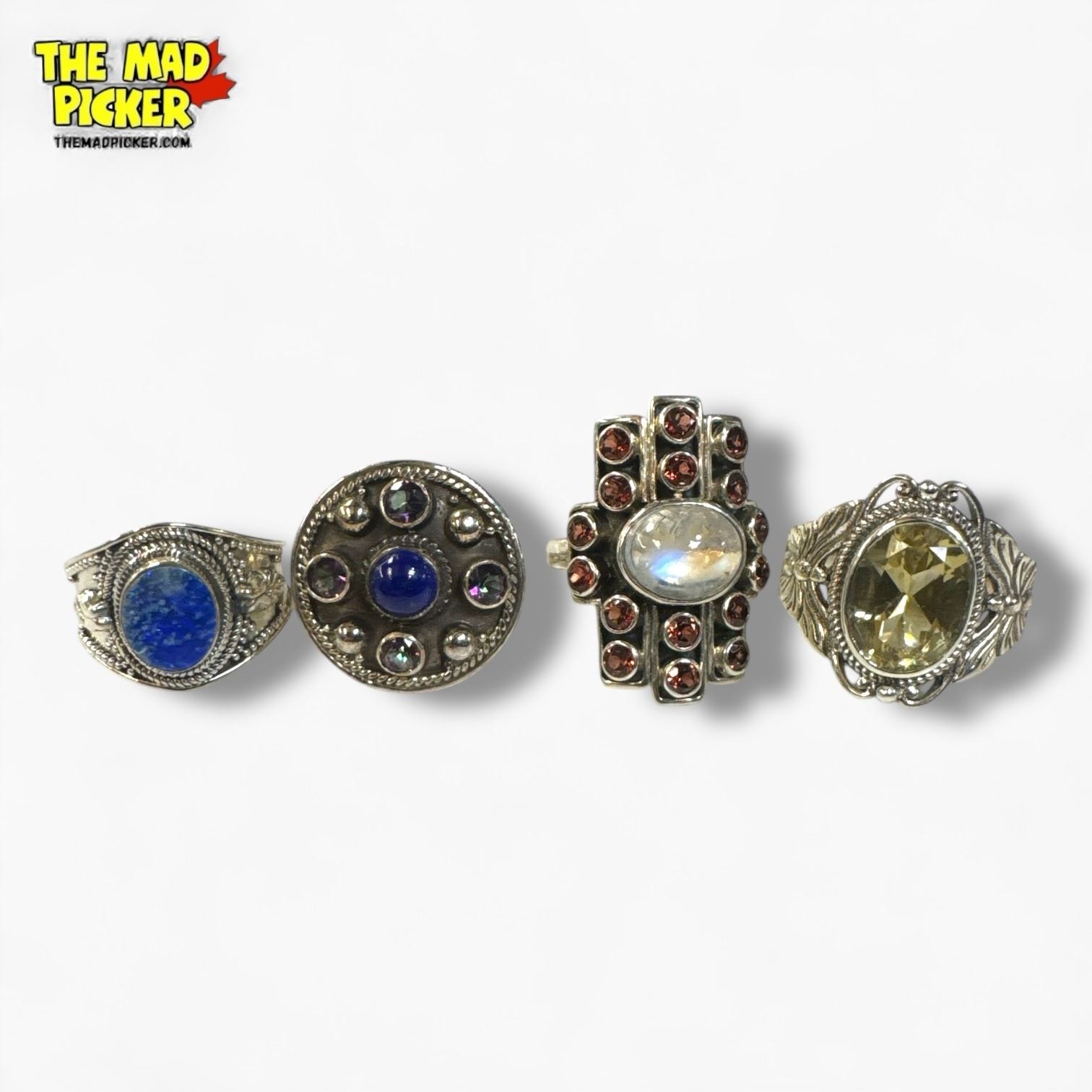 4 New Sterling Silver Gemstone Rings - Total weight: 28.4 grams