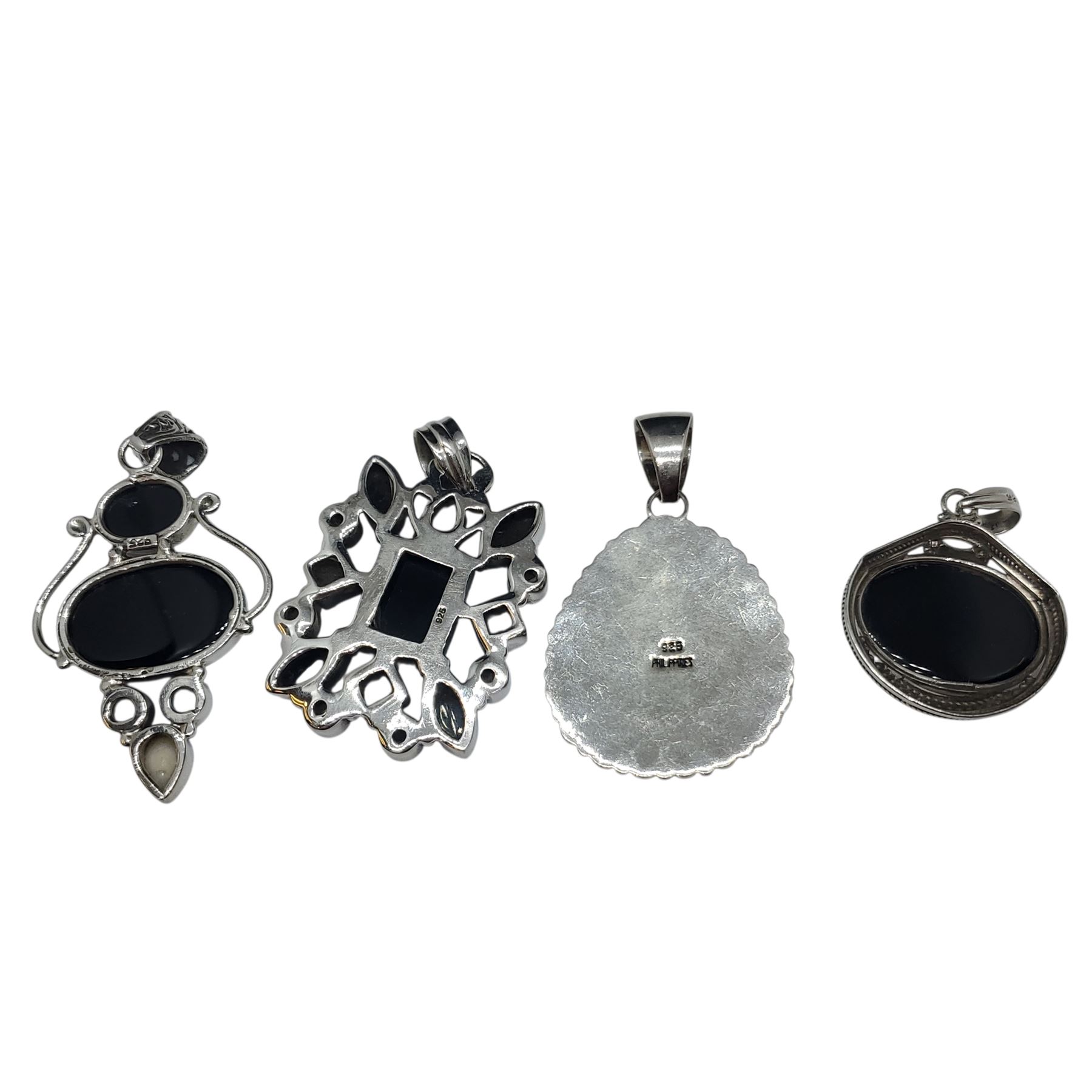 4 New Sterling Silver Onyx & Gemstone Pendants - Total Weight: 59 grams