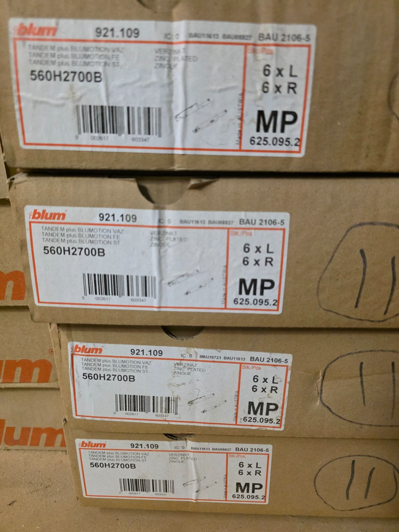 4 PC - Blum "Blu-Motion" soft close undermount drawer slides - 11" - x41 Pair - Wholesale Value: $1,230