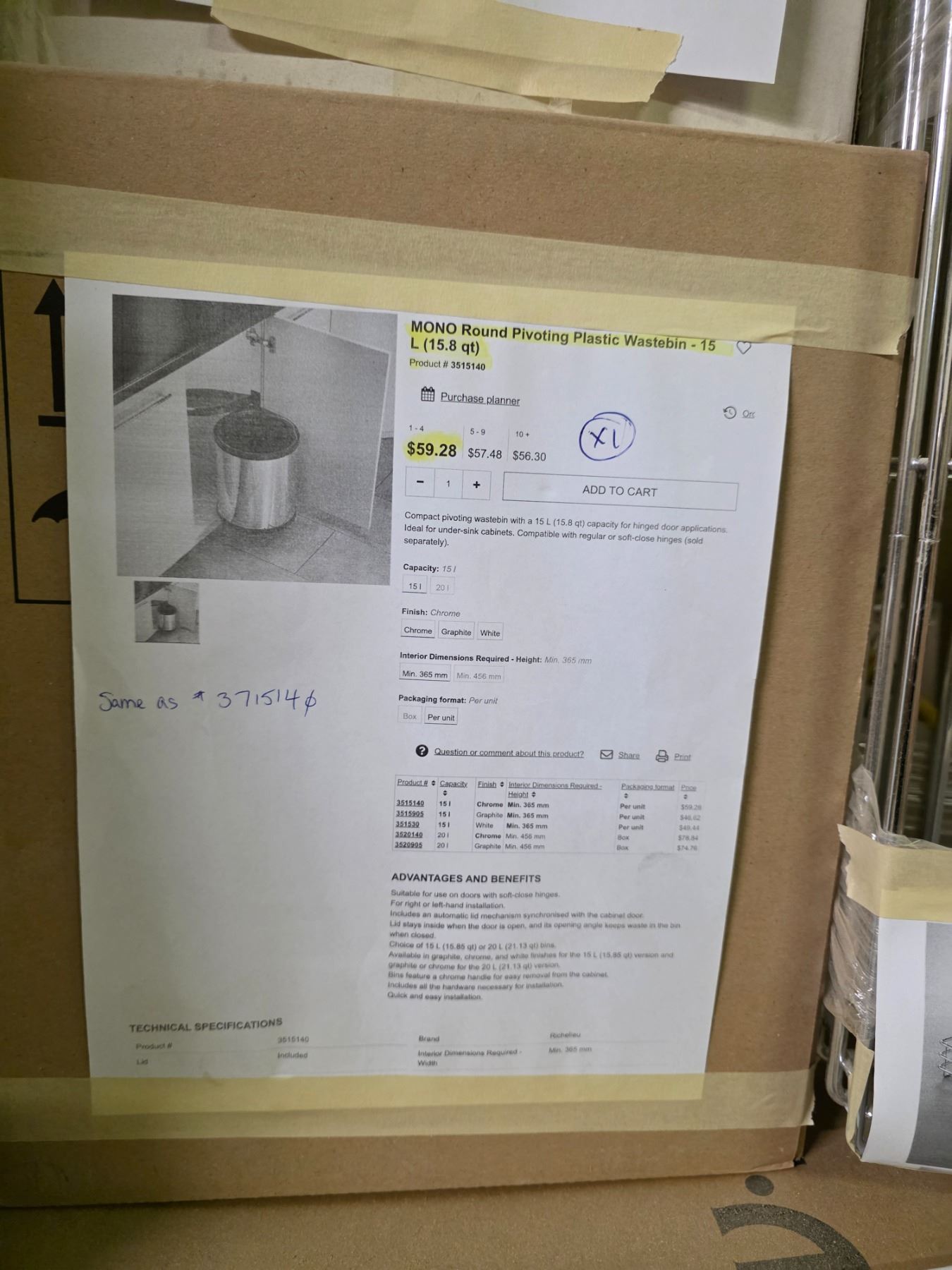 4 Pc - (3) MONO Round pivoting garbage bin (15.8 qt.) & Standard thick wave basket - Wholesale Value: 300