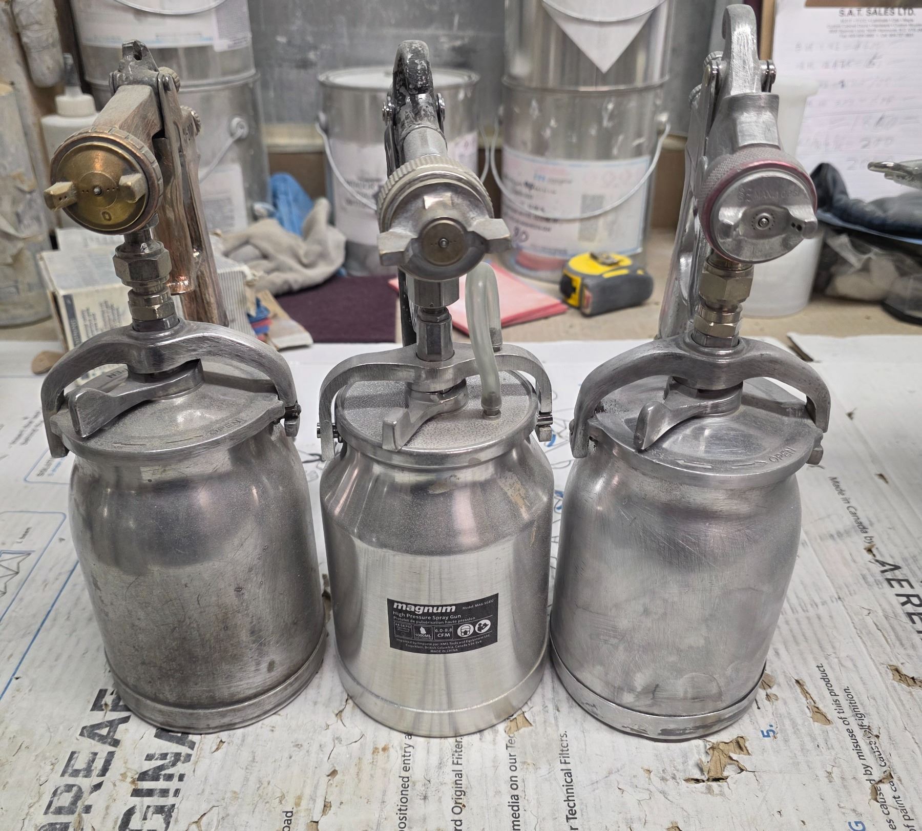 4 Pc - Group of pneumatic spray guns & gun part