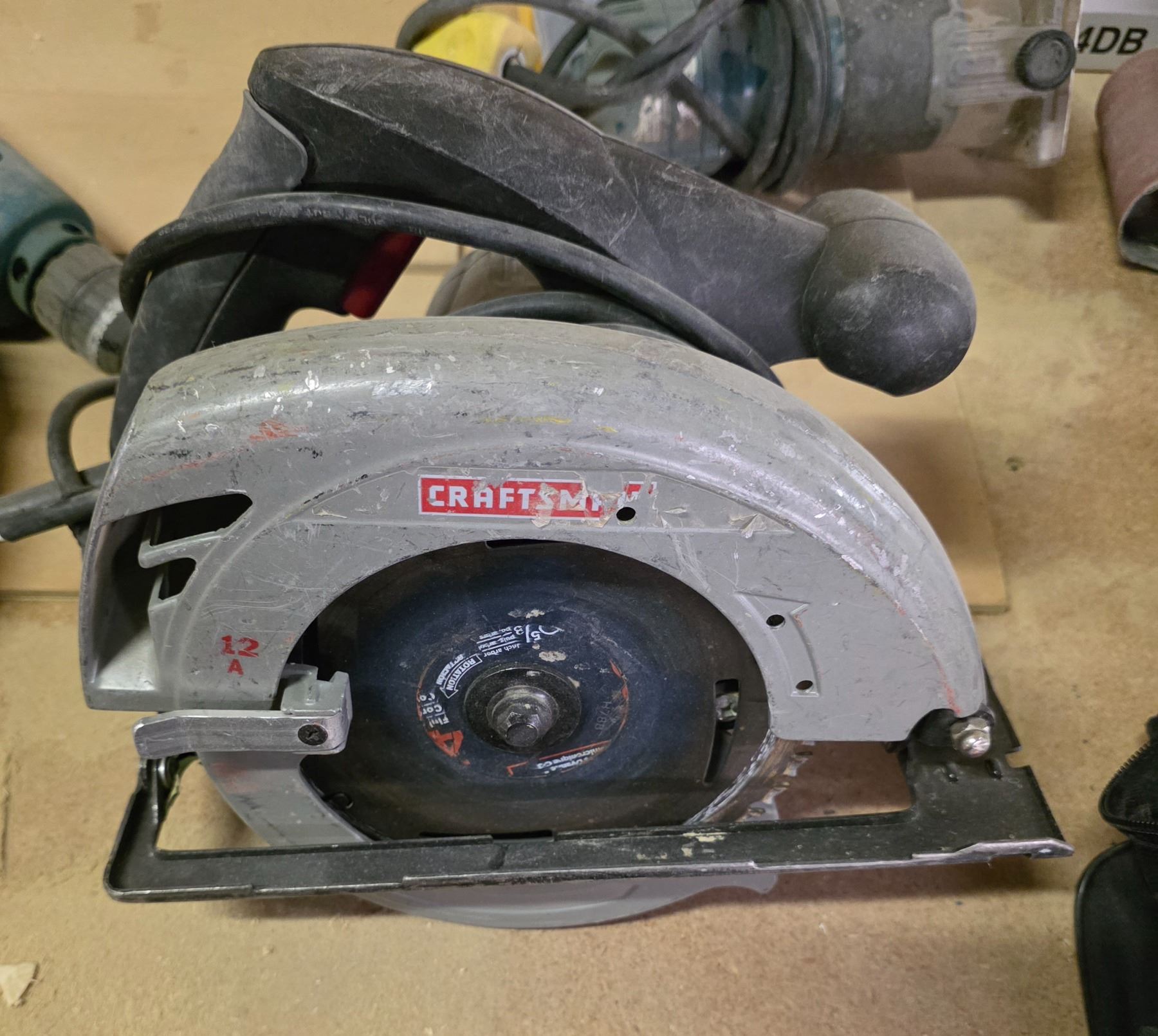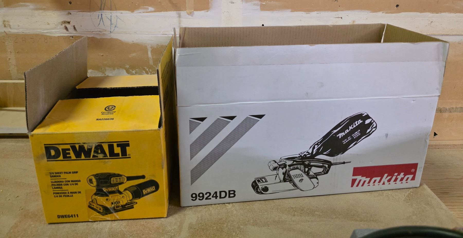 4 Pc - Makita belt sander, DeWalt palm sander (New), Craftsman skill saw, Makita router