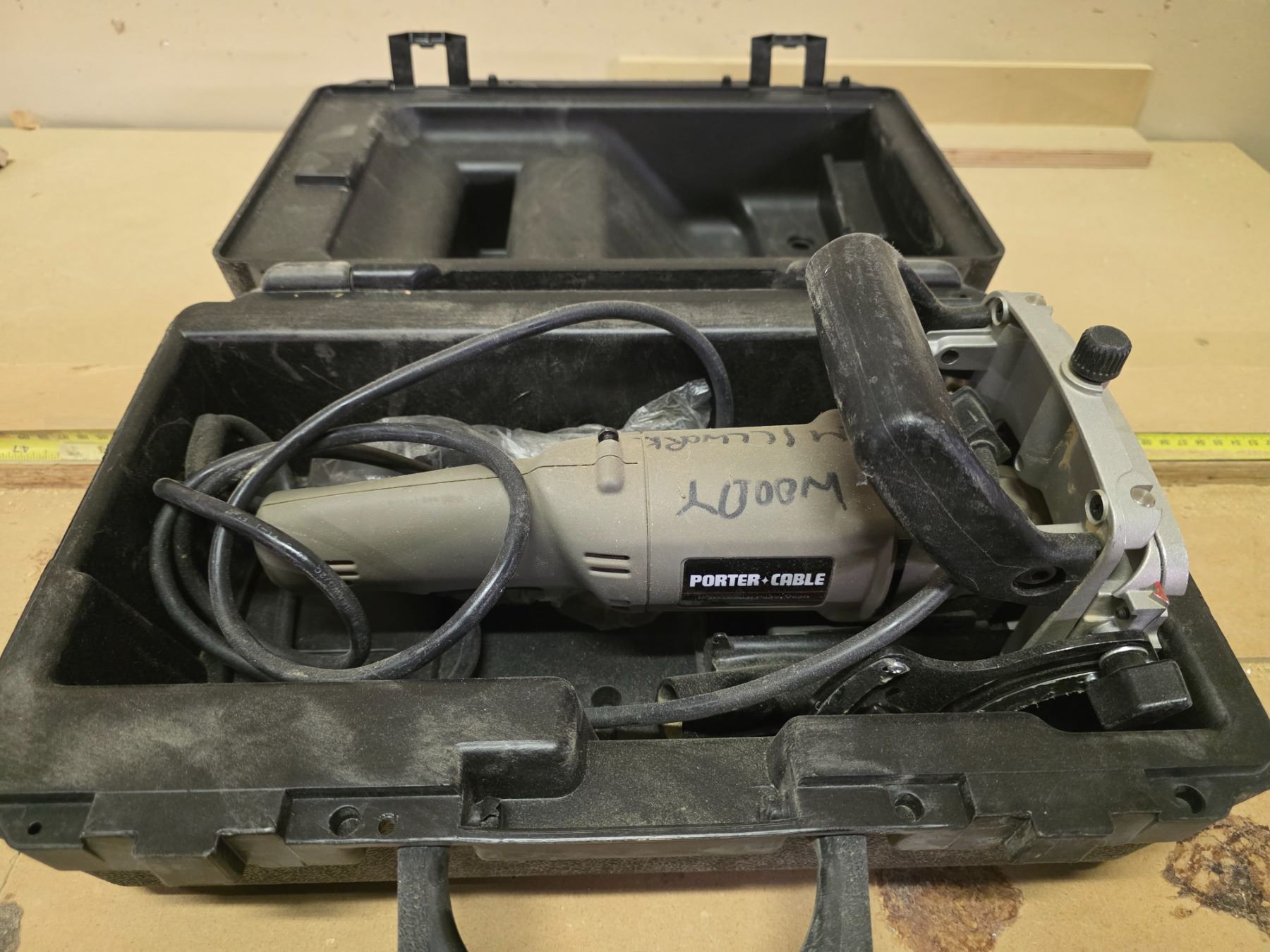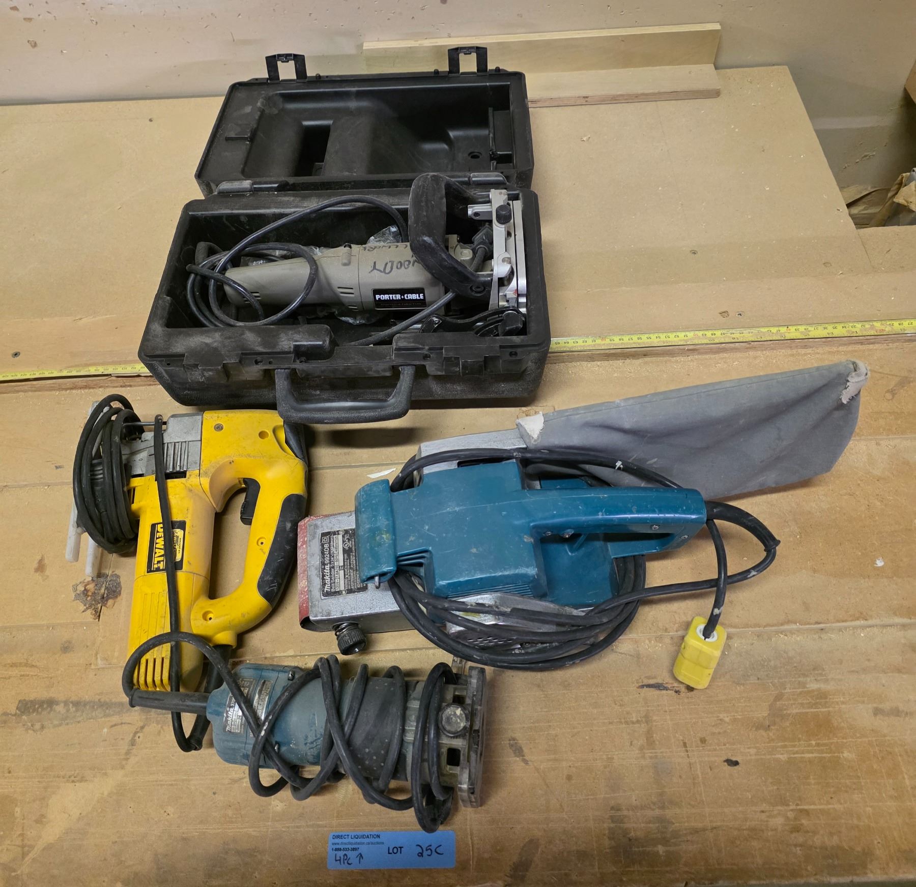 4 Pc - Porter Cable Biscuit jointer, Makita belt sander & router, DeWalt jigsaw