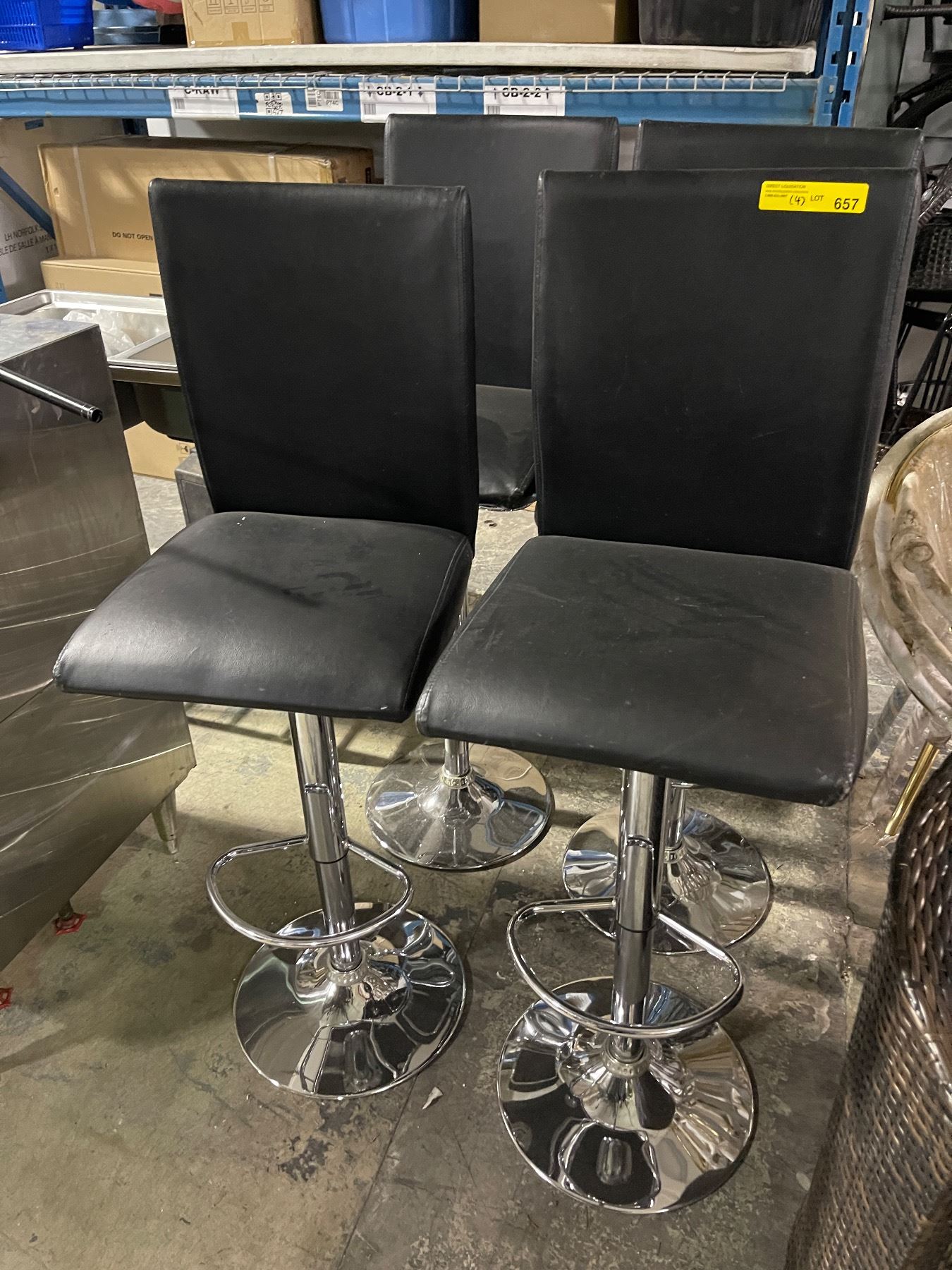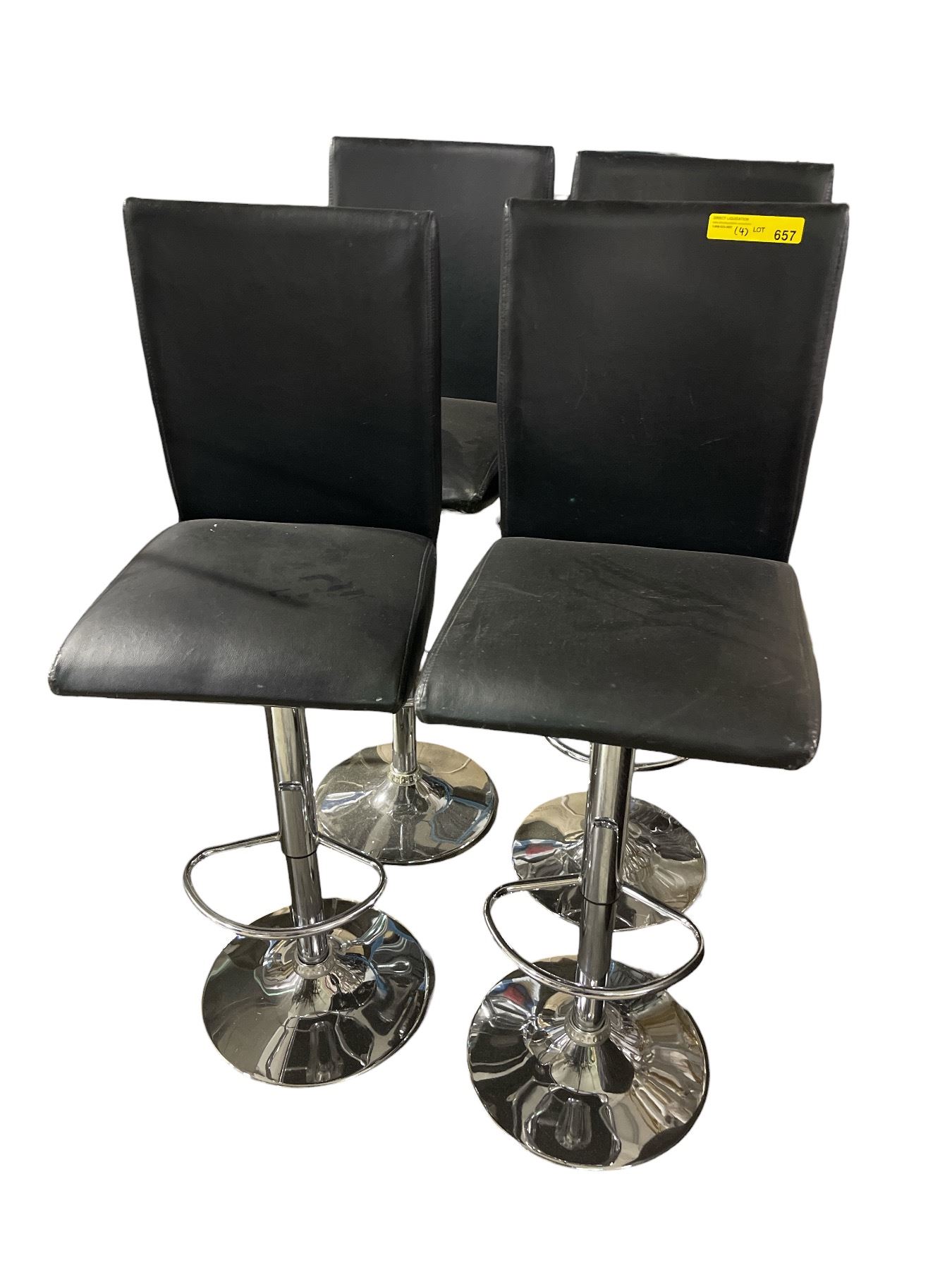 4-Pcs Black Faux Leather Swivel Bar Stools (some wear)