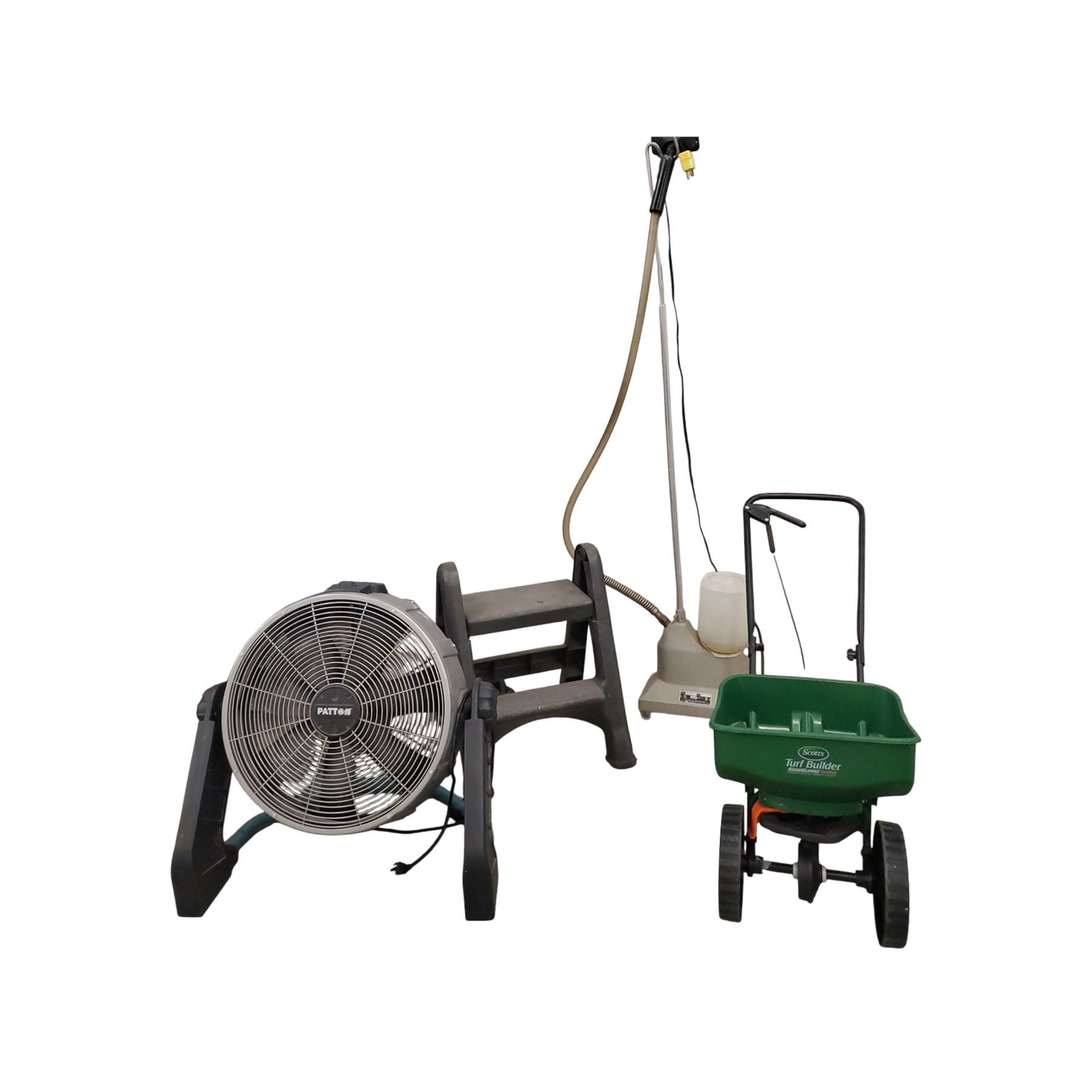 4 Pcs - Scotts Turf Builder EdgeGuard Mini, Patton High Velocity Floor Fan, Jiffy Pro-Line Garment Steamer, Step Stool