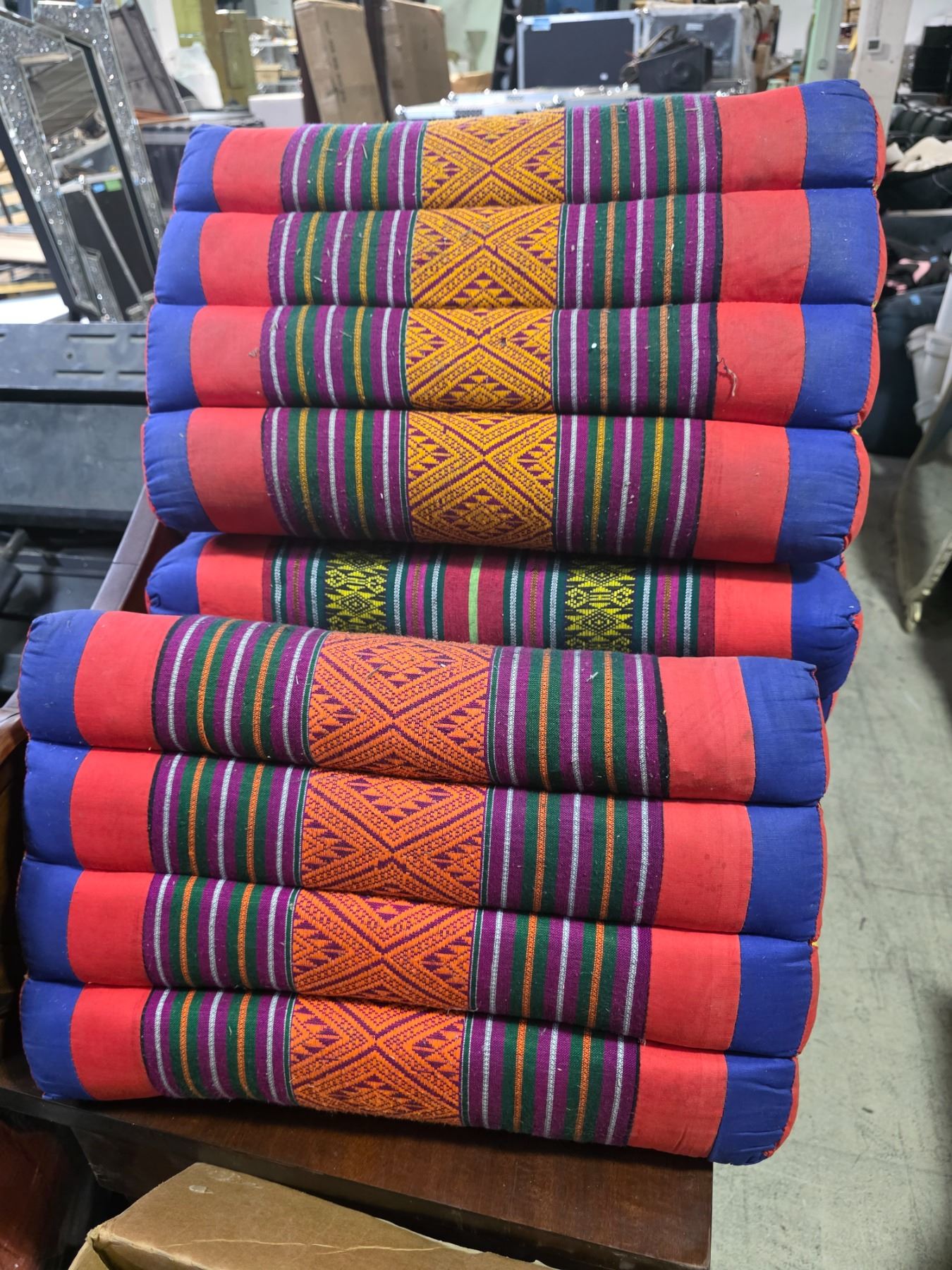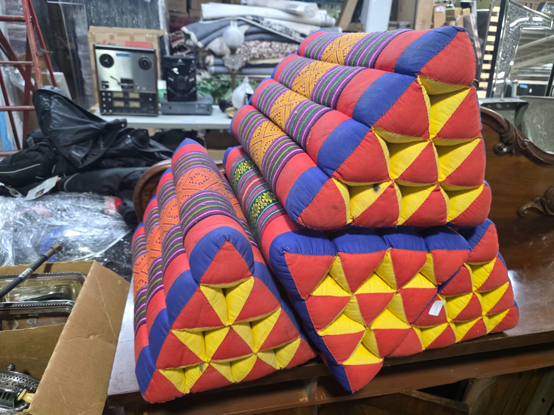 4 Pcs Thai Floor Cushions and Assorted Silverplate Serving Trays
