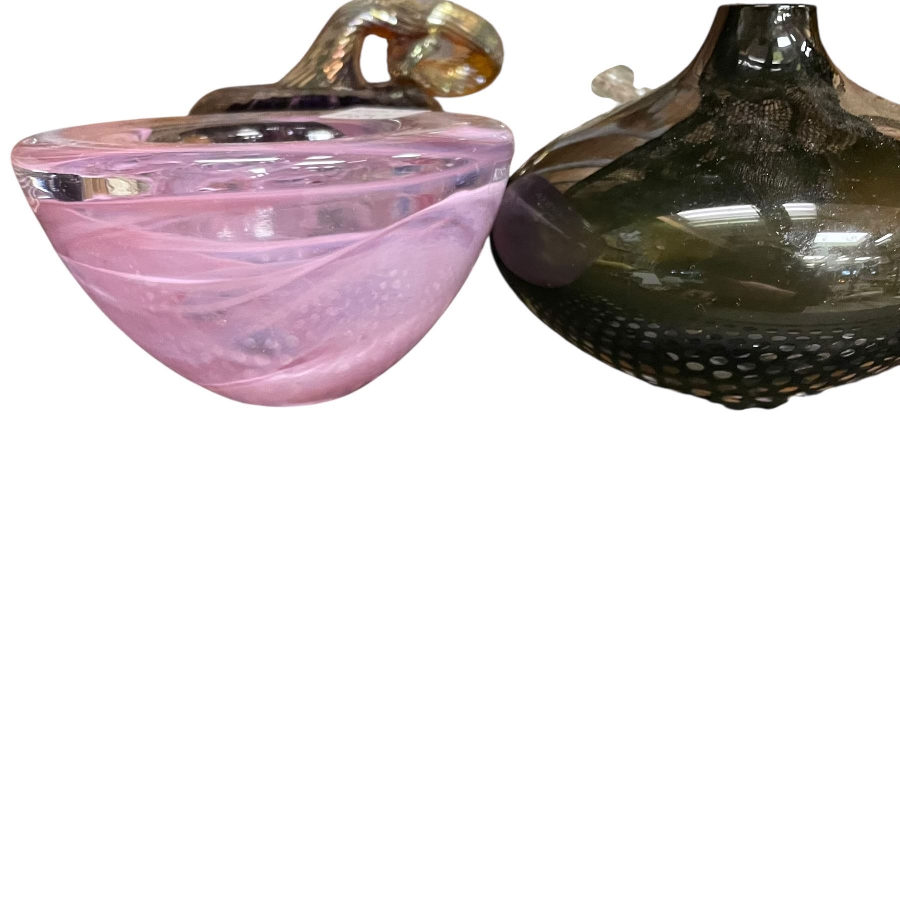 4 Pieces of Art Glass: Vases, Bowl and Ornate Purple Gourd, Tallest Vase is 7.25" Tall