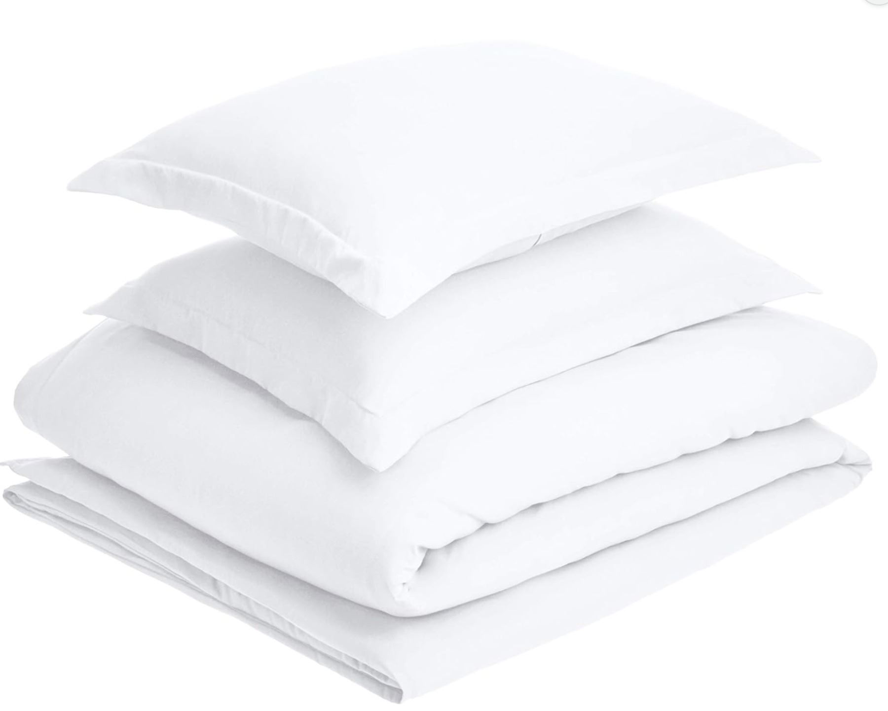 4 Sets - Amazon Basics Lightweight Microfiber 3-Piece Duvet Cover Set Full/Queen - RV: $270 CAD - Bright White