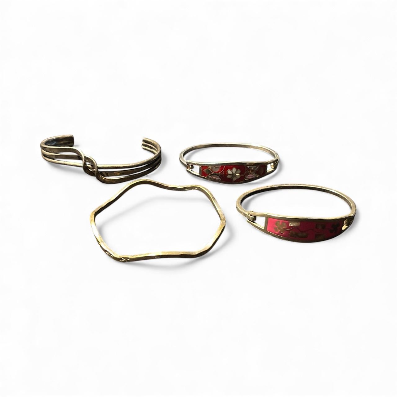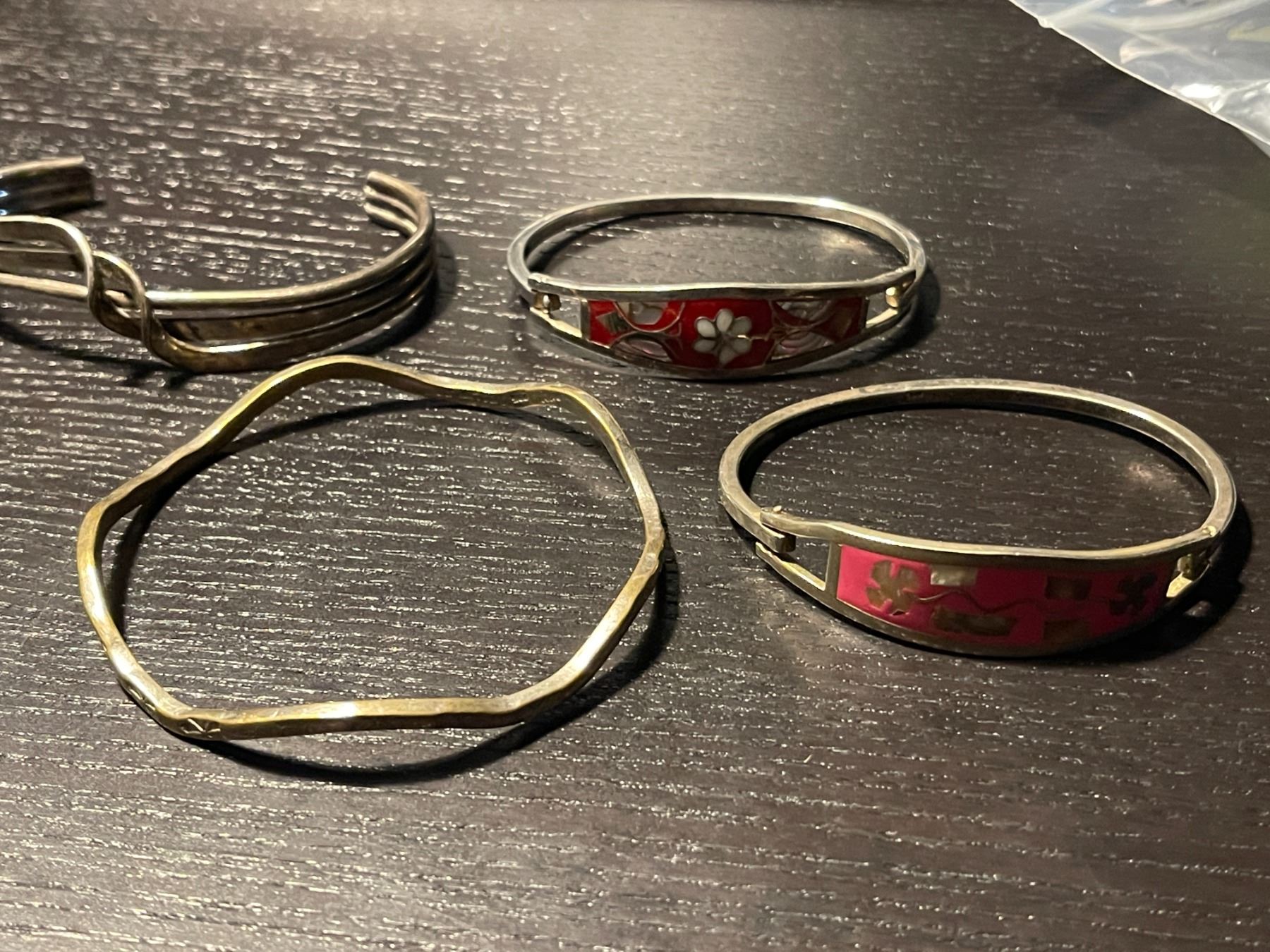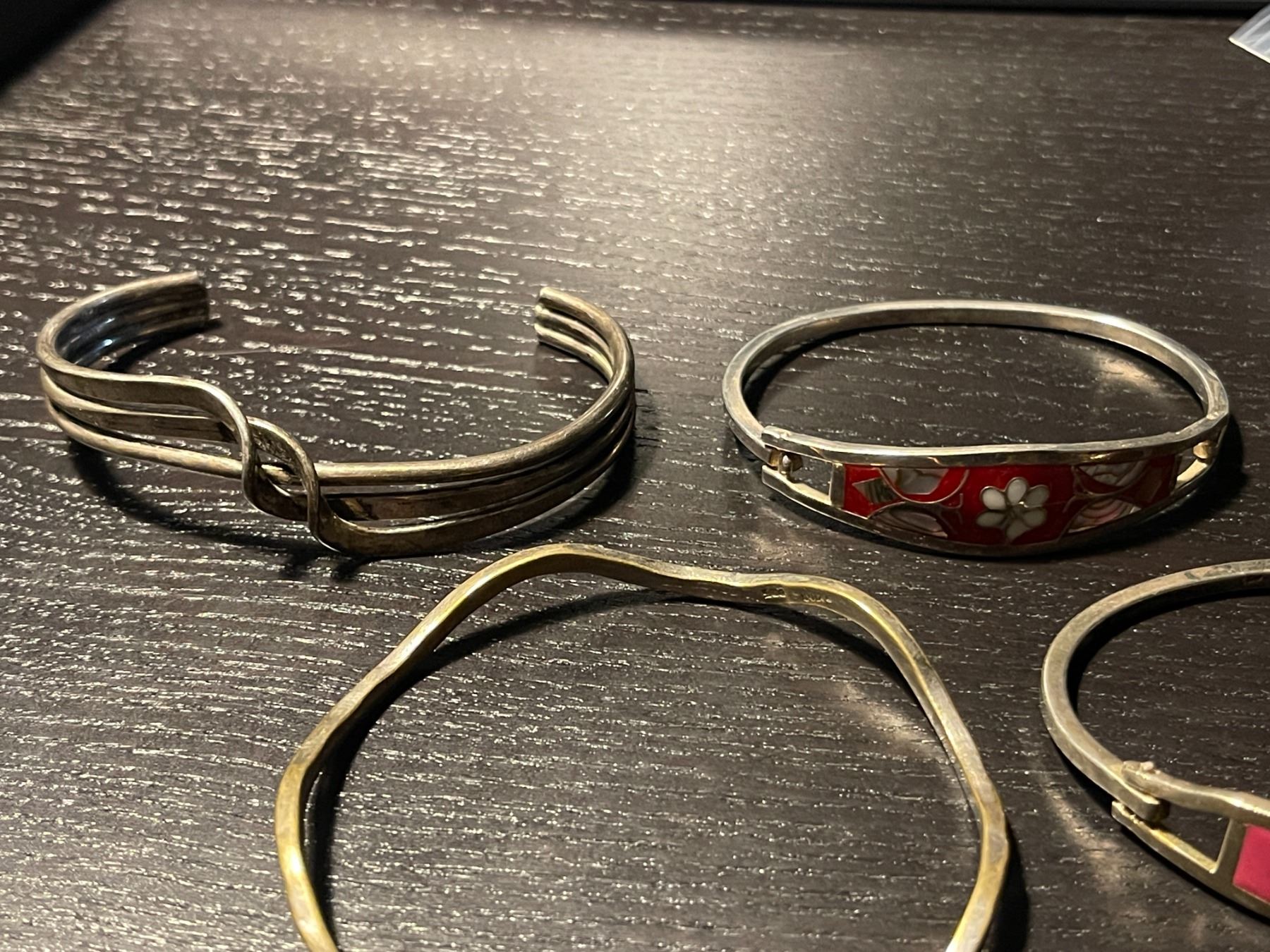 4 Sterling Silver Bracelets Stamped Mexico - 2 are enameled - Total weight: 74 grams